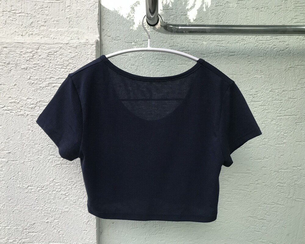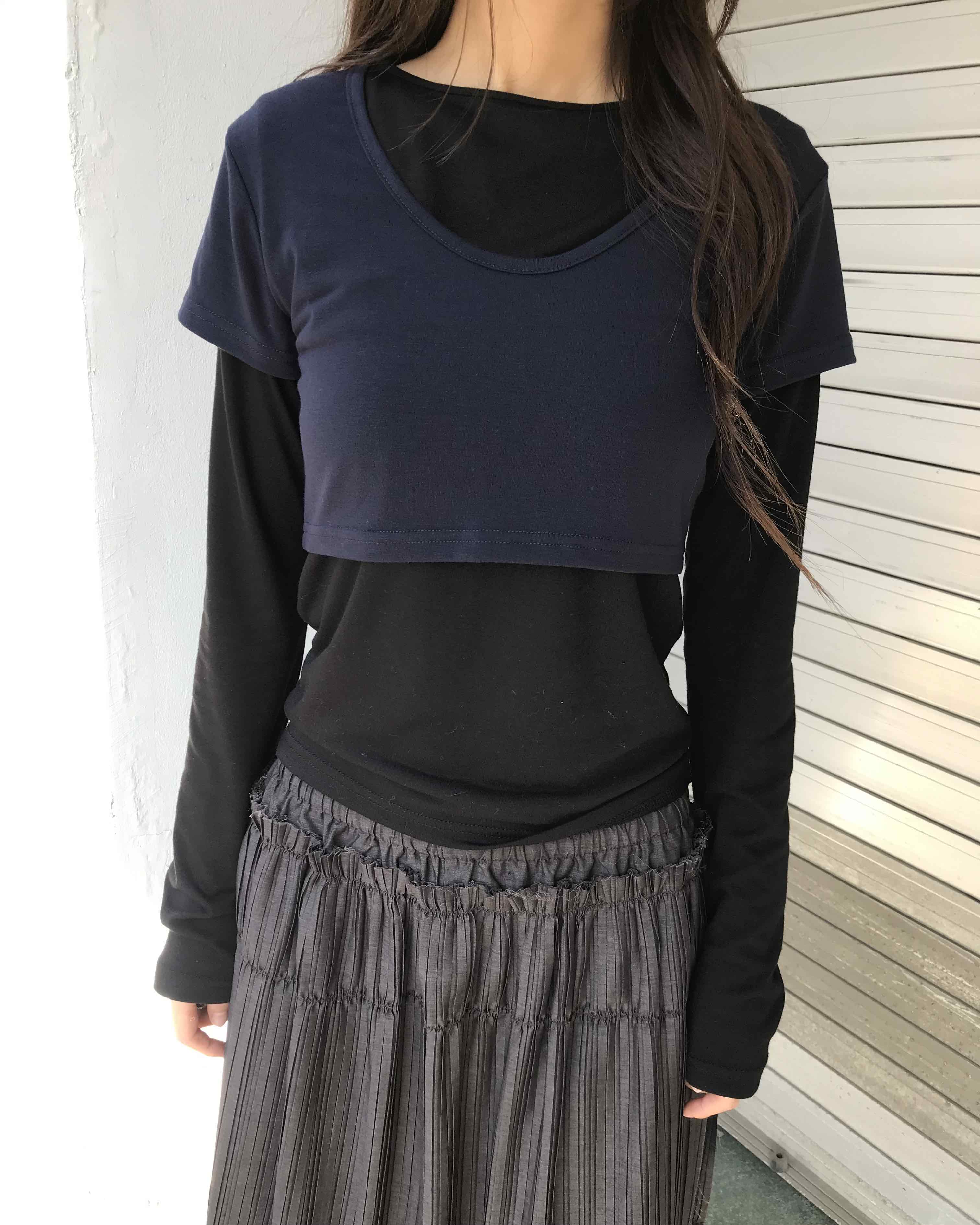 -완전 크롭 기장의 반팔 티셔츠로 컬러나 소재가 다른 이너와 레이어드 하거나 톤온톤 매치 시 자연스럽게 스타일 무드가 살아나는 아이템