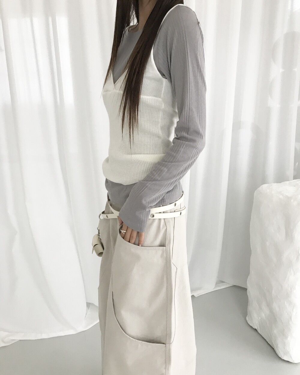 -얇고 긴 아일렛 벨트로 두 번 감아 연출하는 제품