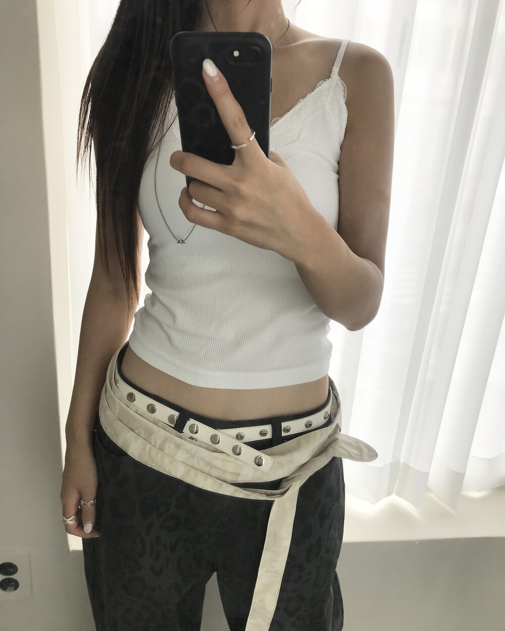 -스트랩 끝단에 톤온톤 로고 자수로 감각적인 마무리