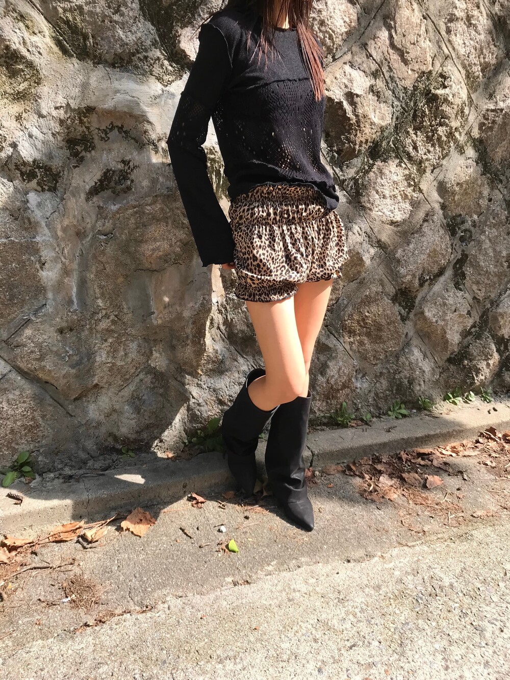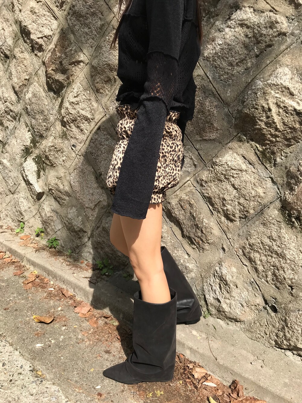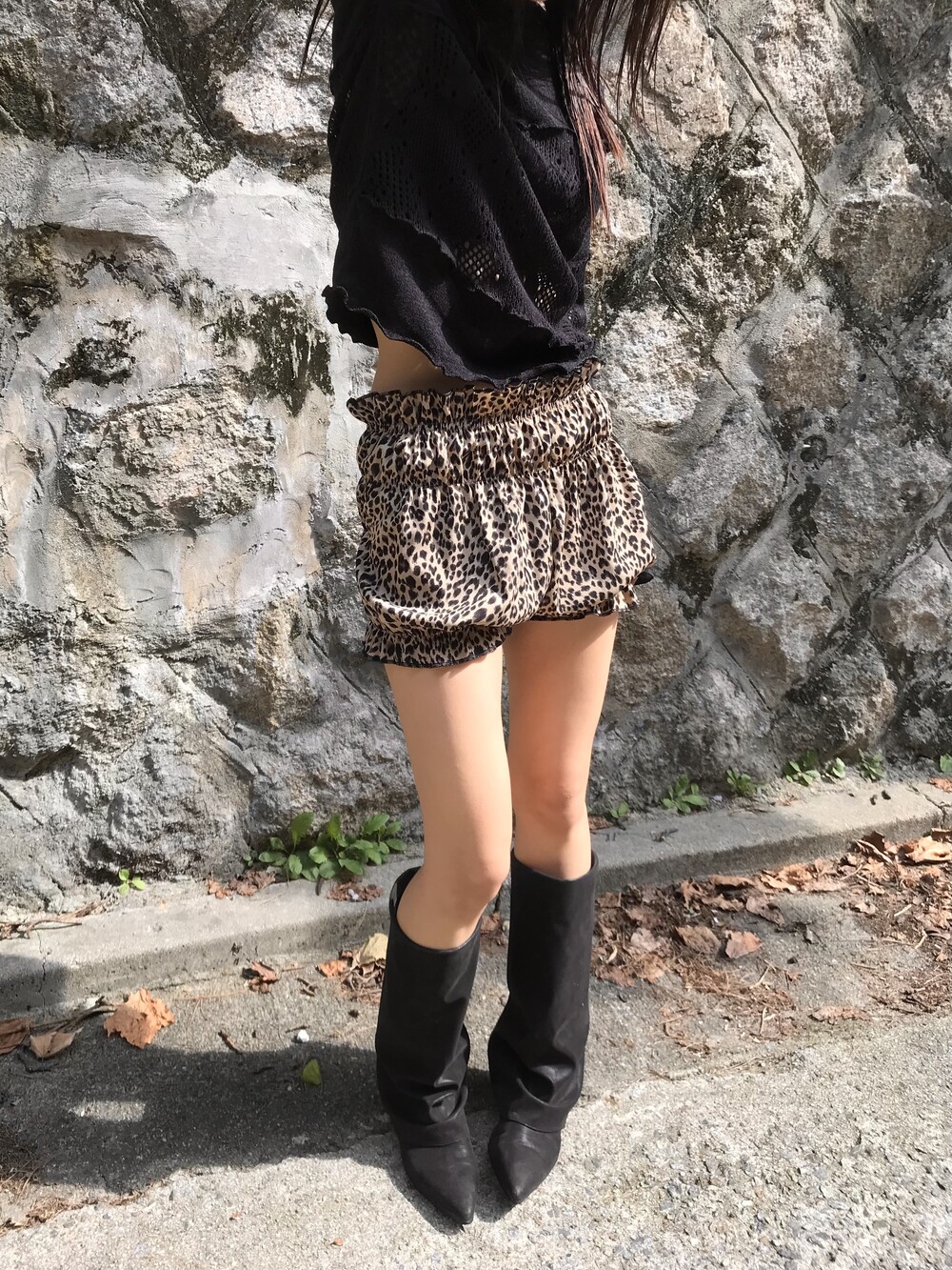 -레오파드 패턴의 제품이지만 쇼츠로 제작되어 부담스럽지 않으면서 포인트로 착용 가능한 아이템