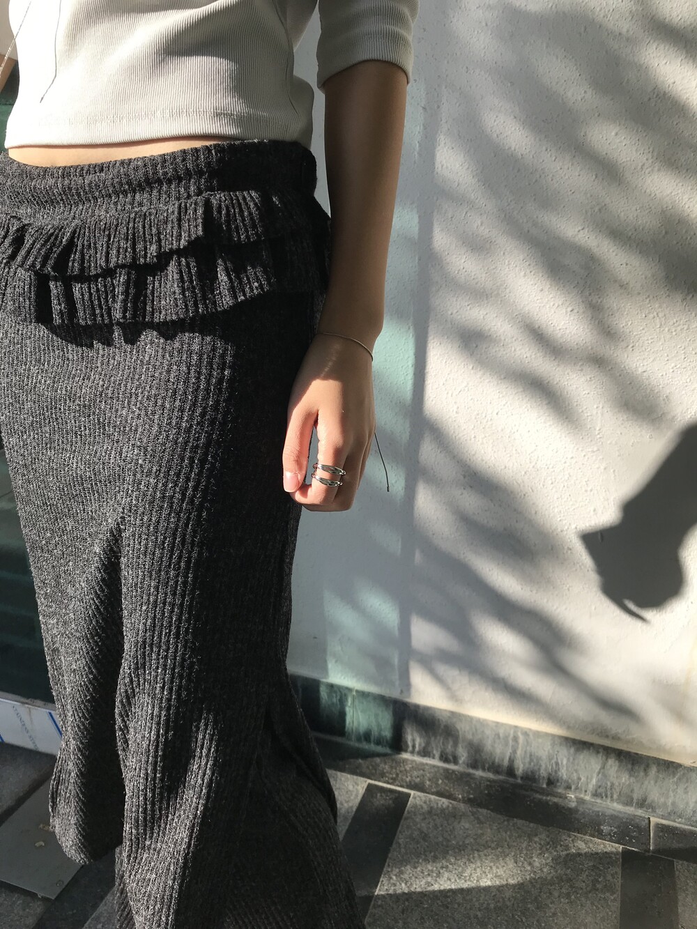 -미디 기장의 골지 니트 스커트