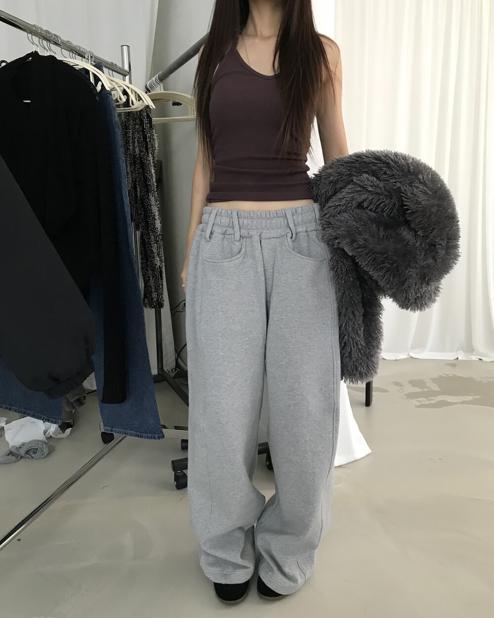 -벨트 고리 디테일이 있는 스웨트팬츠
