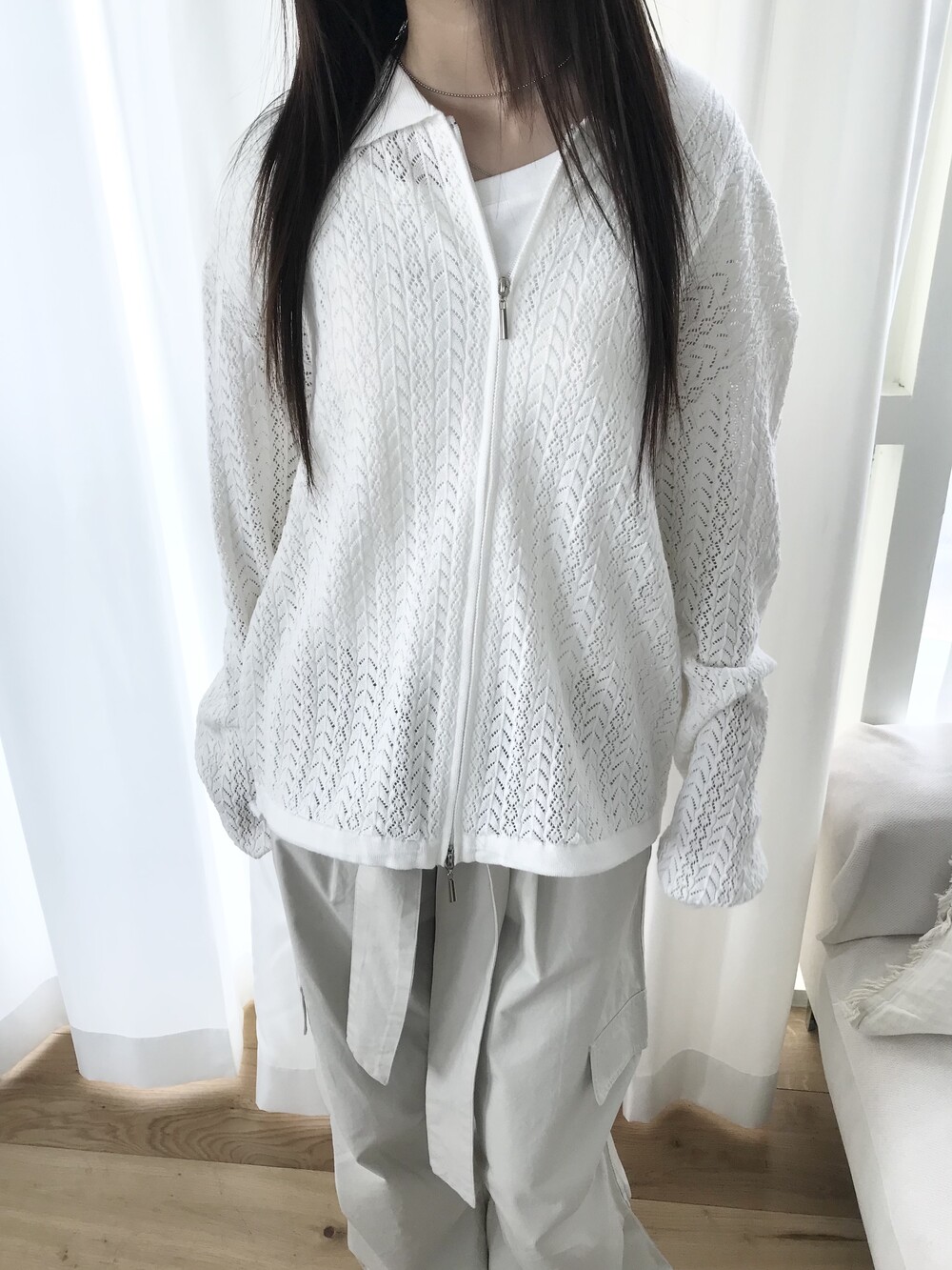 mesh collar zip-up