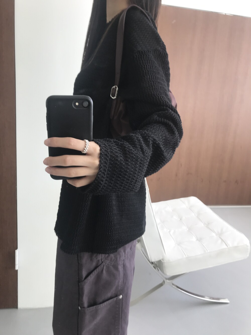 -넥, 소매단, 밑단 네추럴 커팅 디테일