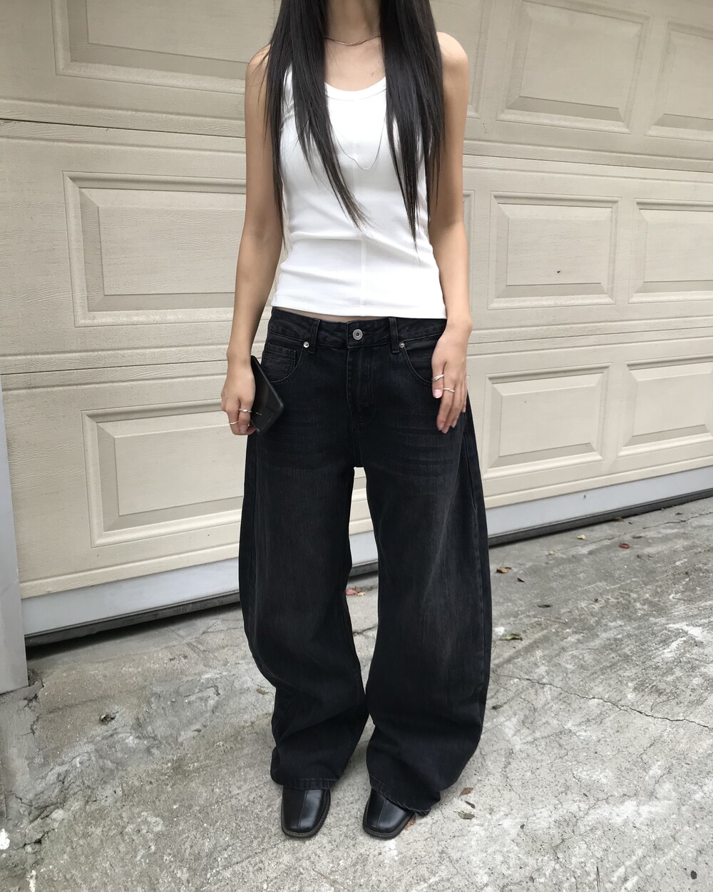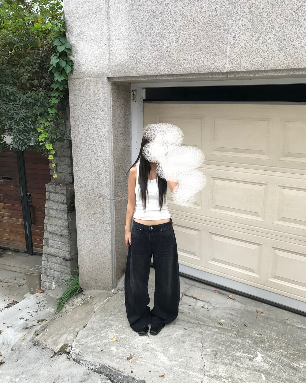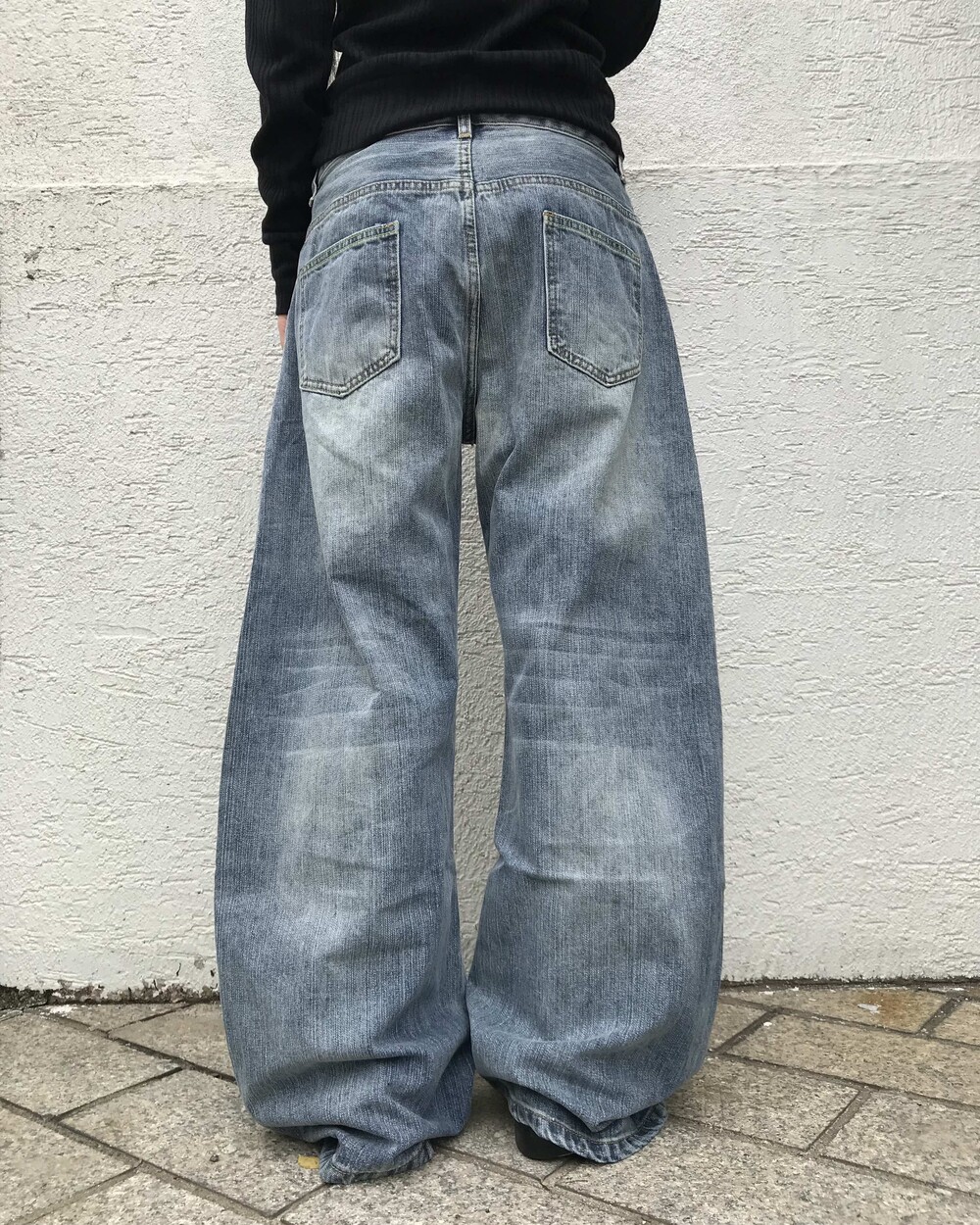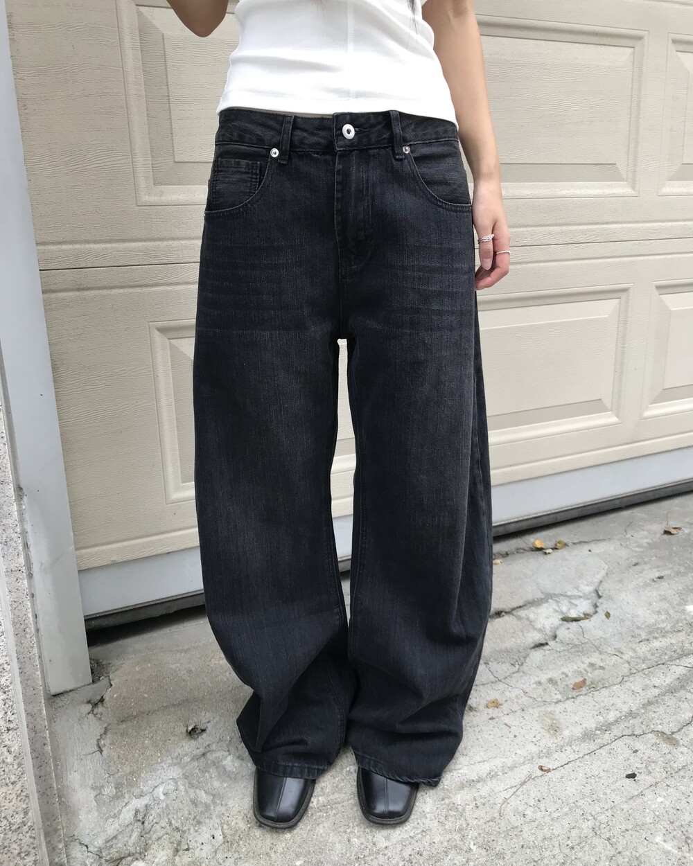 -볼륨감 있는 실루엣으로 트렌디한 무드를 완성하는 벌룬 핏 데님팬츠