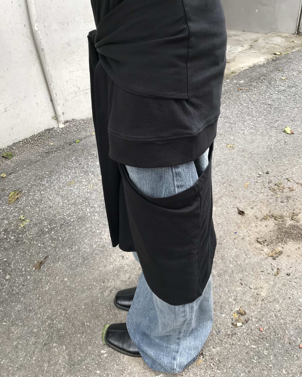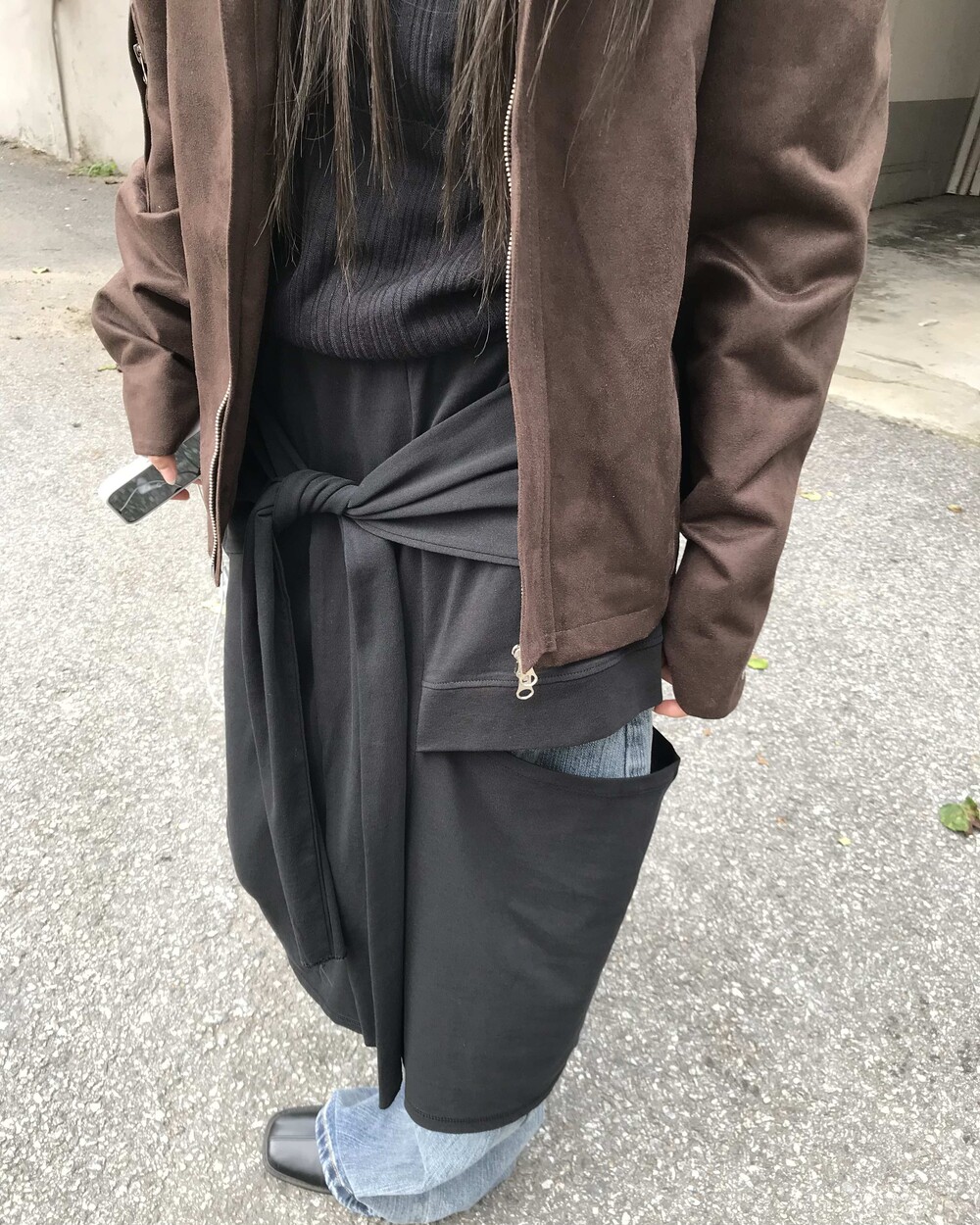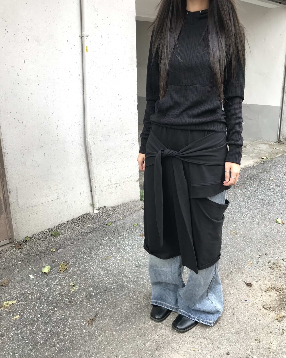 *모델 기준 S 사이즈 착용 시 골반에 적당히 걸쳐지는 핏입니다.