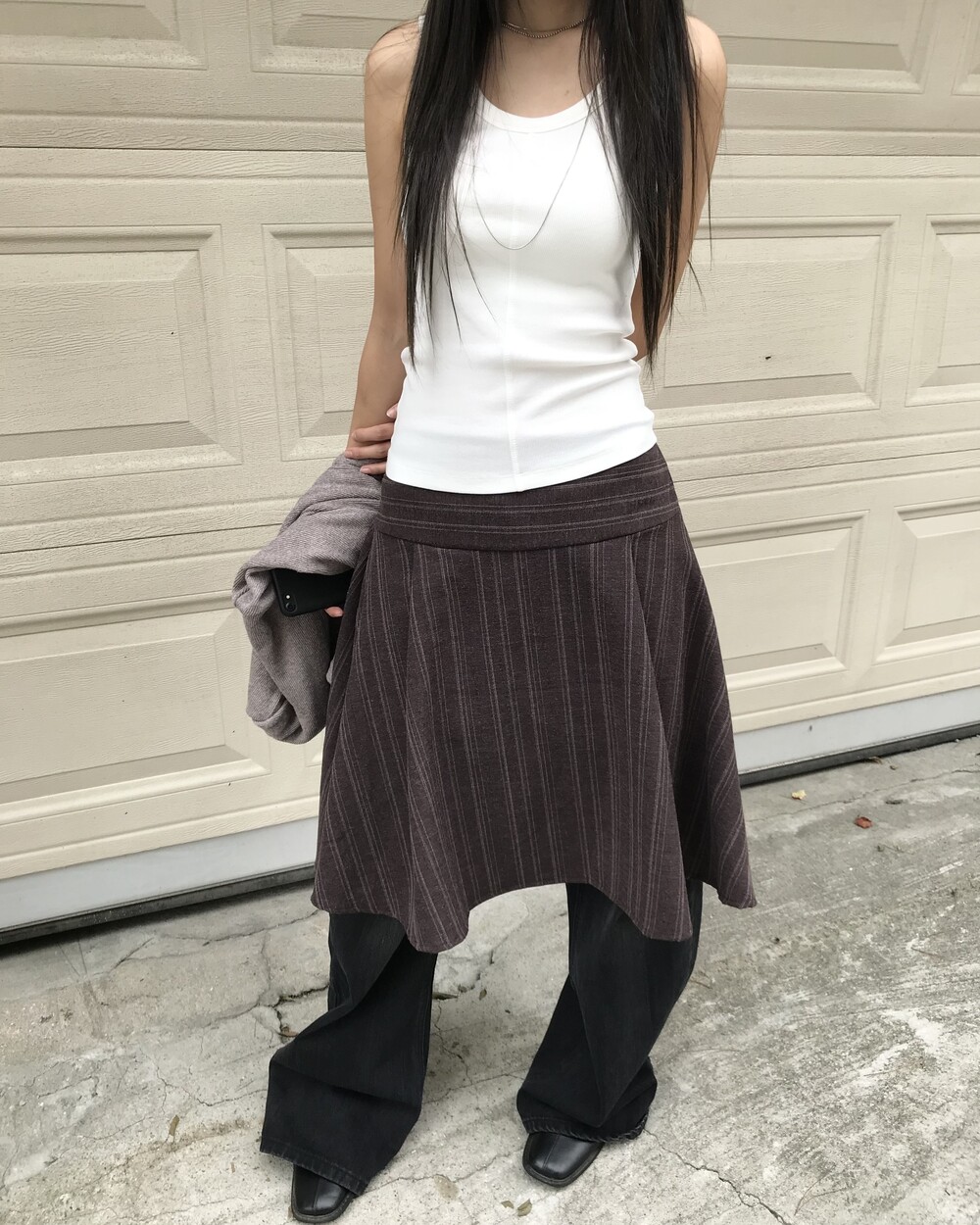 -허벅지부터 밑단까지 풍성하게 퍼지는 라인이 특징이며,