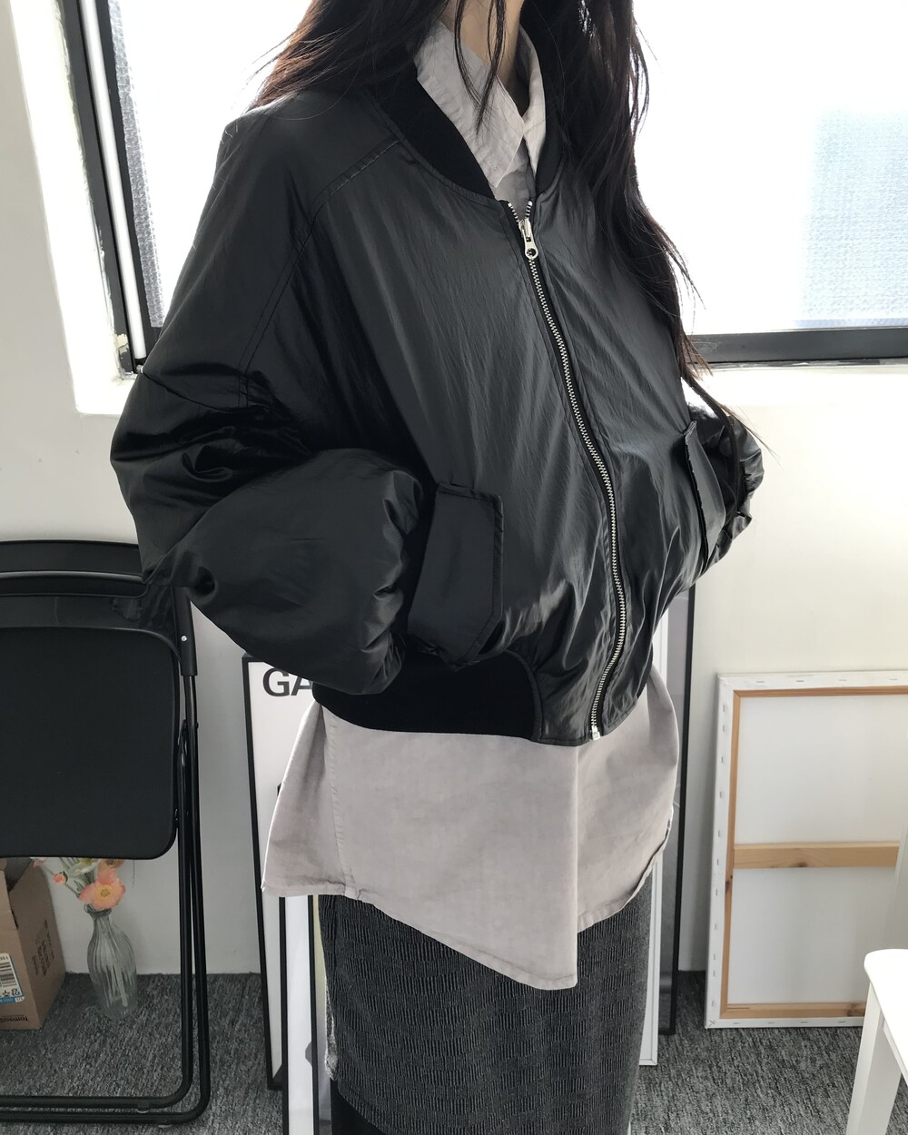 어깨57 가슴60 소매기장60 소매단11 암홀28 밑단60 총장75.5 (단면 cm)