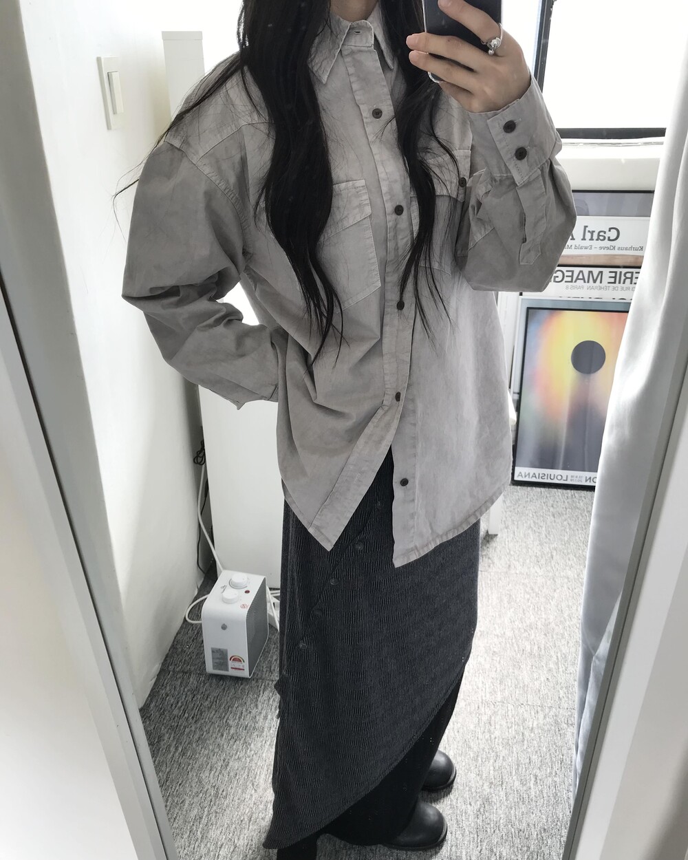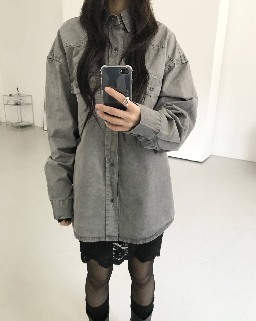 -워싱 오버핏 셔츠