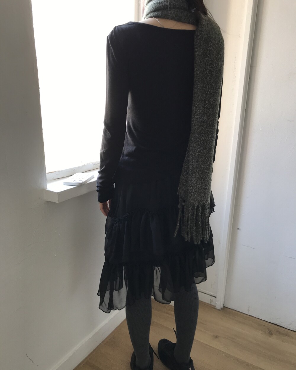 어깨41 가슴34 소매기장64 소매단9 암홀13.5 밑단43(사선길이) 총장43.5/57 (단면 cm)