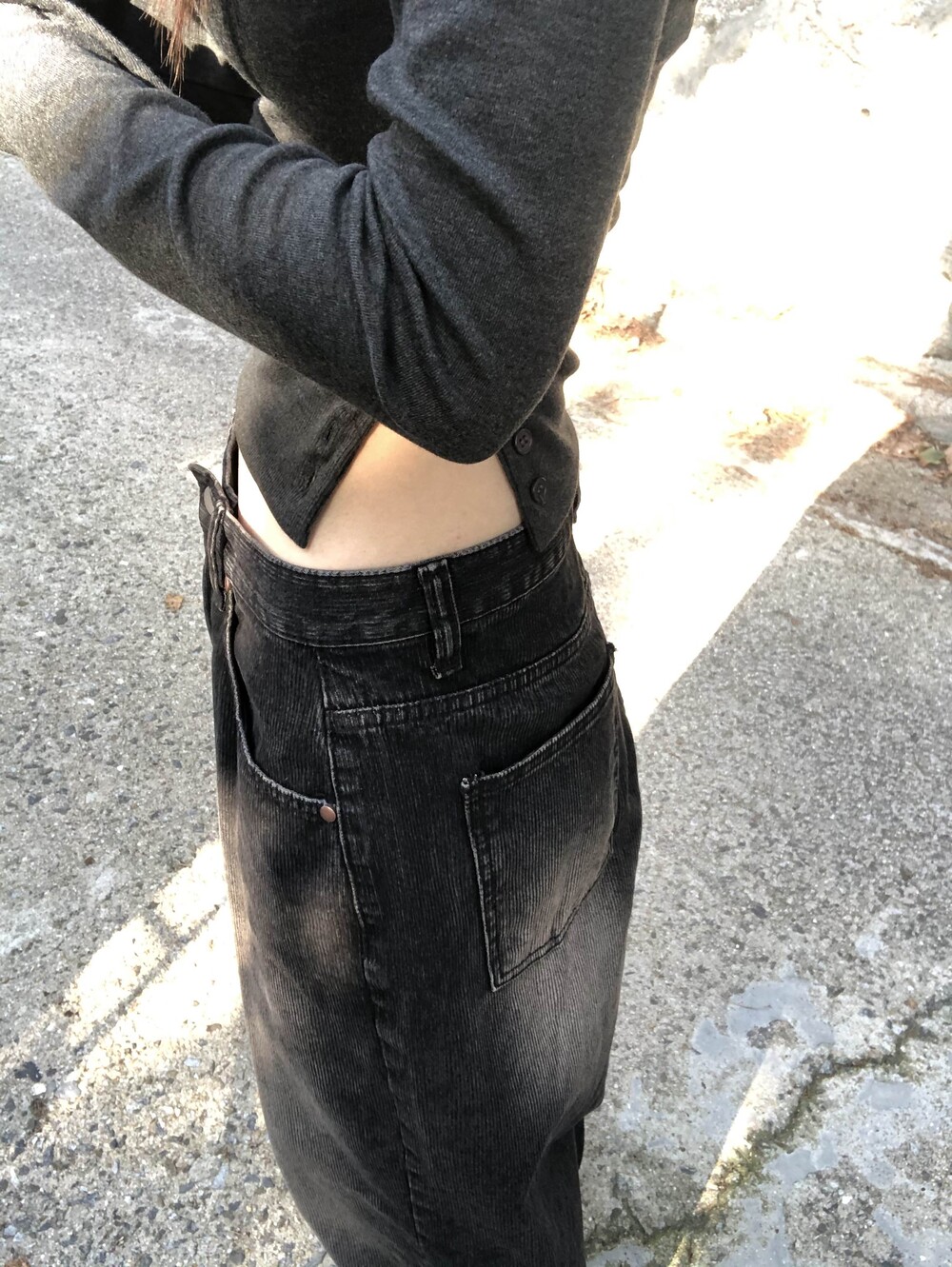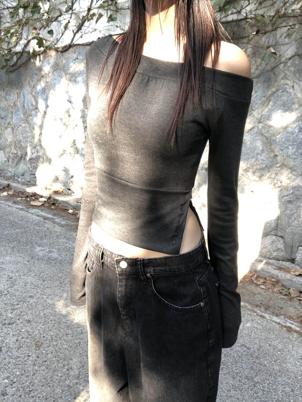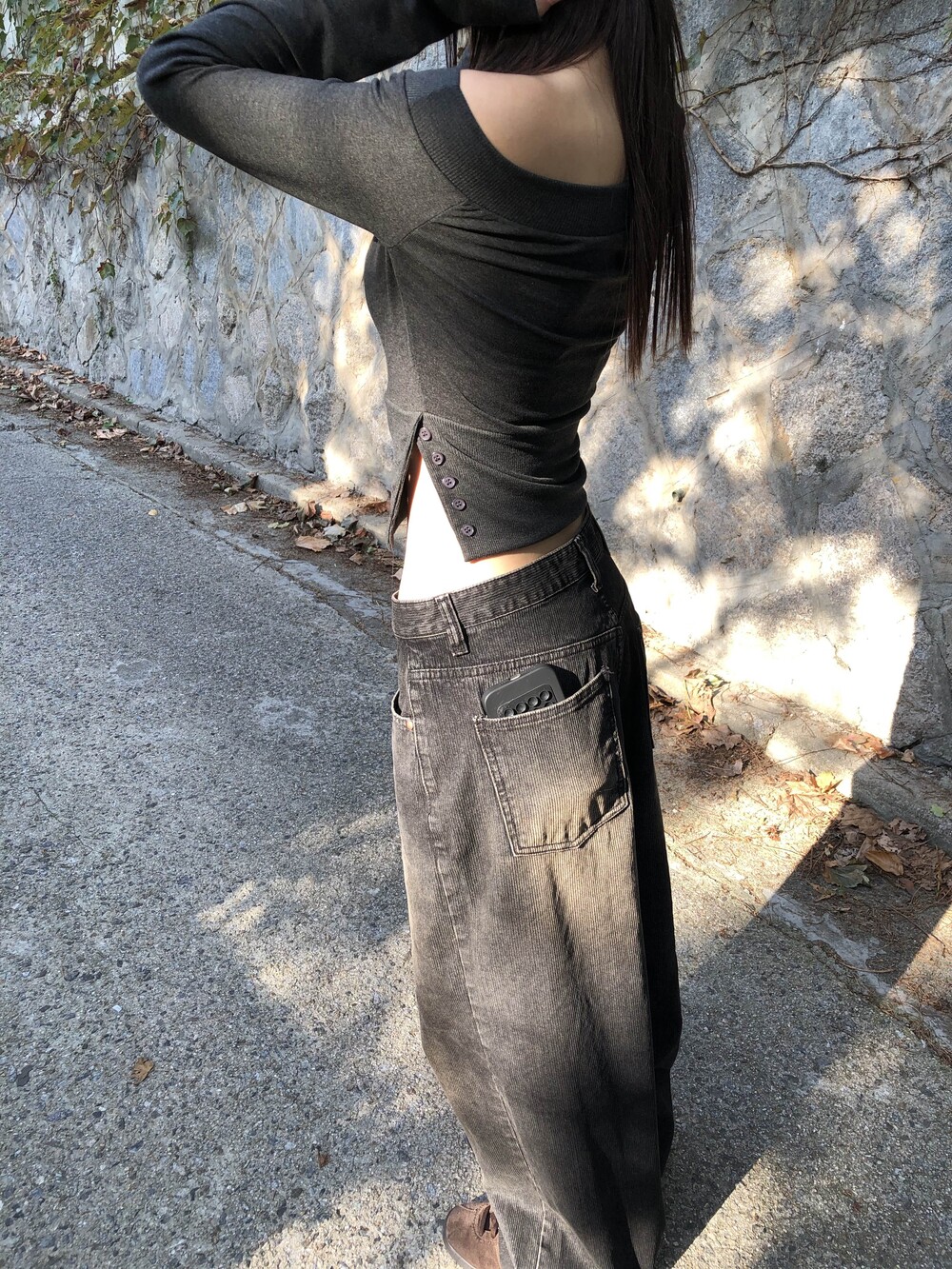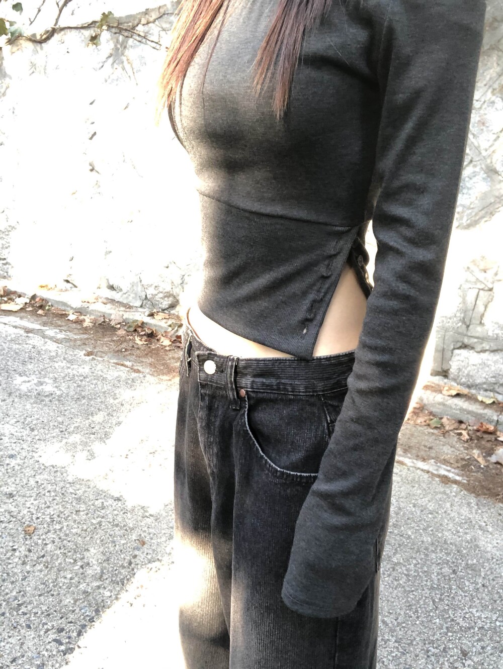 -한쪽 밑단 버튼 슬릿 디테일