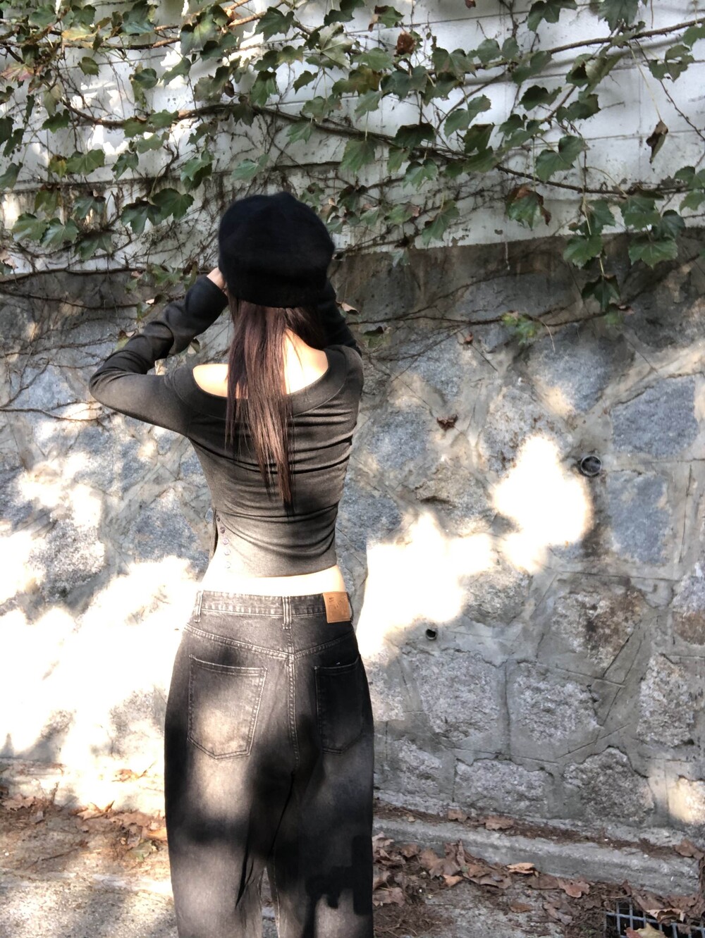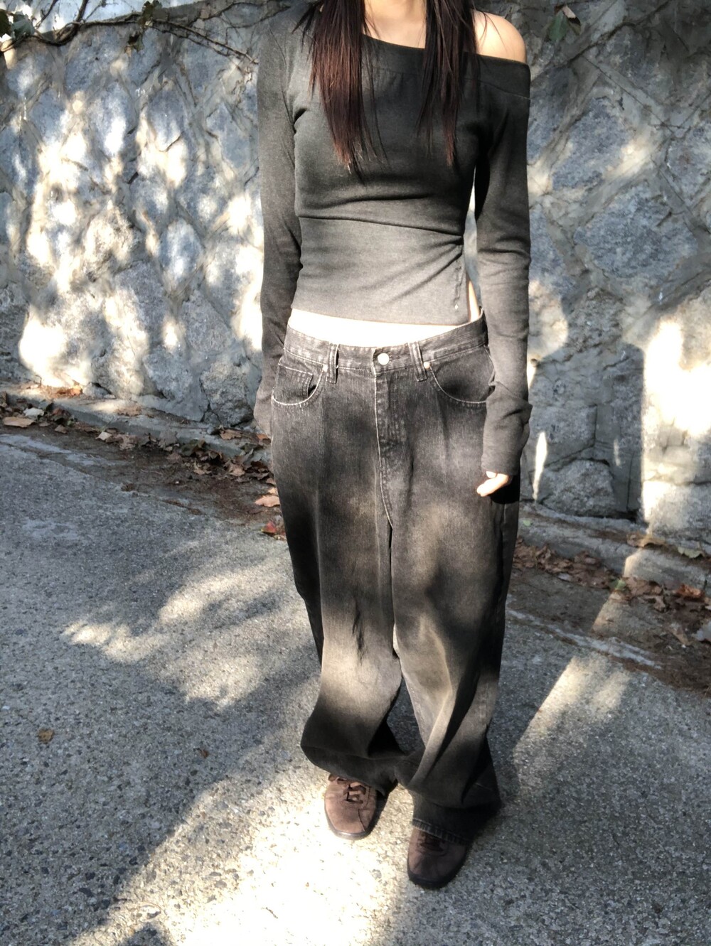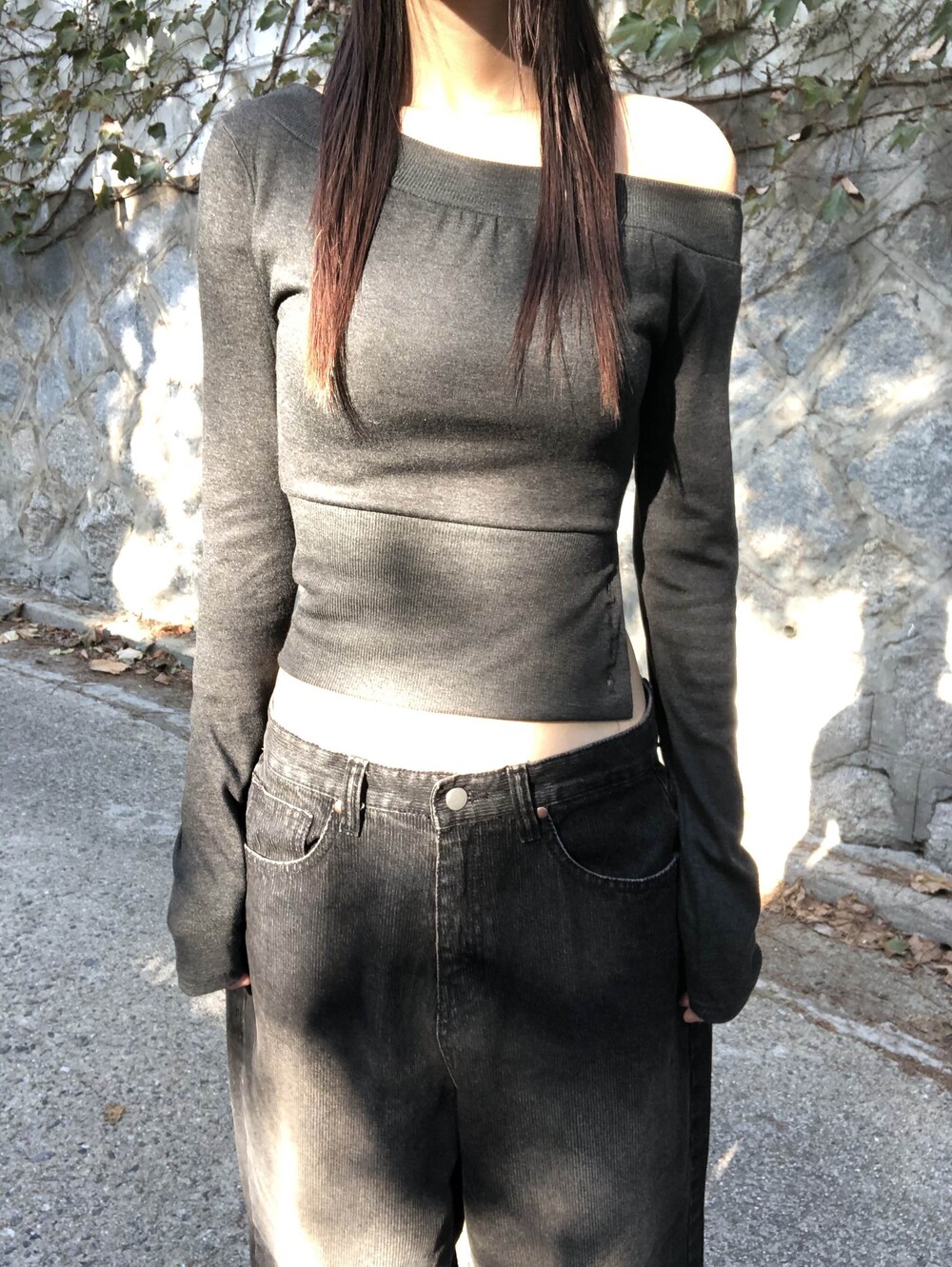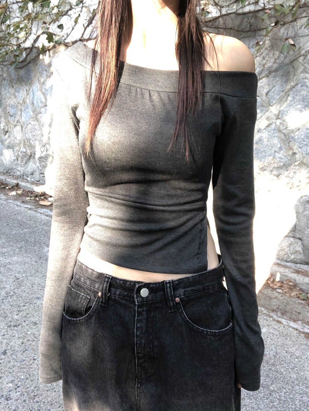 -한쪽 밑단 버튼 슬릿 디테일