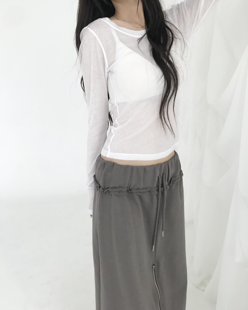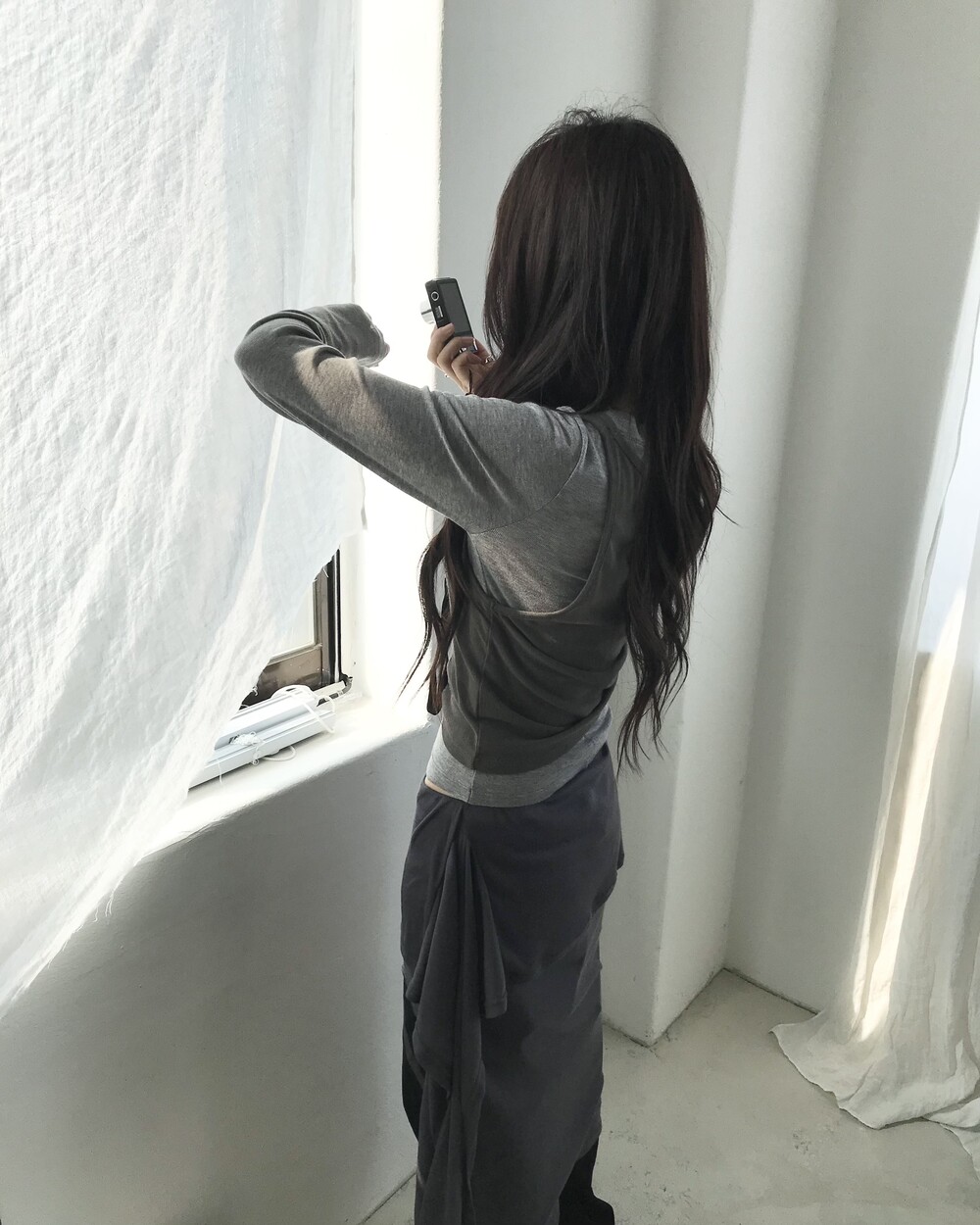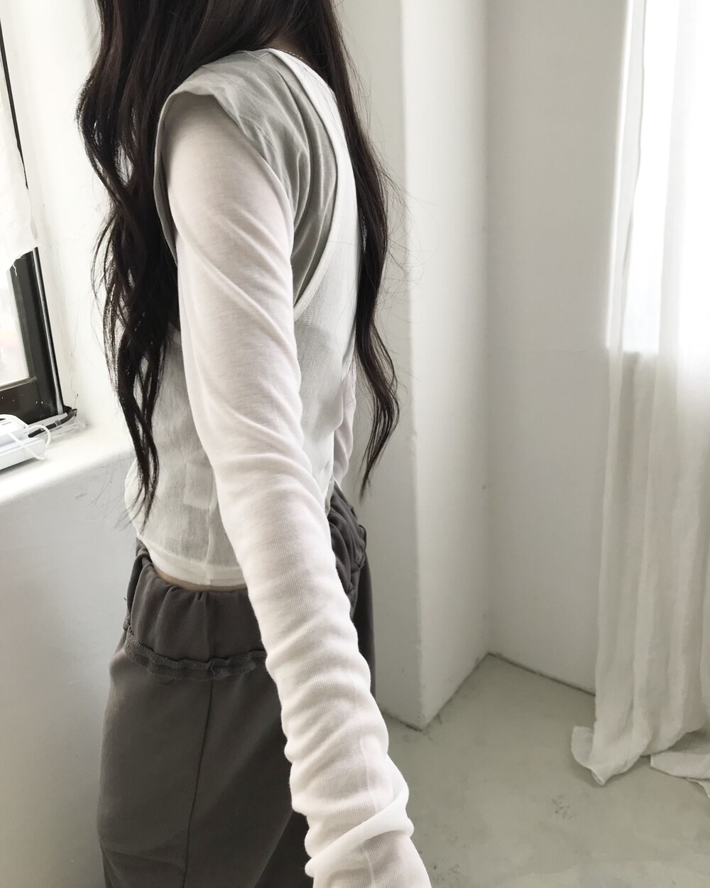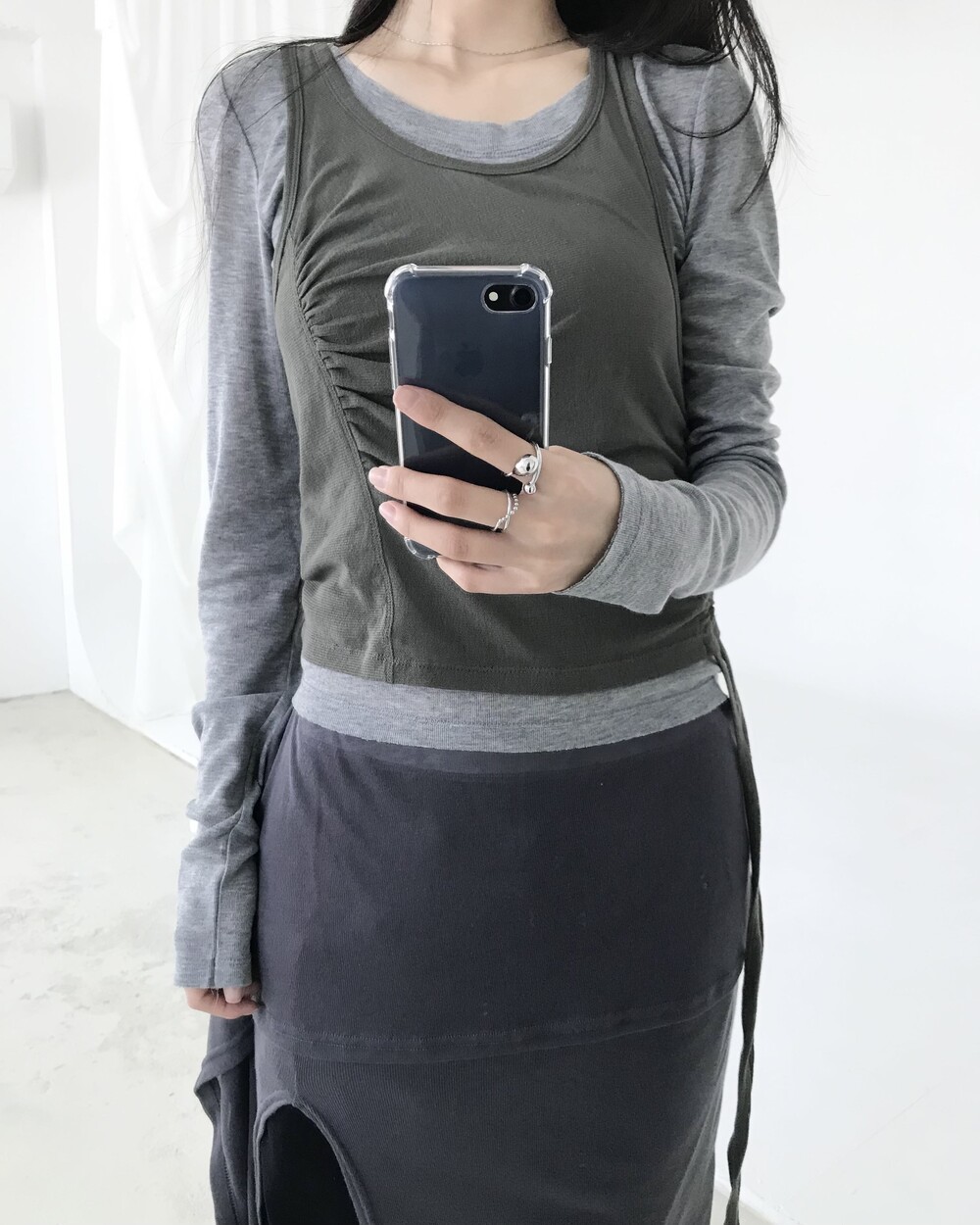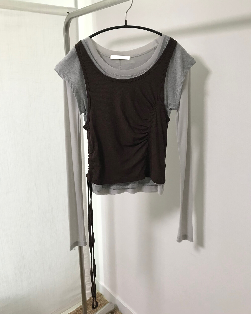 -overlay tencel T + overlay half T + overlay shirring tank 함께 착용 시