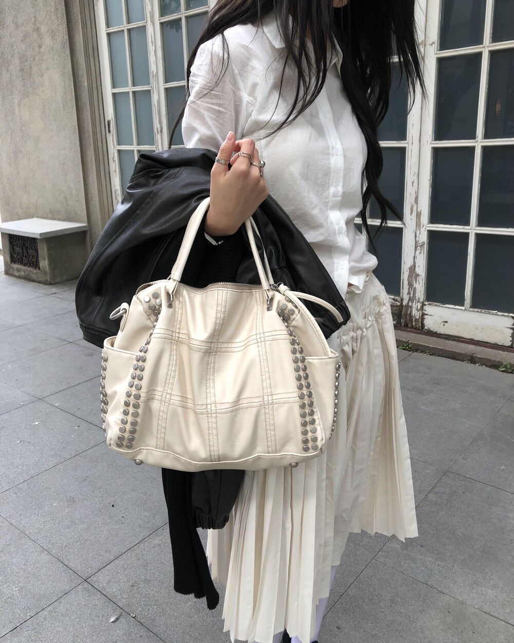 *스터드 금속 장식은 빈티지 무드의 제품 특성상