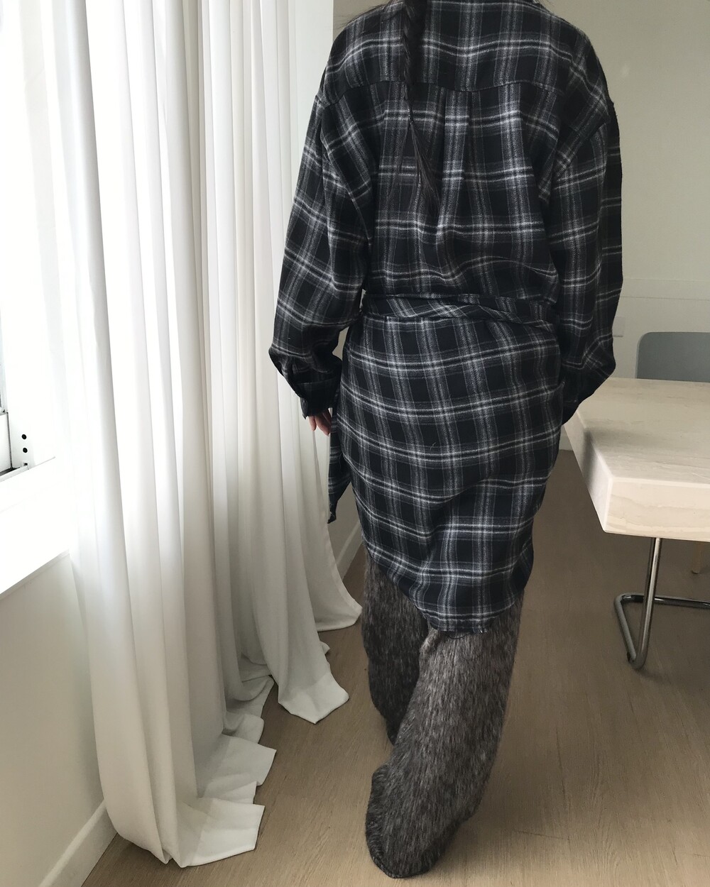 -롱한 기장감으로 원피스처럼 또는 롱 셔츠로 활용 가능