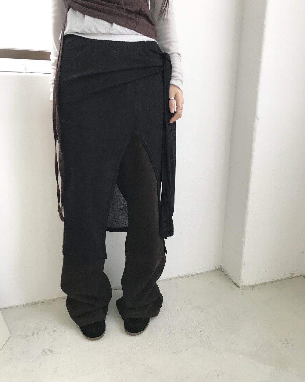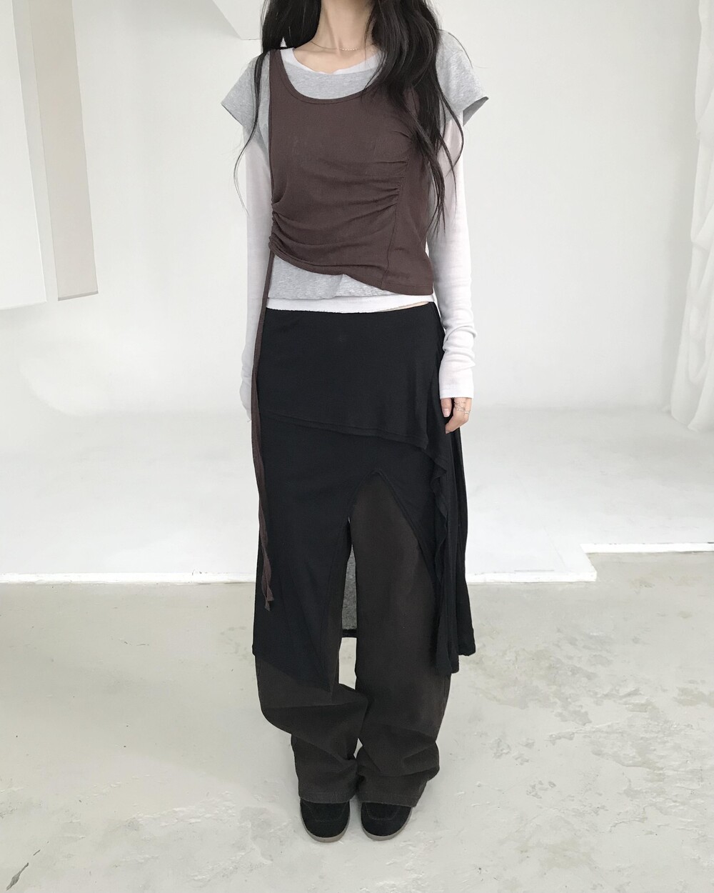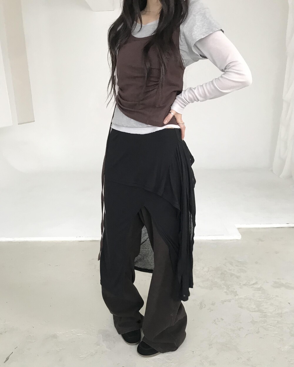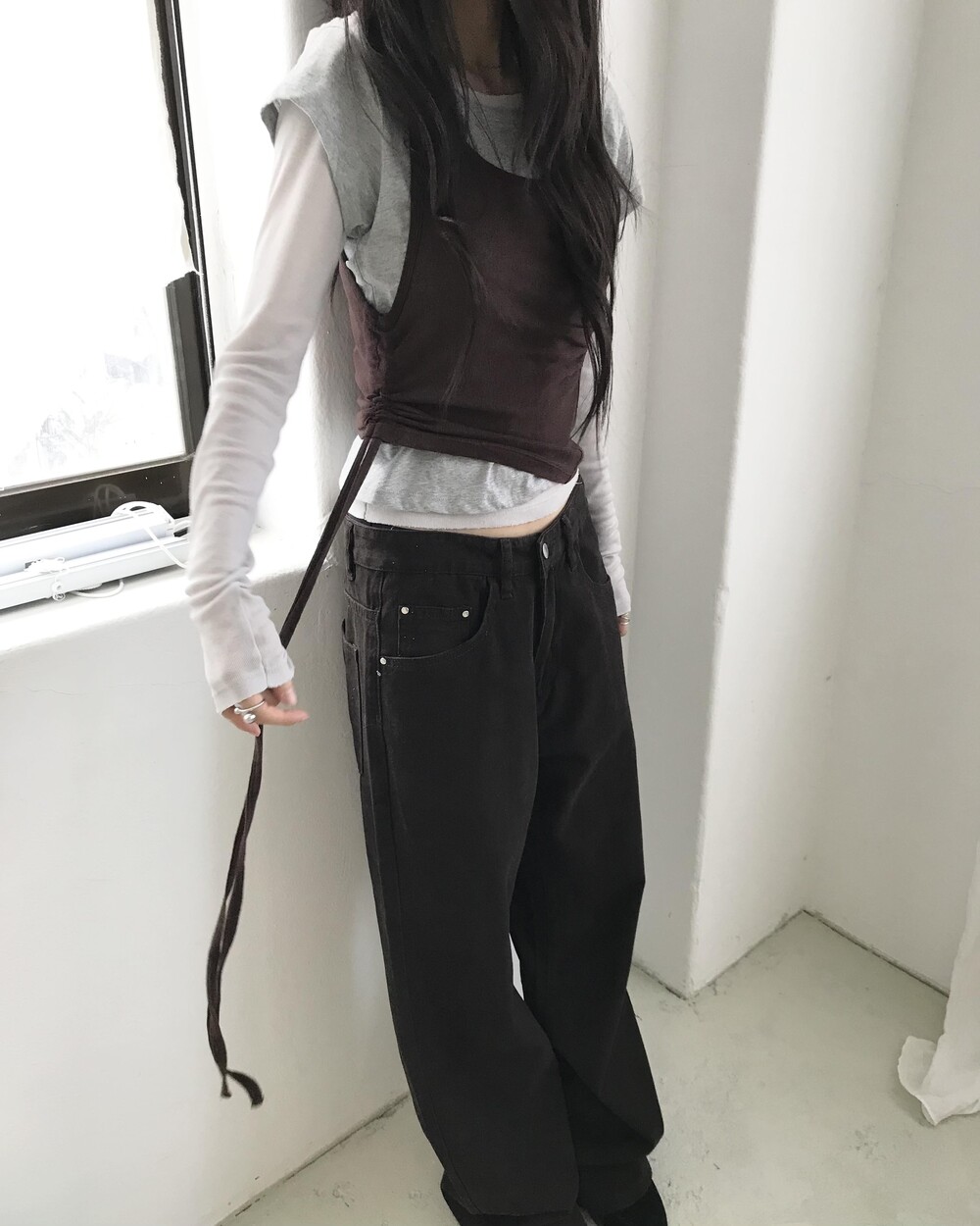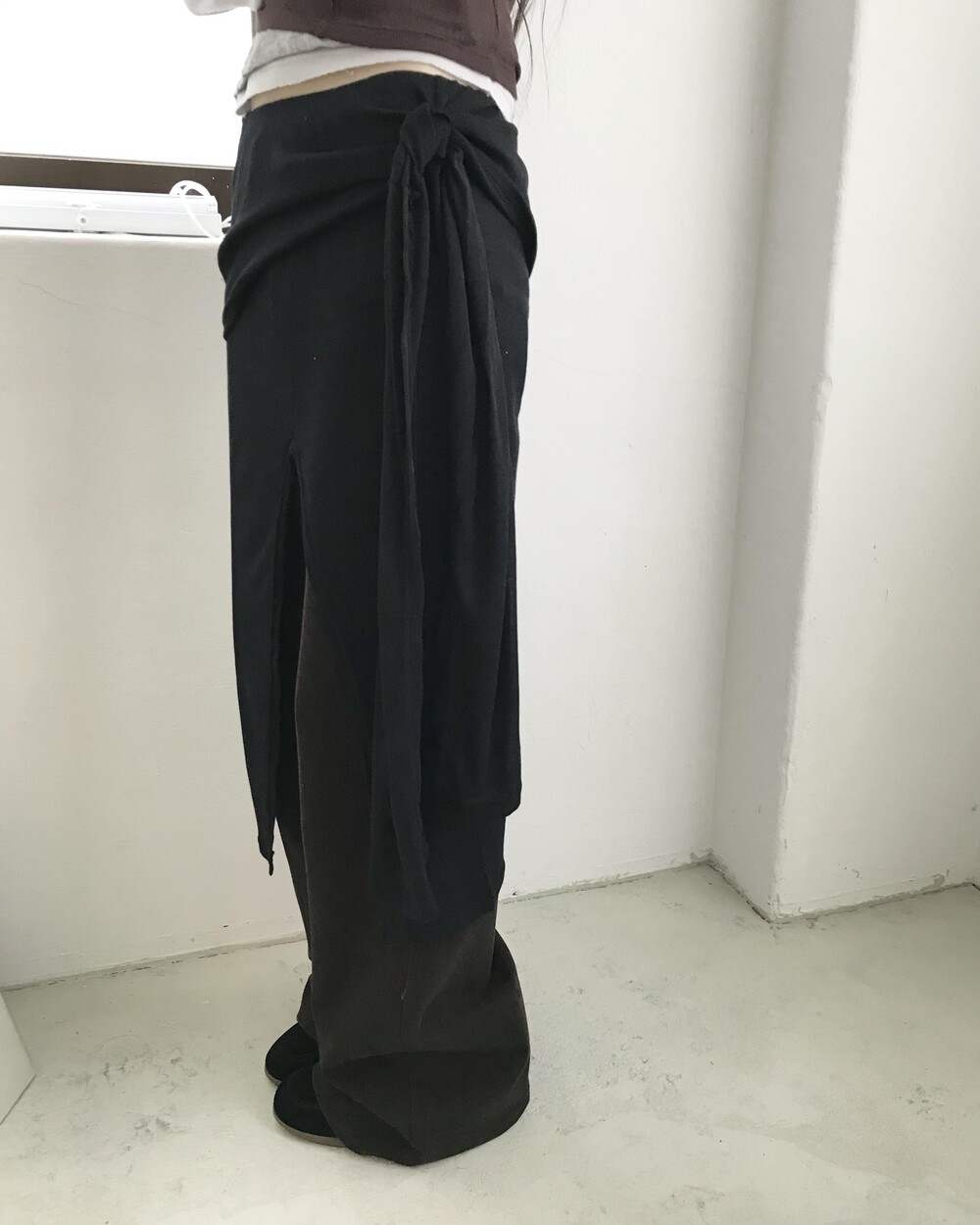 *모델 기준 1사이즈 착용 시 골반 살짝 아래에 걸쳐 착용되며,