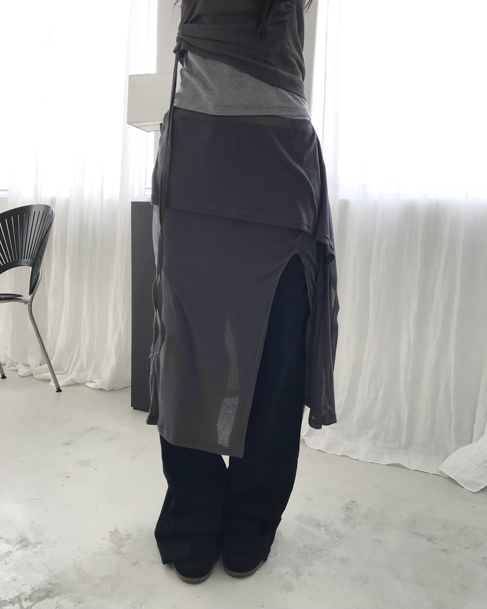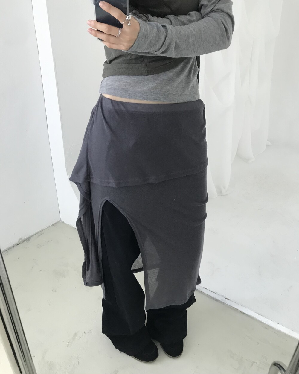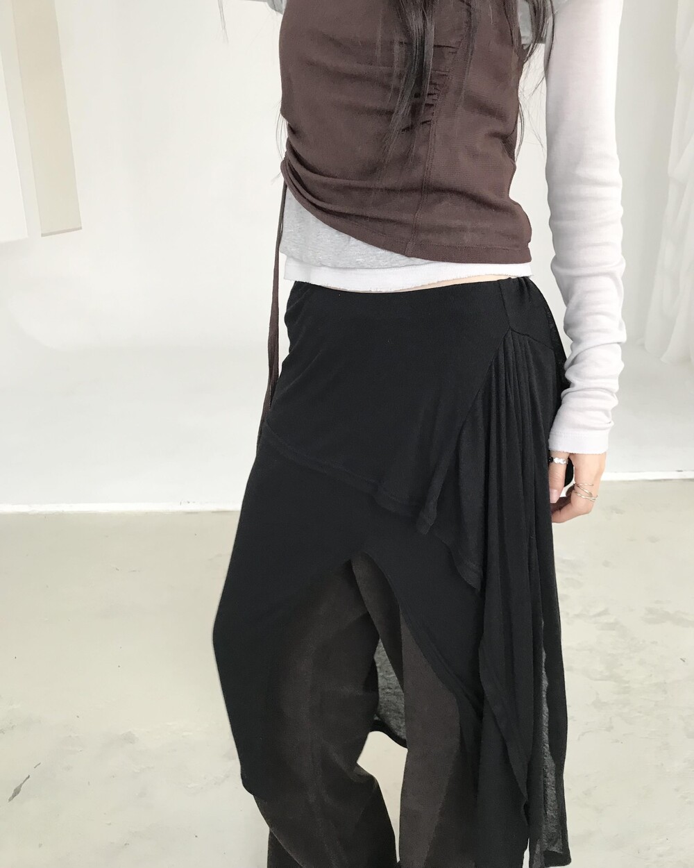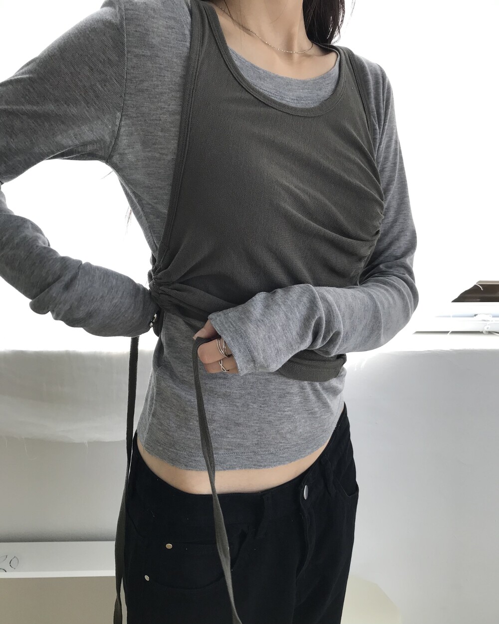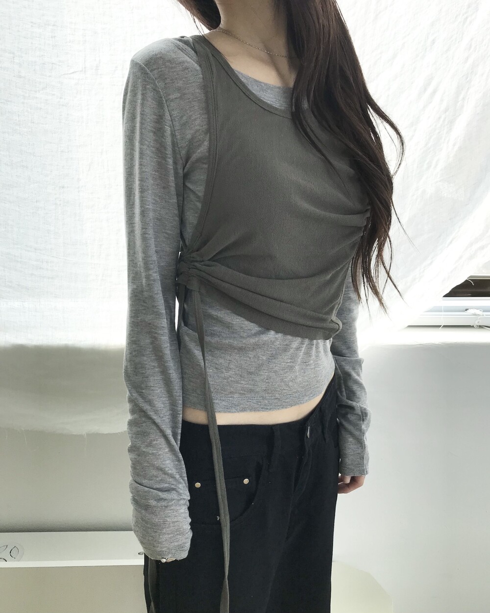 *모델 기준 1사이즈 착용 시 골반 살짝 아래에 걸쳐 착용되며,
