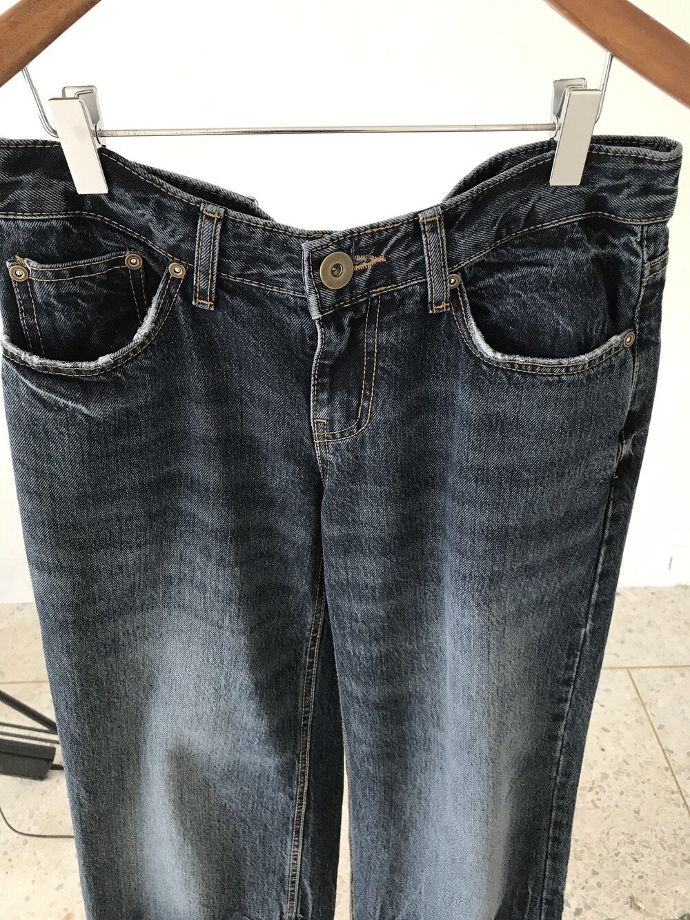 -탄탄한 코튼 데님으로 시즌에 구애 없이 활용 가능한 로우라이즈 데님 팬츠