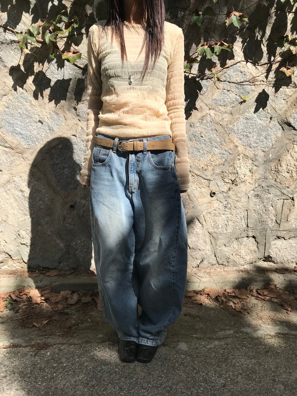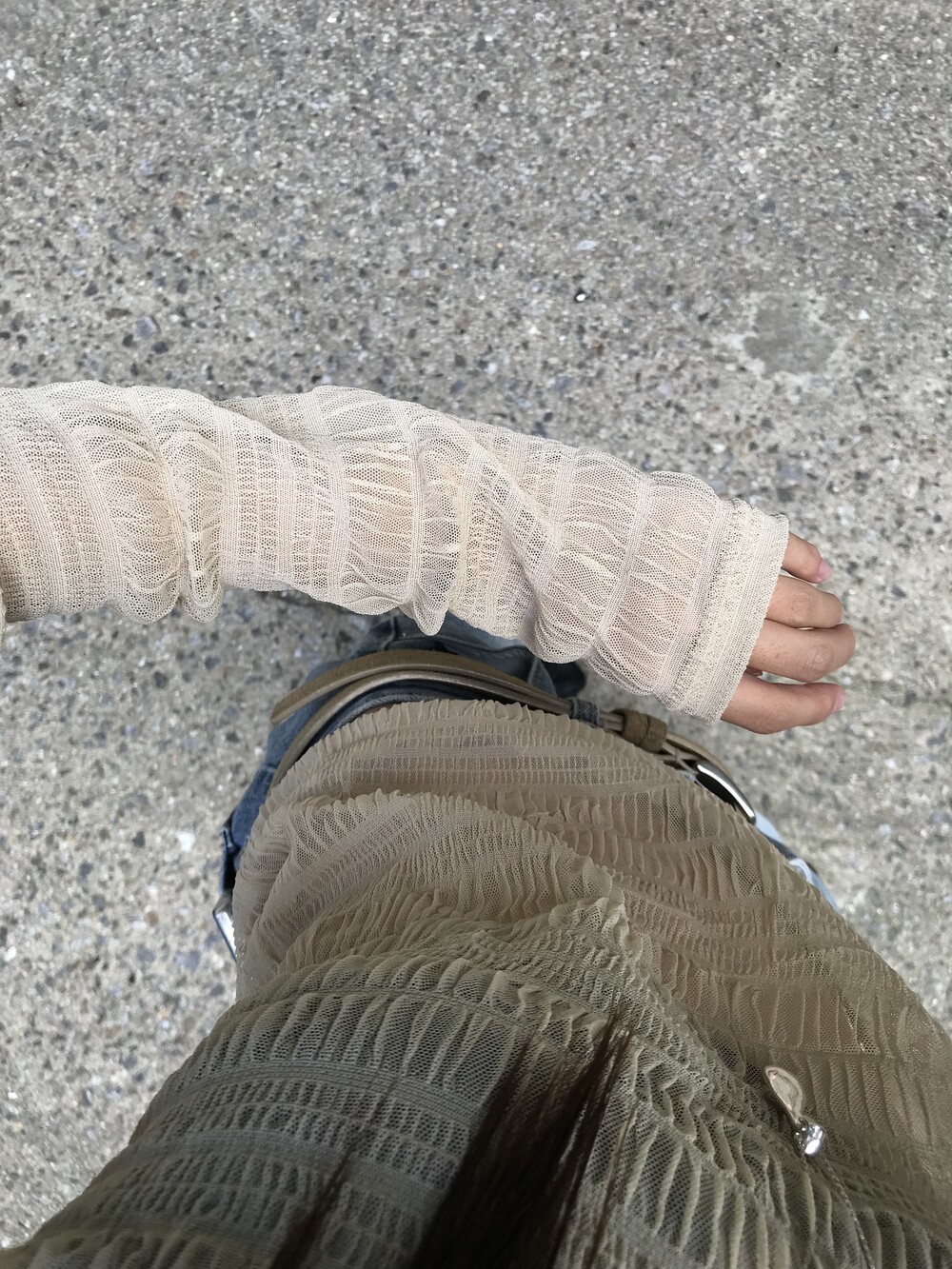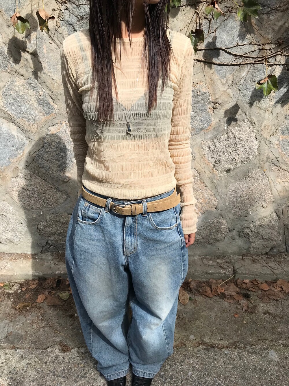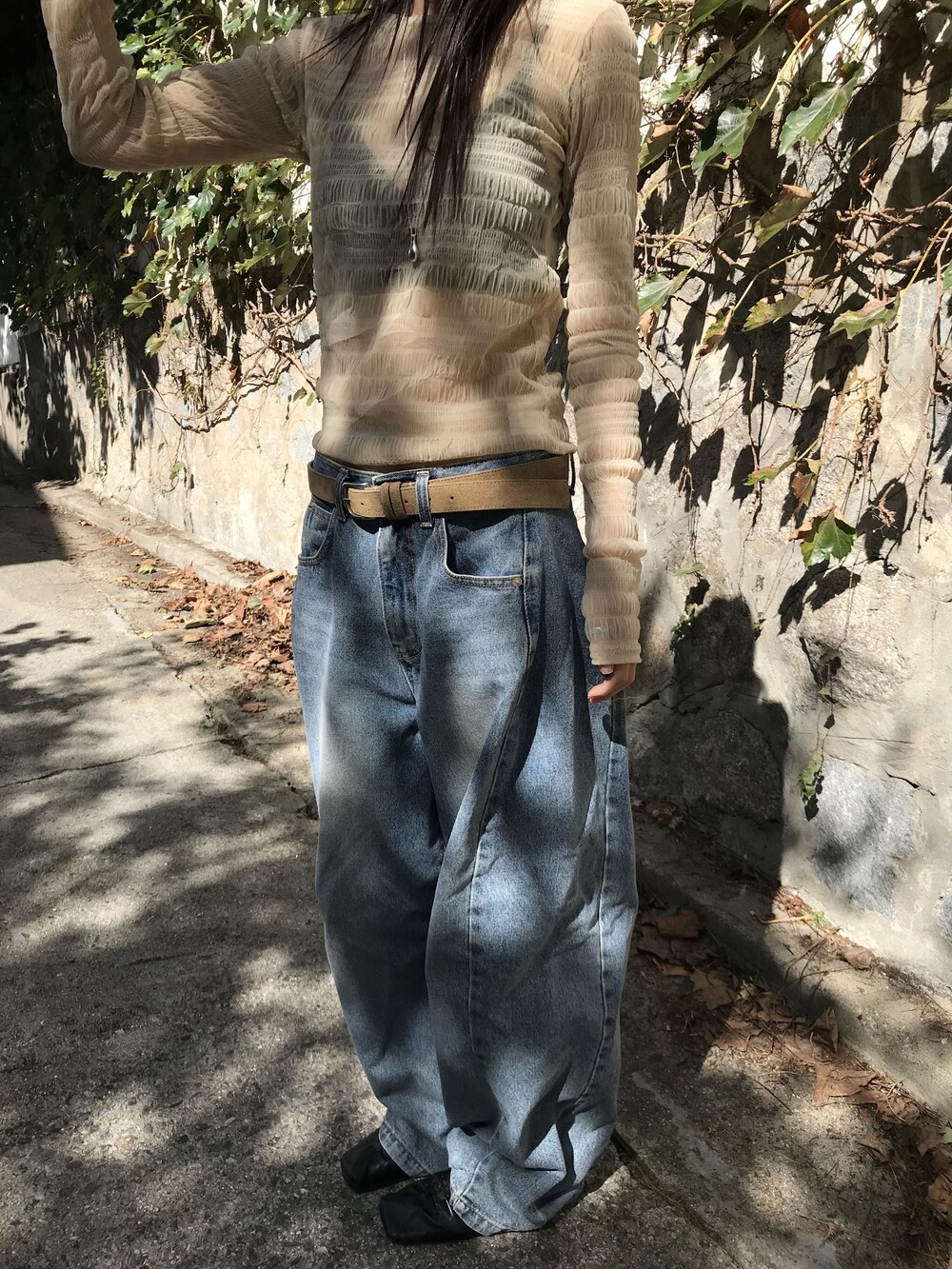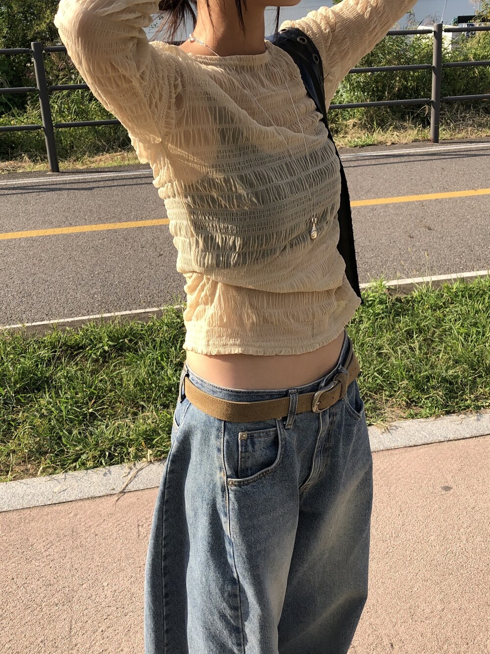 (md pick) sheer wrinkle T - beige