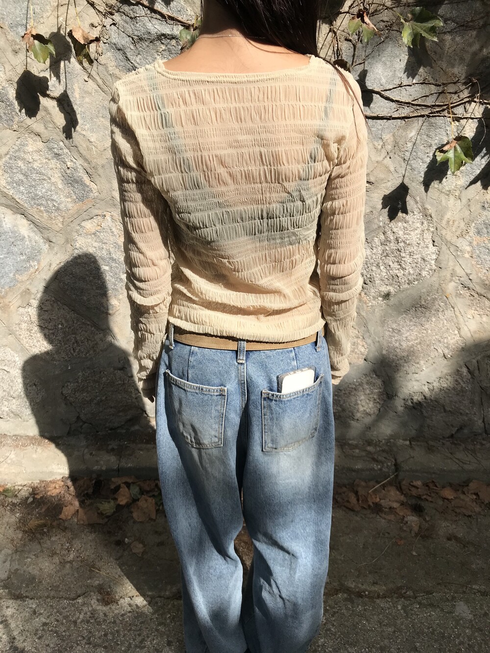 -시스루 소재의 긴팔 티