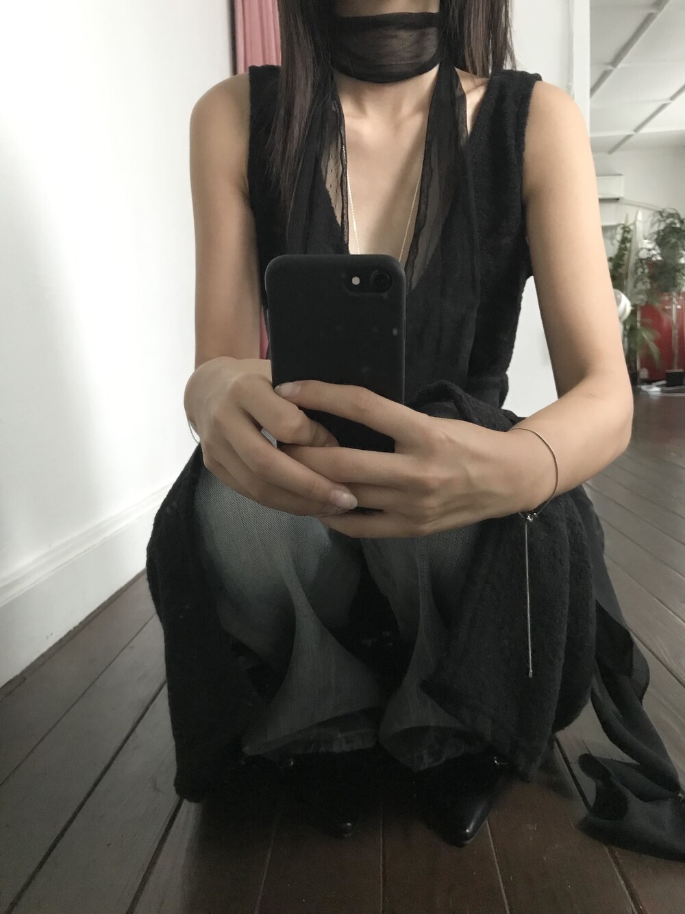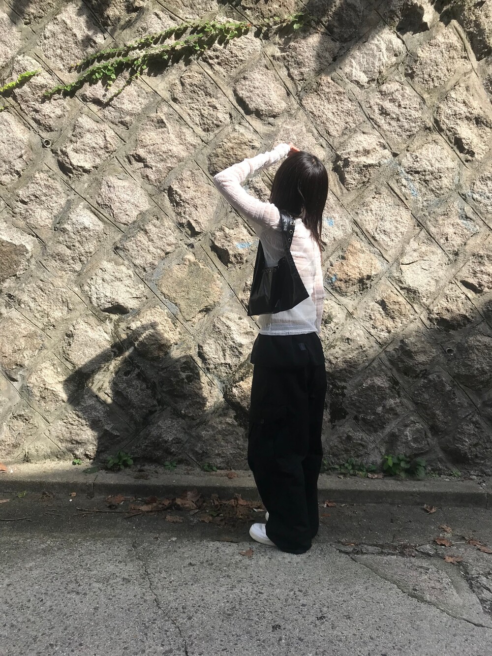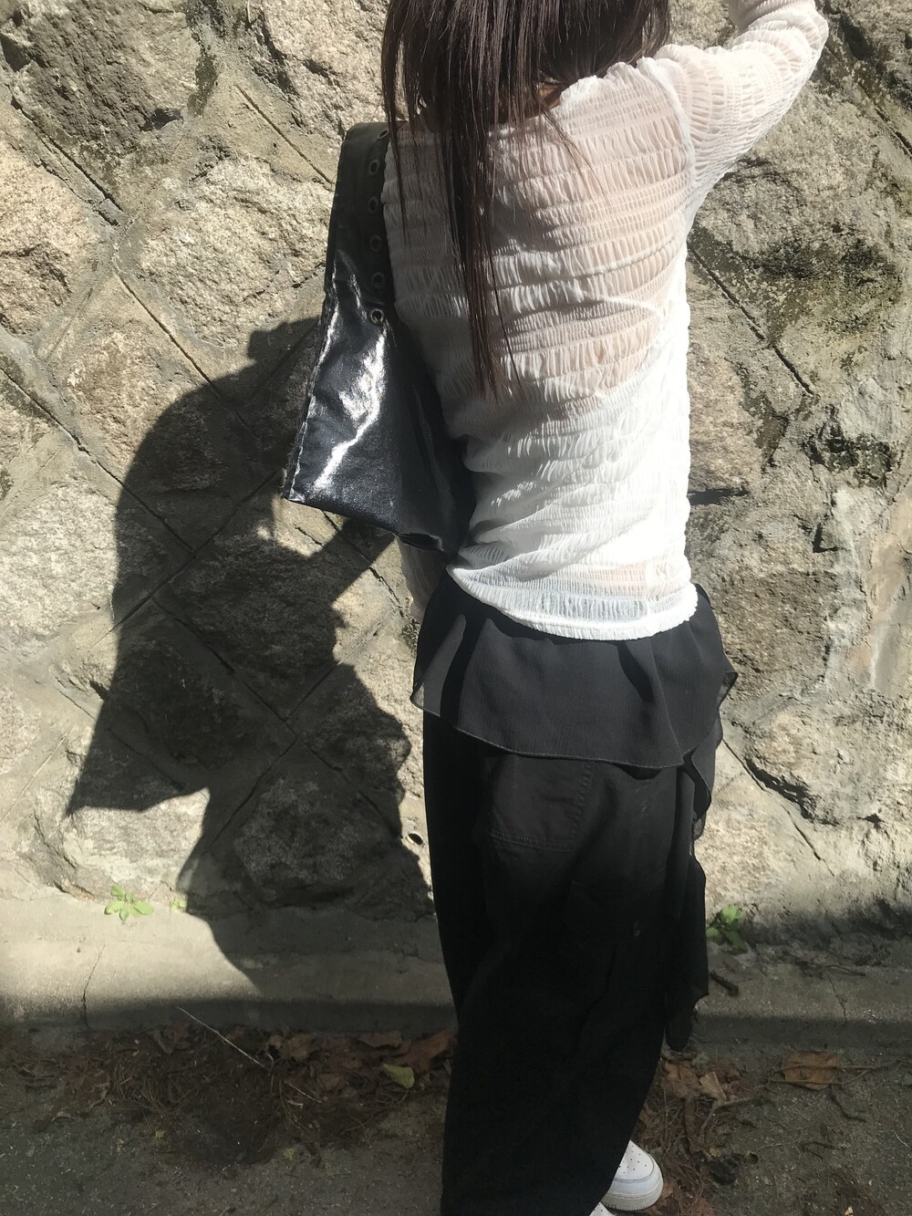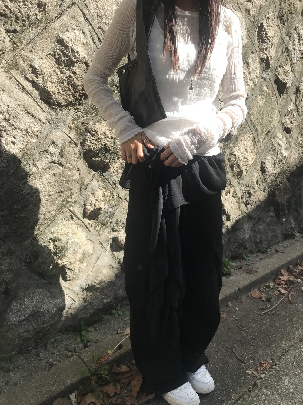 숏한 기장감과 시스루 소재로 단독착용이 불가능한