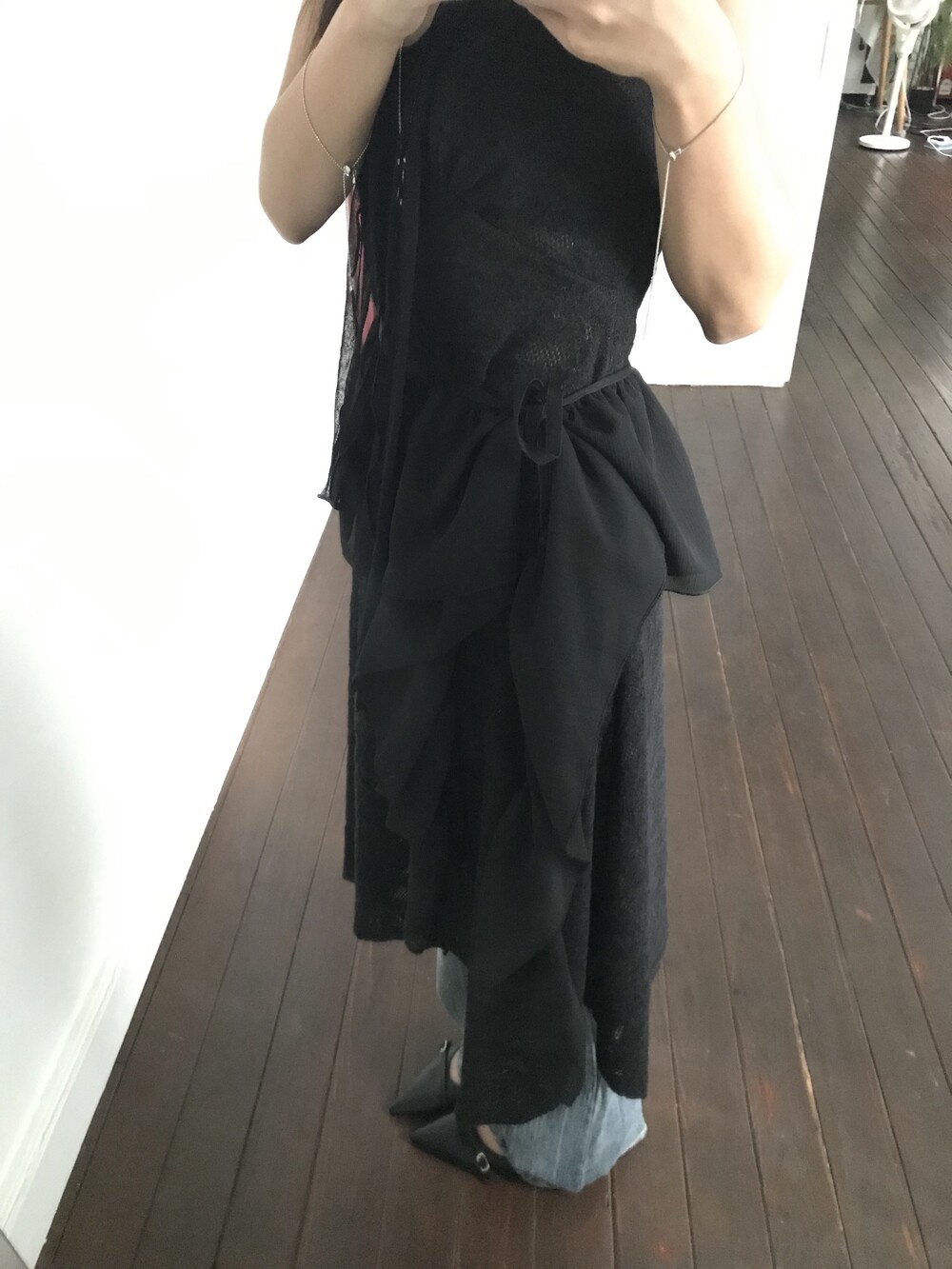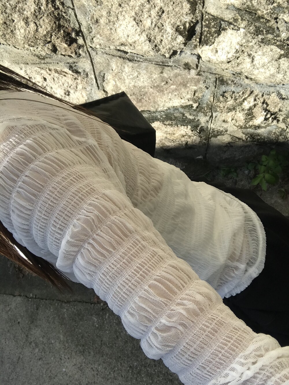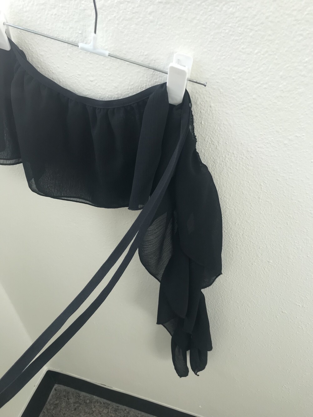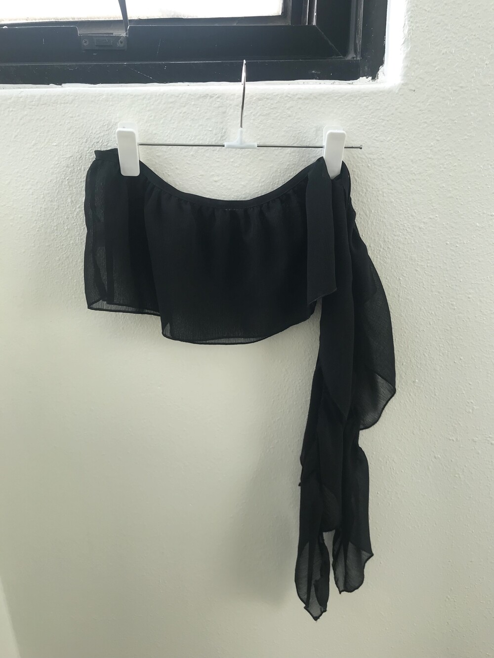 숏한 기장감과 시스루 소재로 단독착용이 불가능한