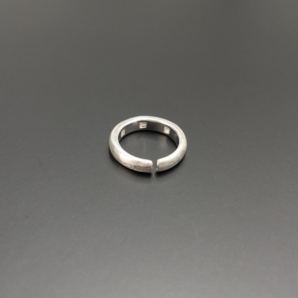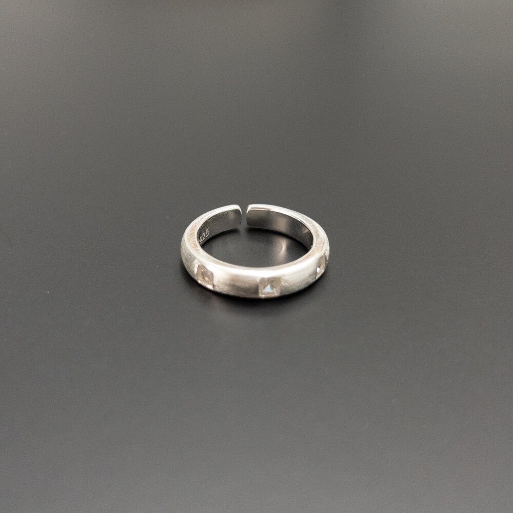 도톰한 두께감에 매트한 질감이 더해진 큐빅 디테일의 반지입니다.