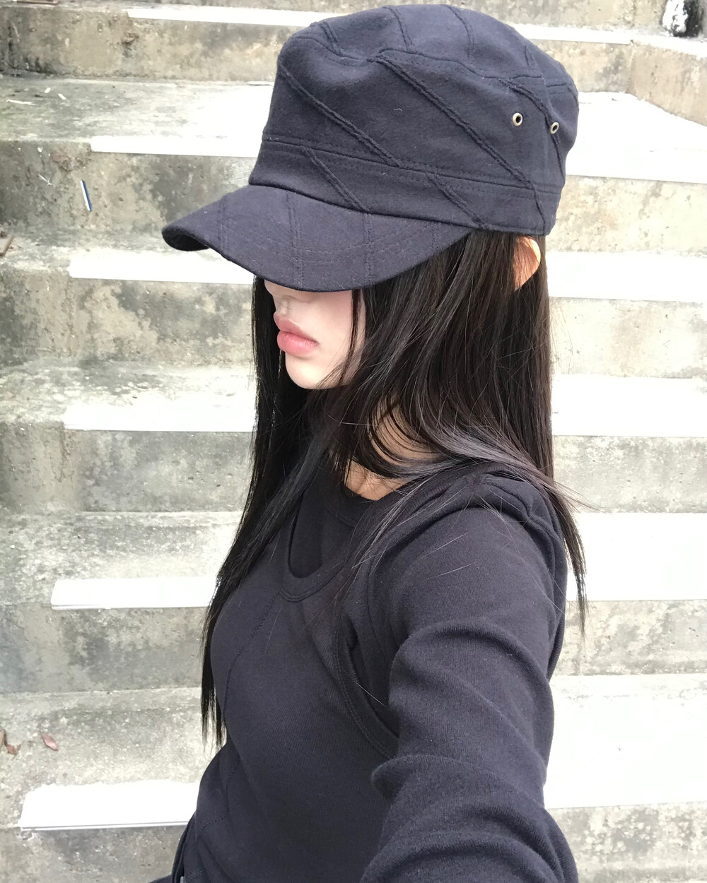 -군모 실루엣에 은은한 스티치 라인이 더해진 캐주얼 디자인의 캡