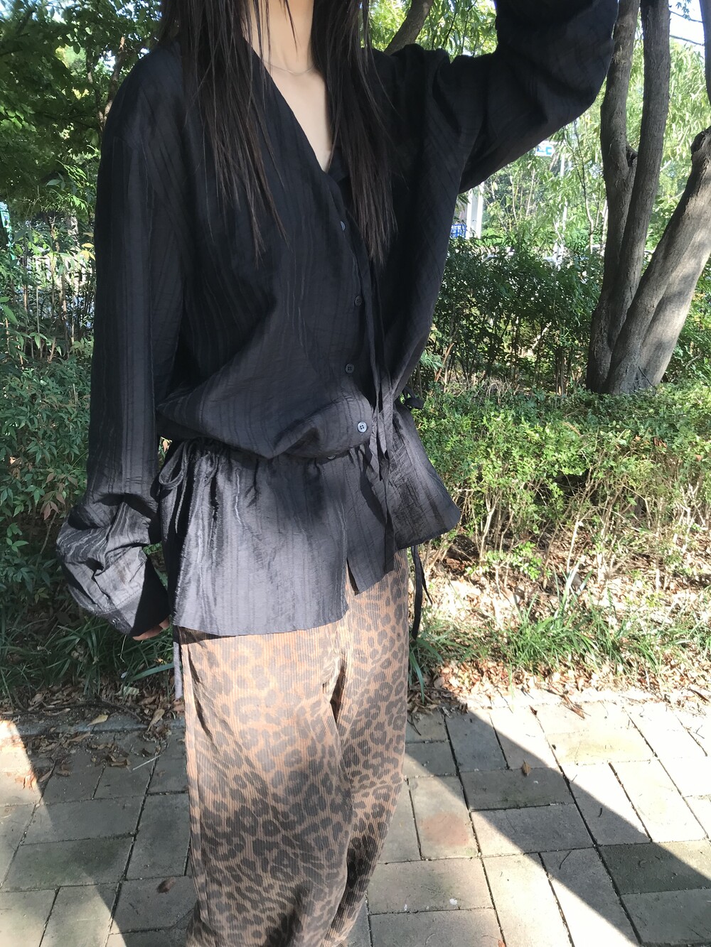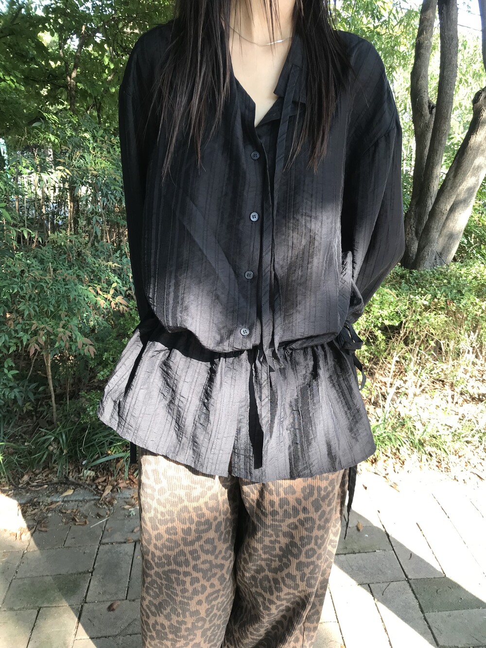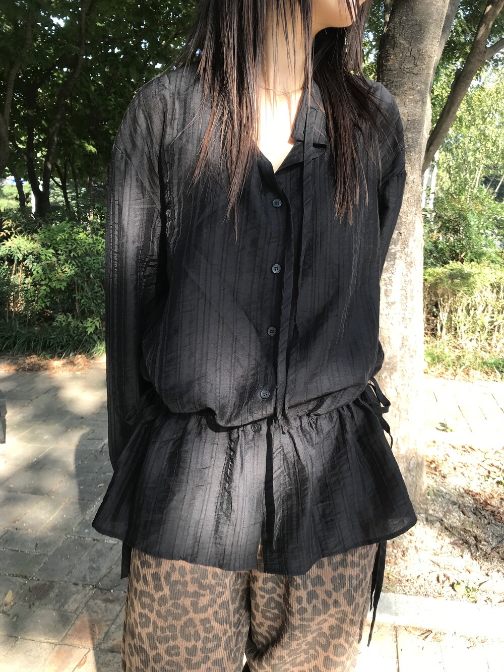 texture shirt blouse - black