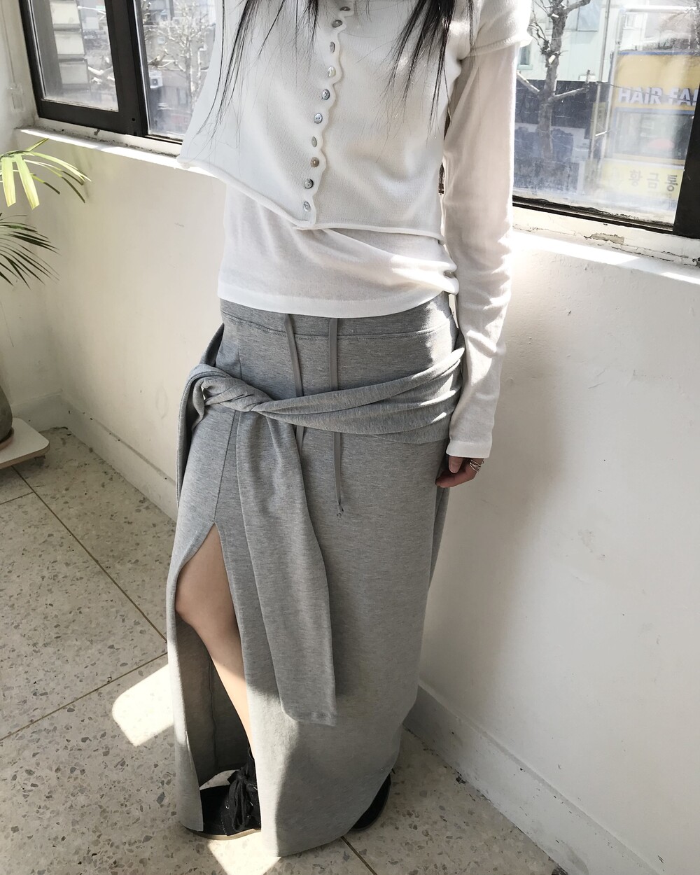 -한쪽 깊은 트임으로 활동성을 더하고, 슬림한 핏이