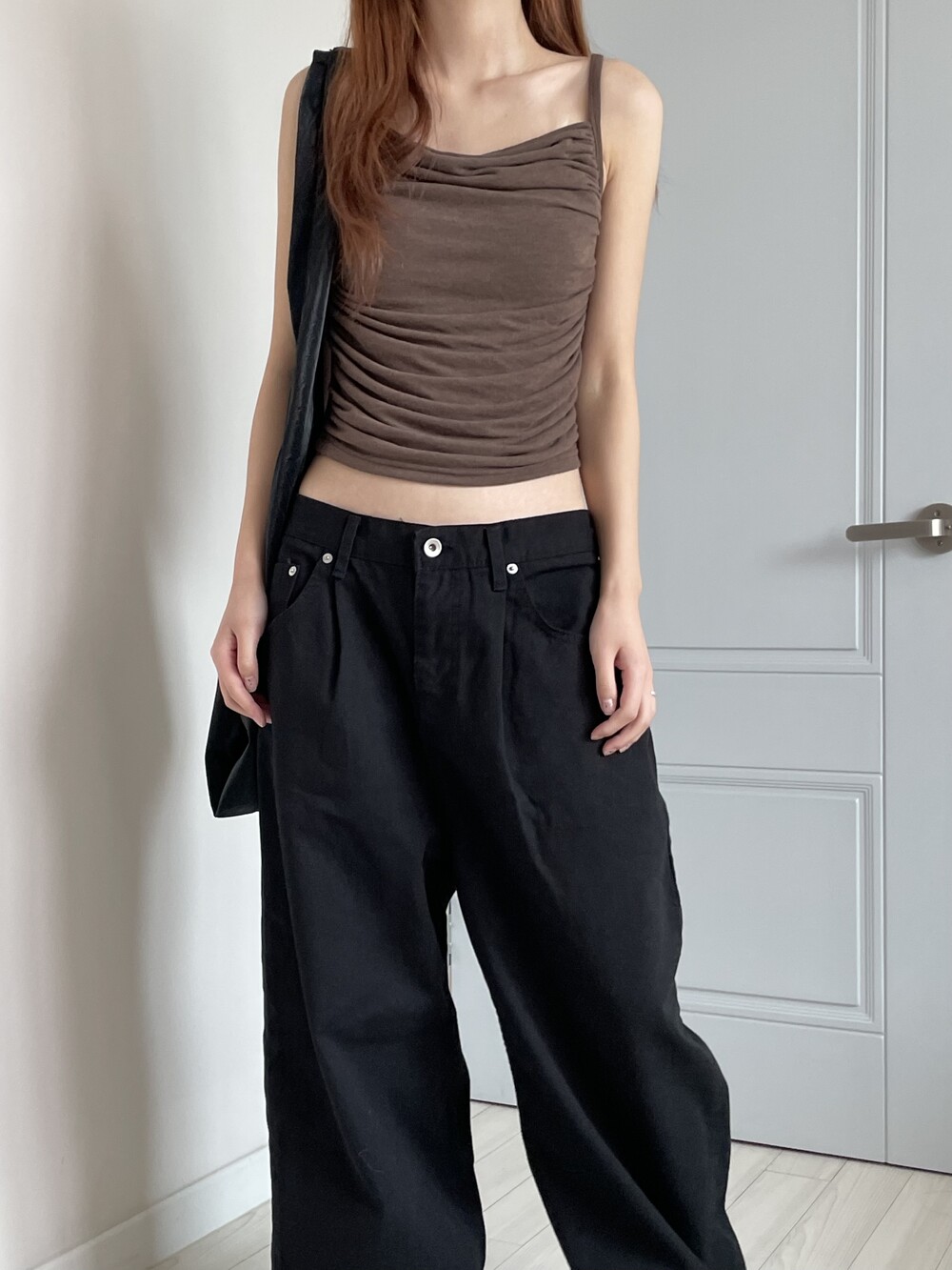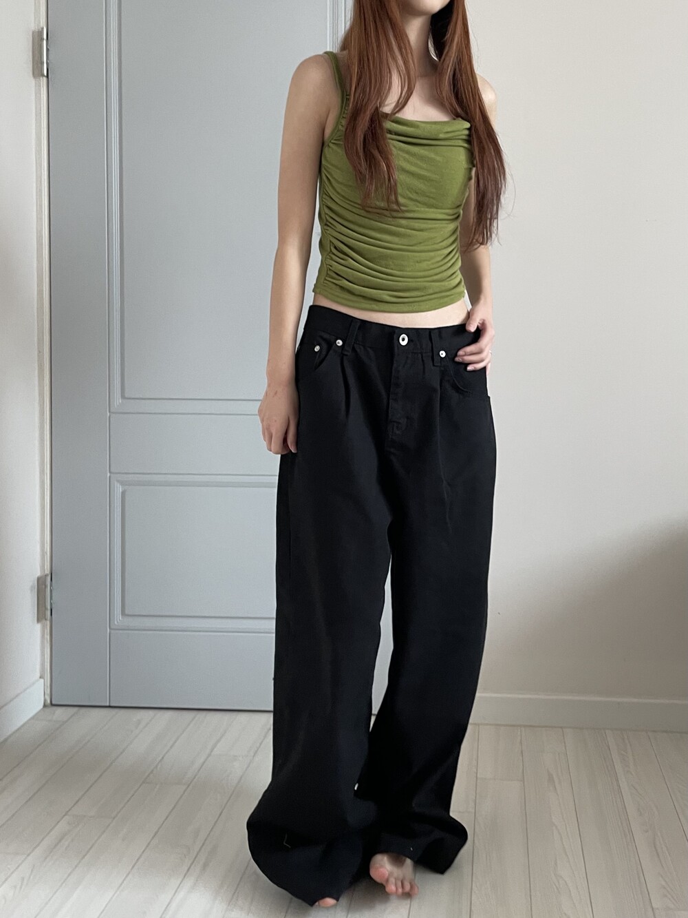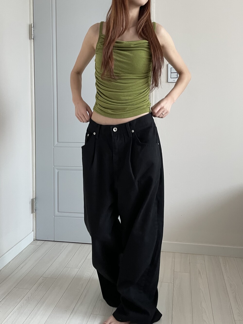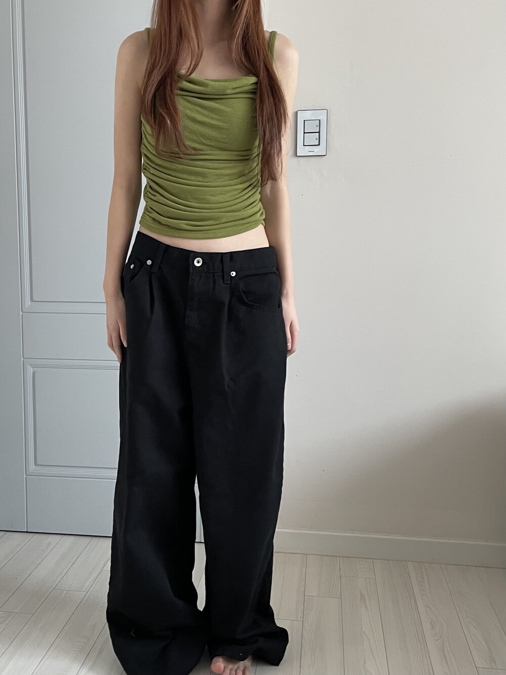 앞, 뒤로 웨이스트라인부터 핀턱 디테일이 들어가 있어