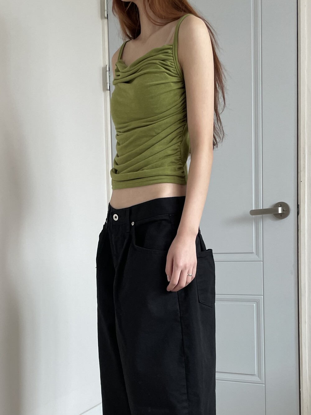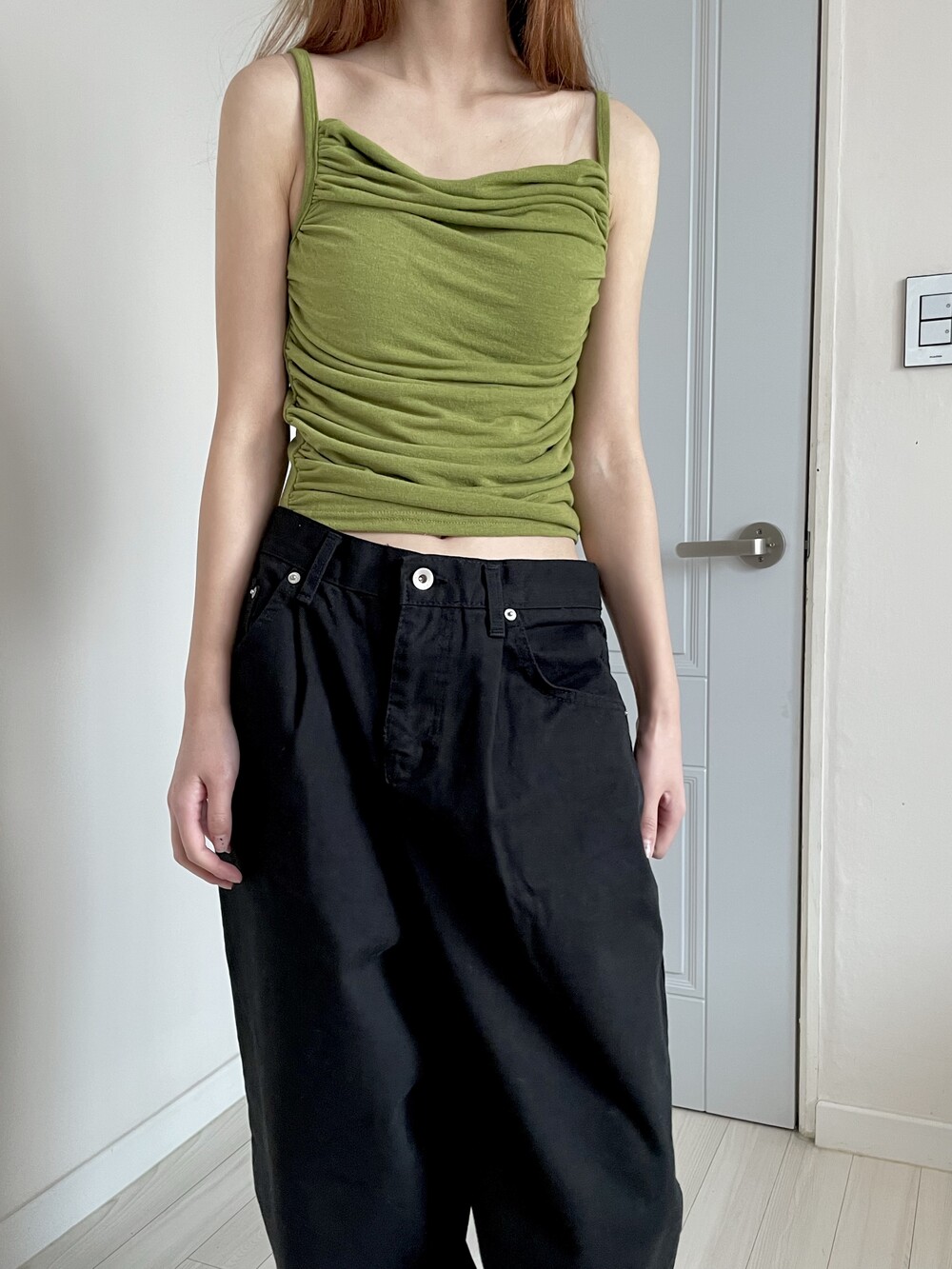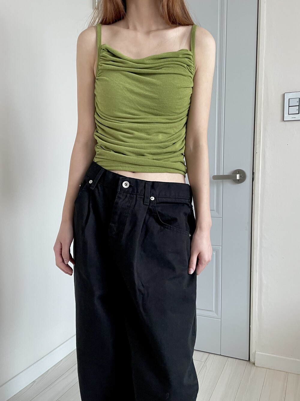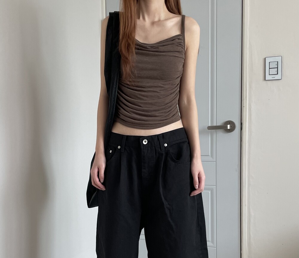 앞, 뒤로 웨이스트라인부터 핀턱 디테일이 들어가 있어