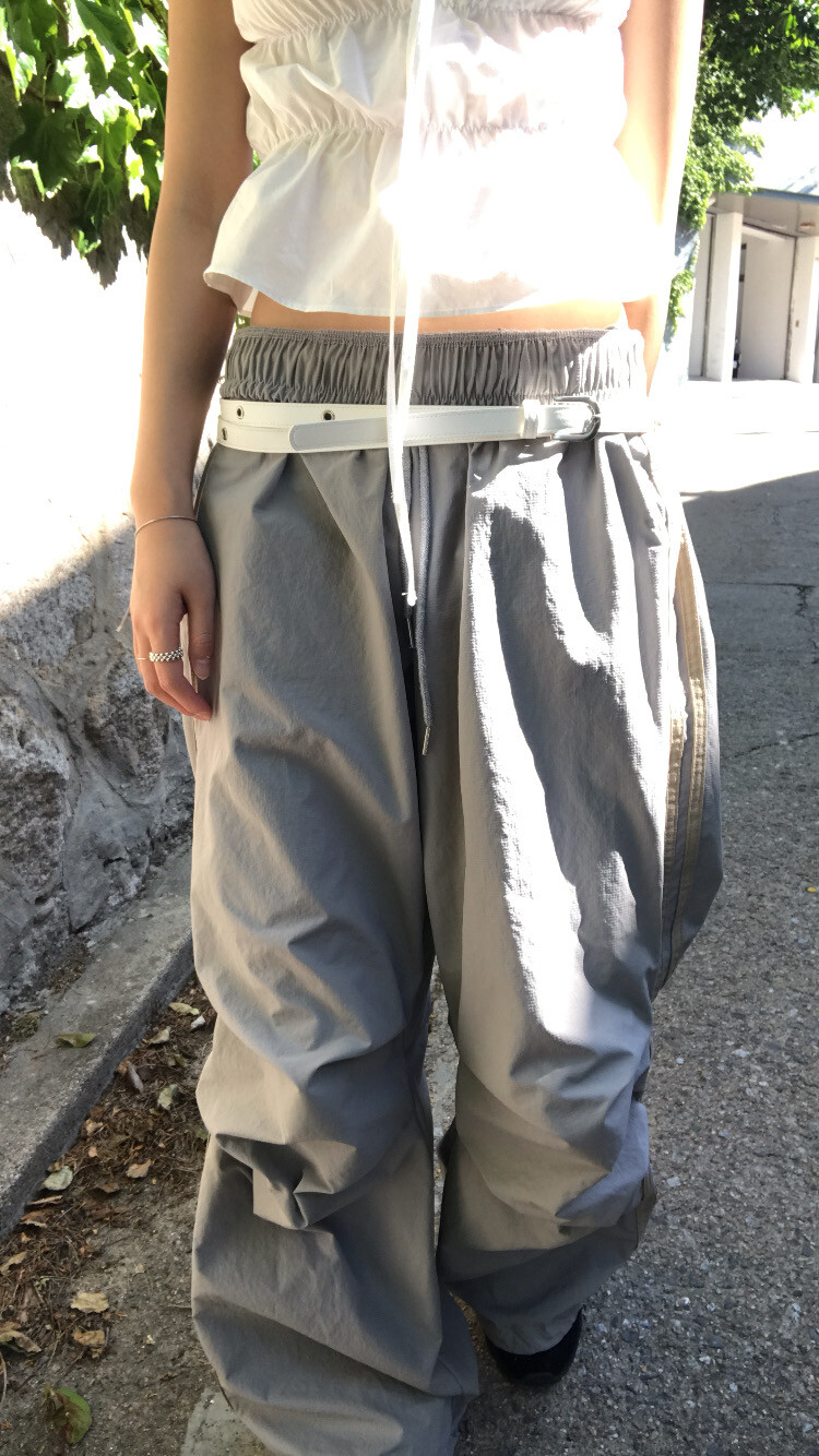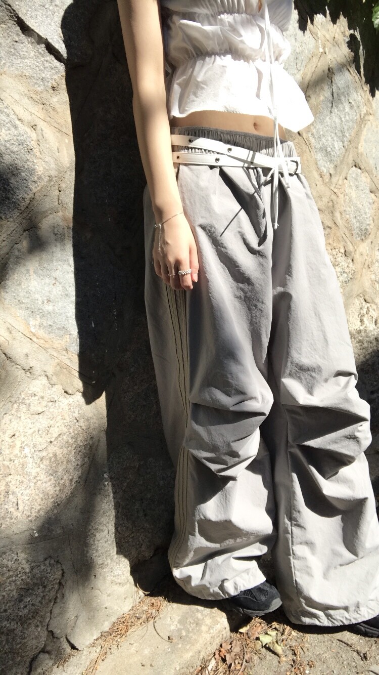 (unisex) parachute line pants - light gray