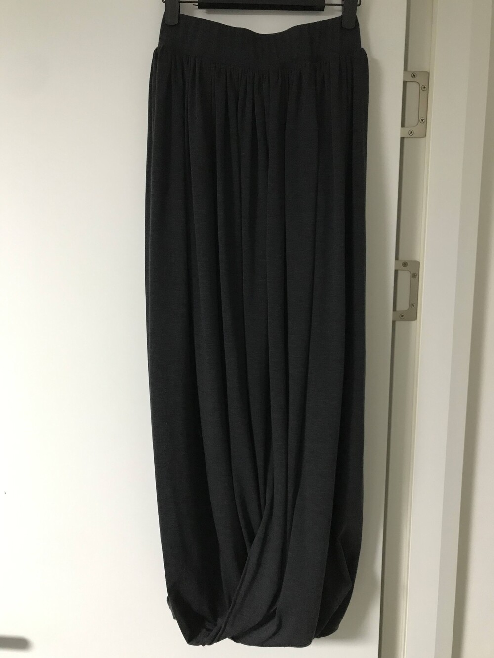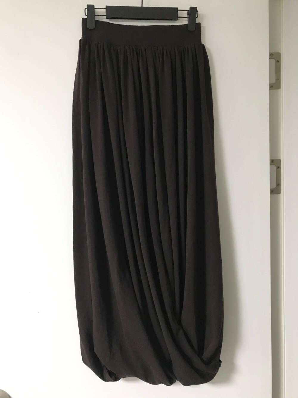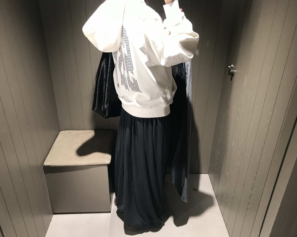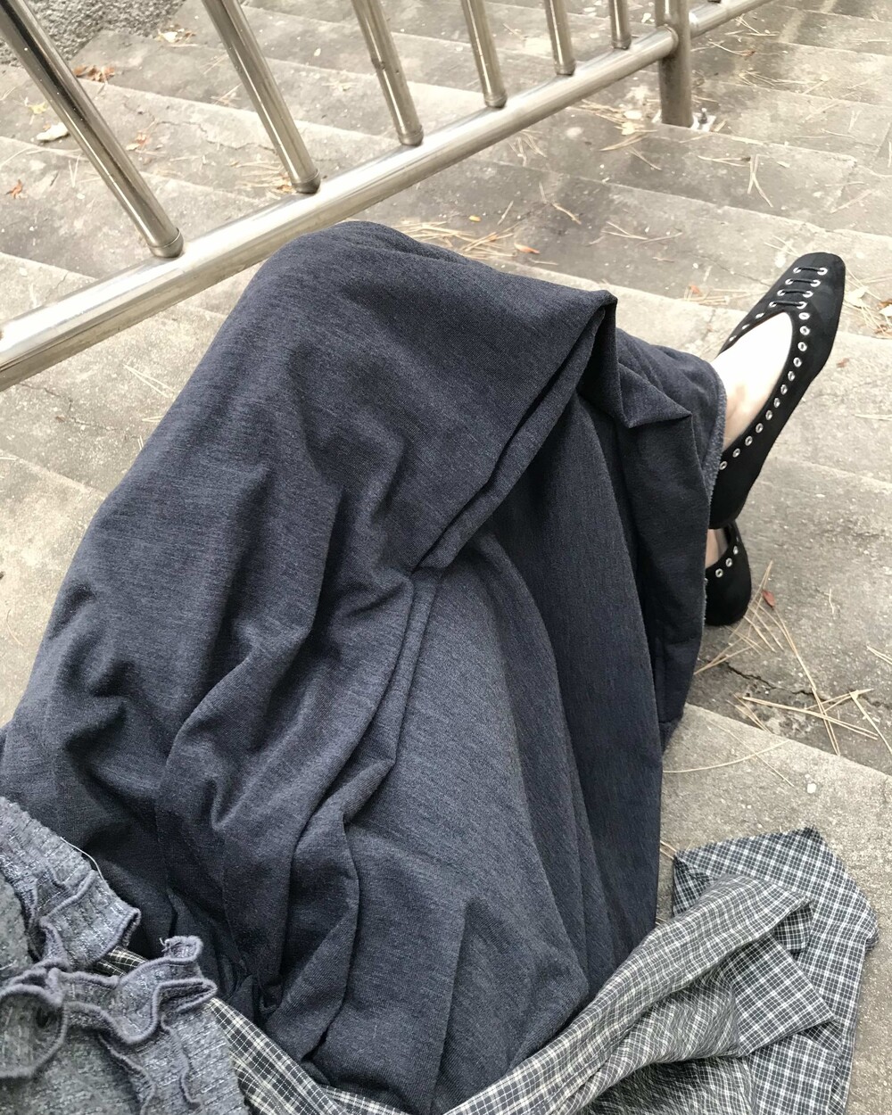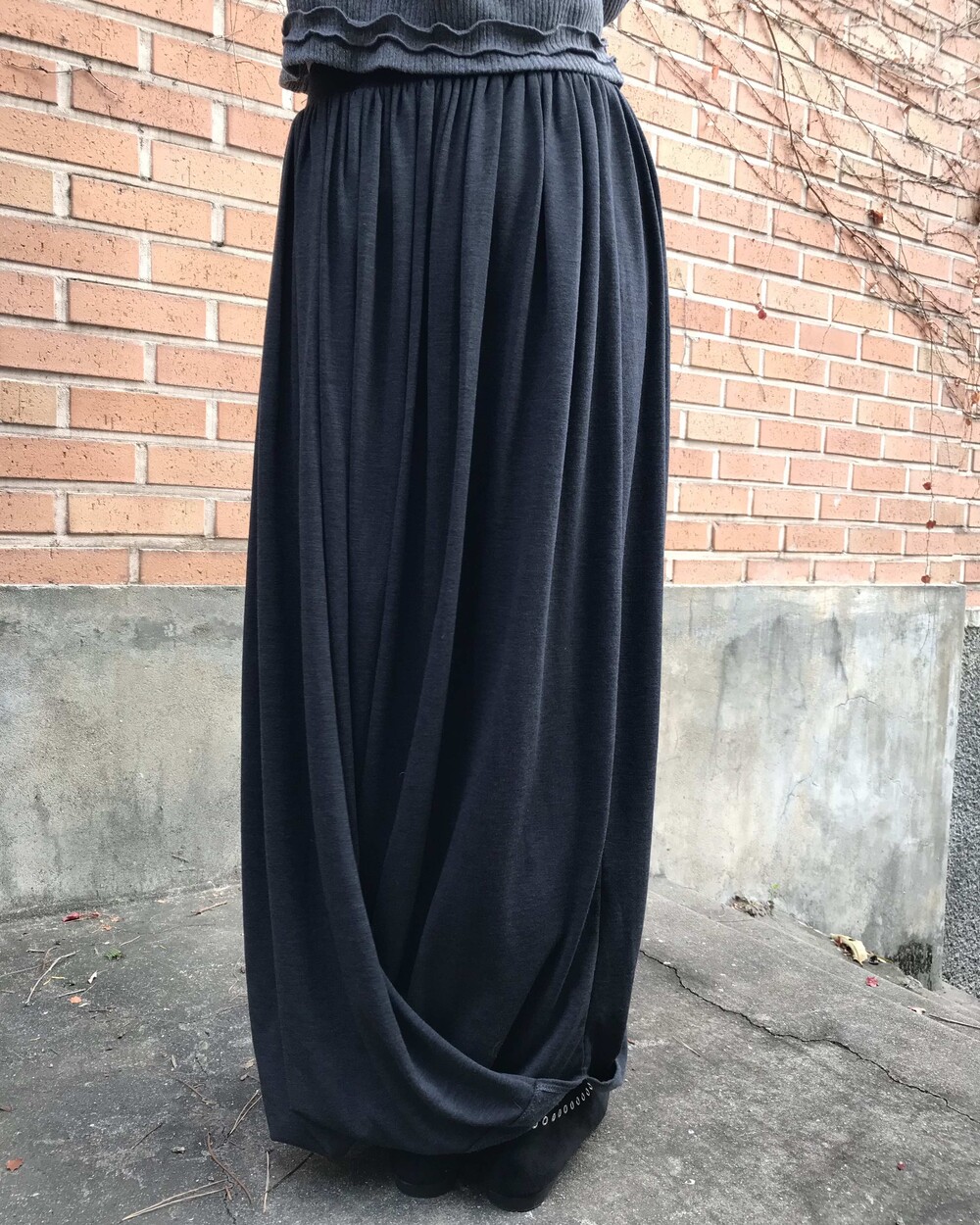 밑단이 살짝 오므라지며 벌룬처럼 완성되는 맥시 스커트