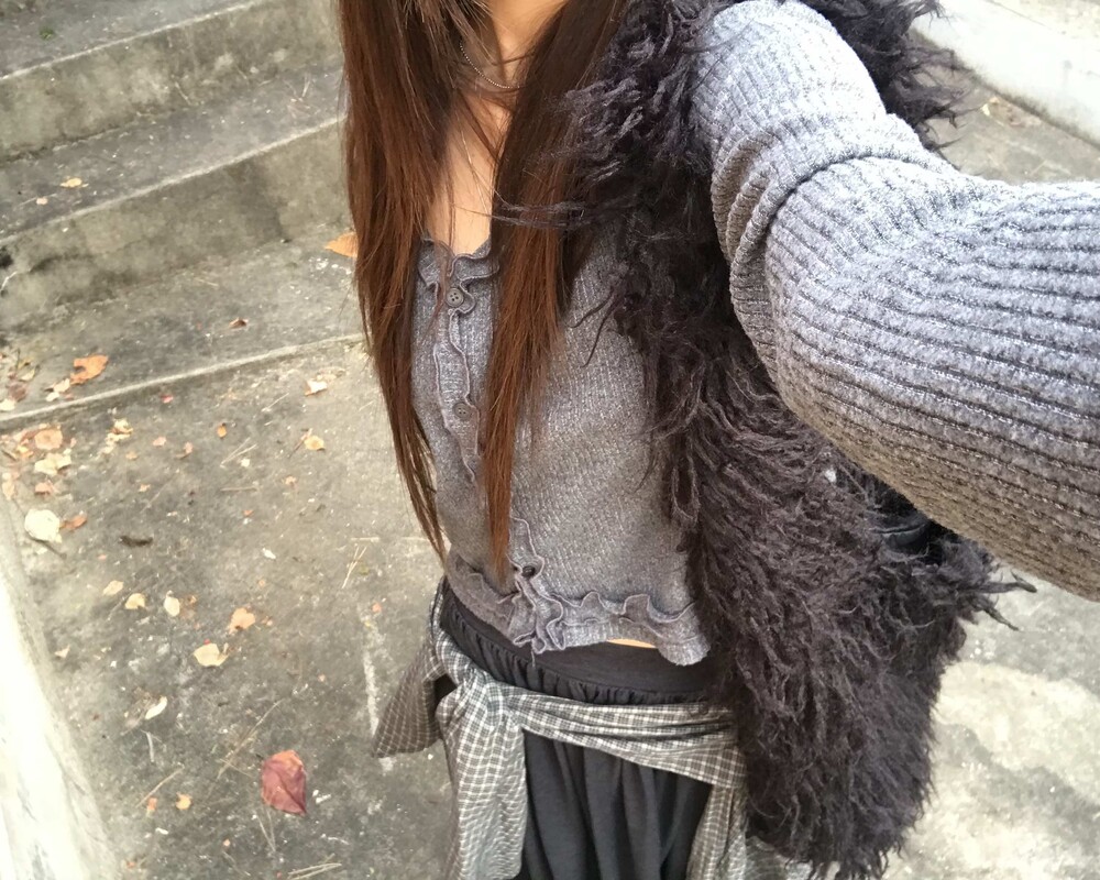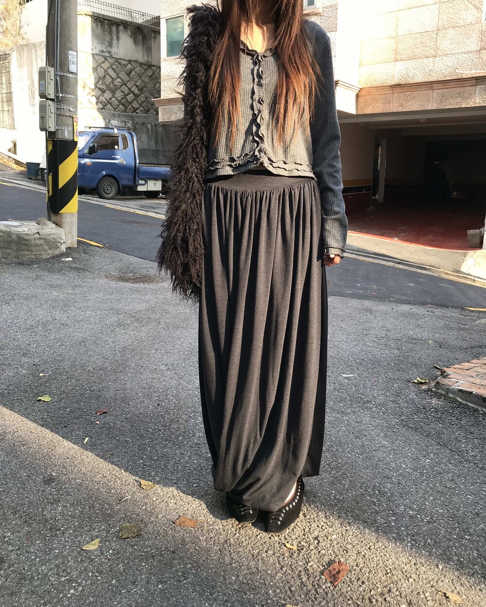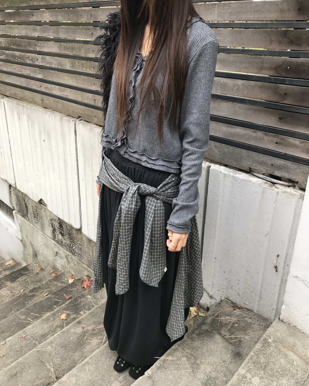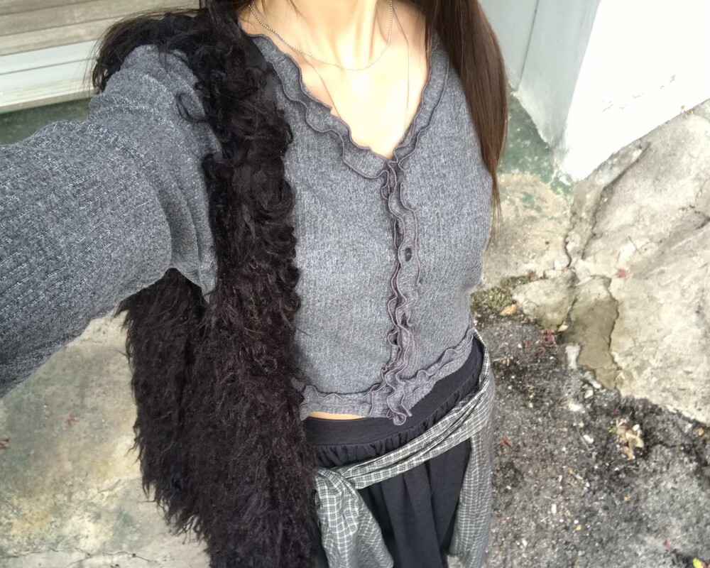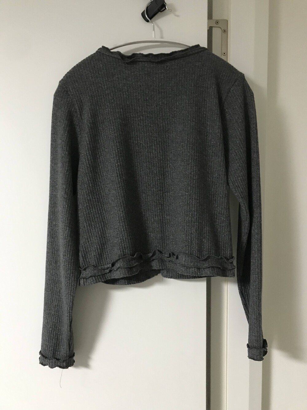 -골지 텍스처 위로 프릴 라인이 더해진 사랑스러운 분위기의 가디건