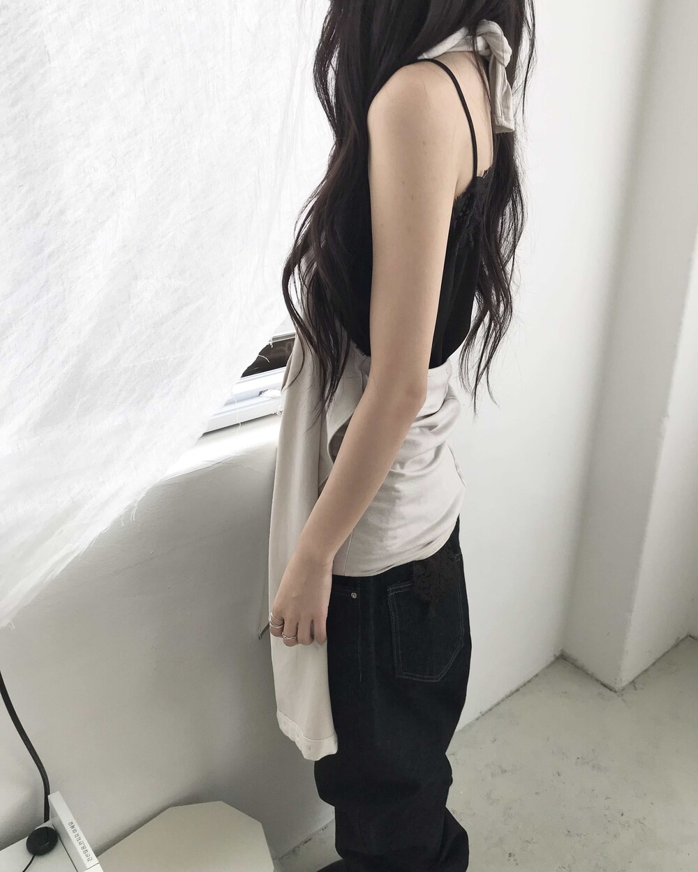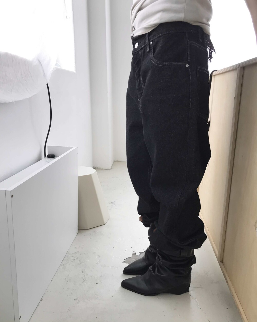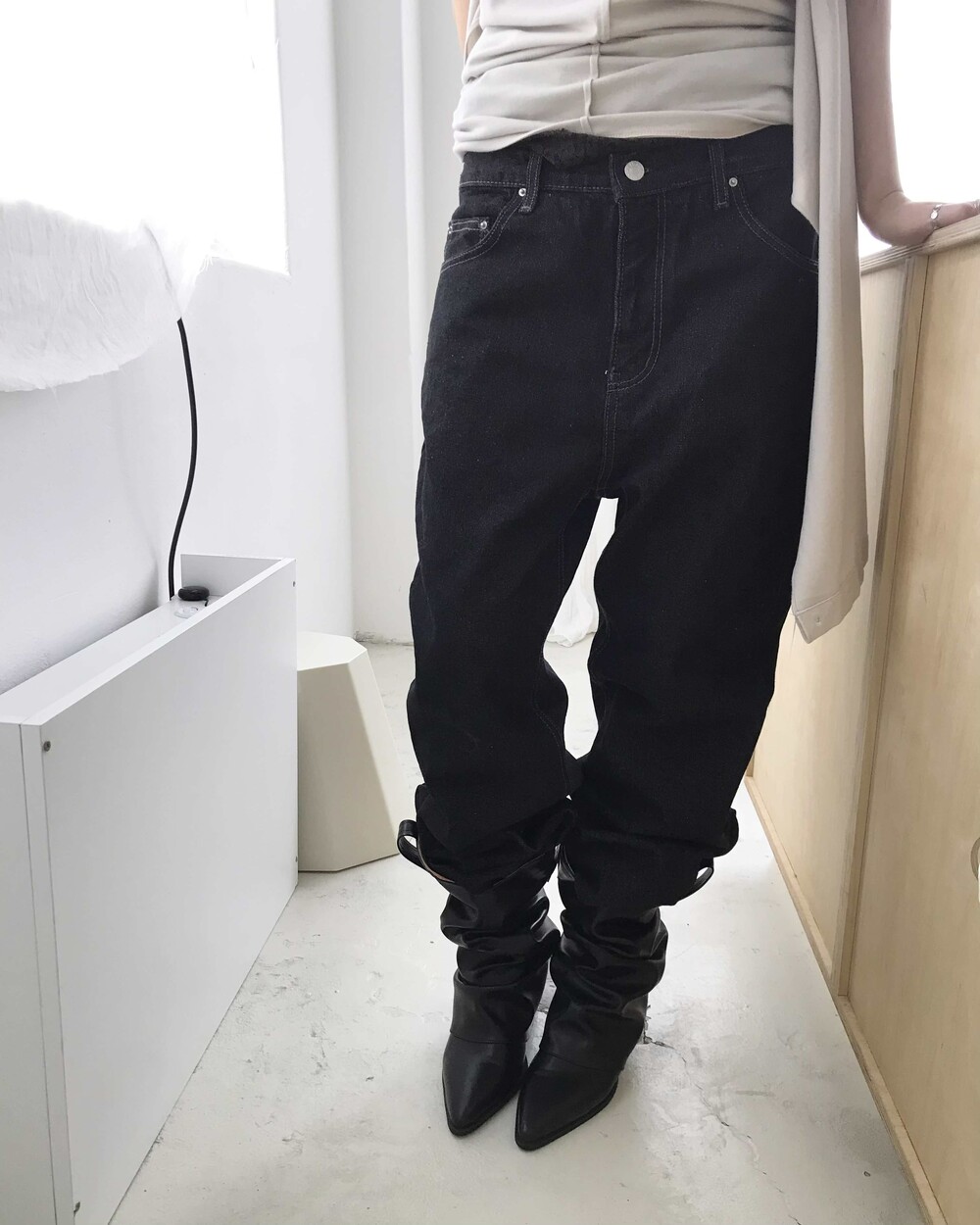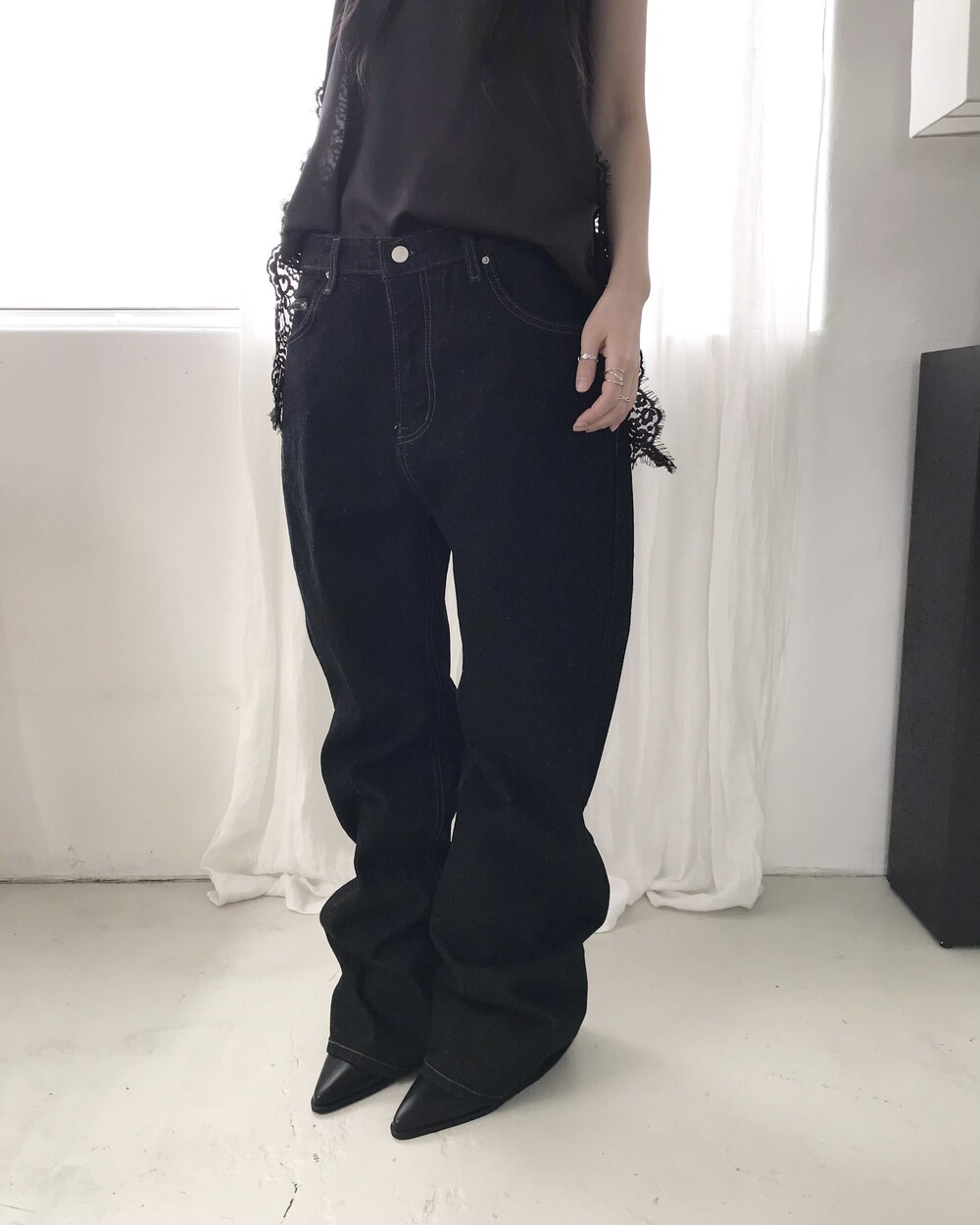 -밑단을 접어 연출하기 좋으며 생지 데님 특성상 이염 주의가 필요한 제품