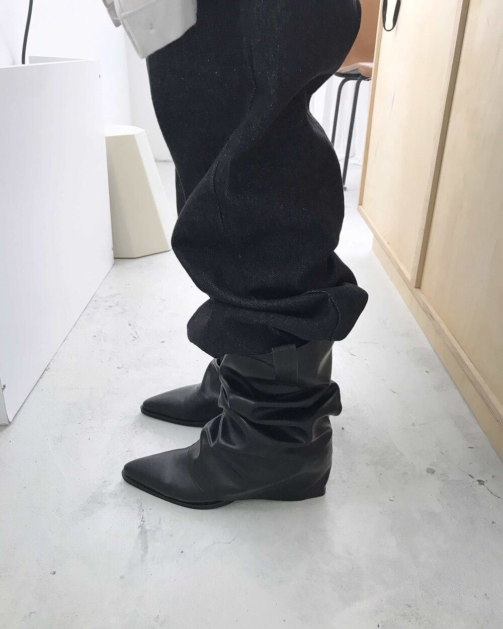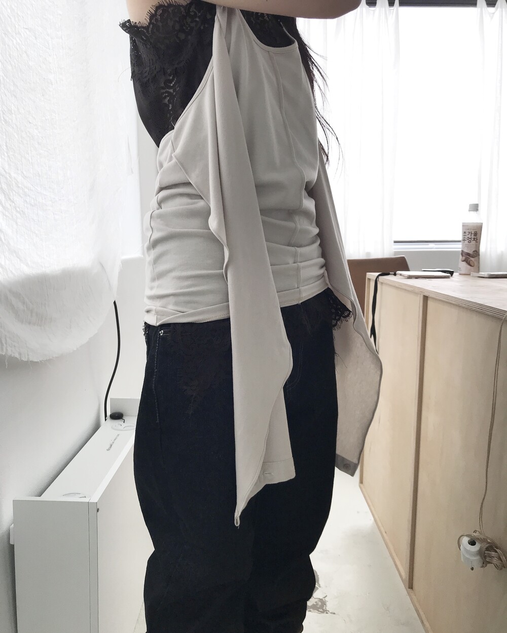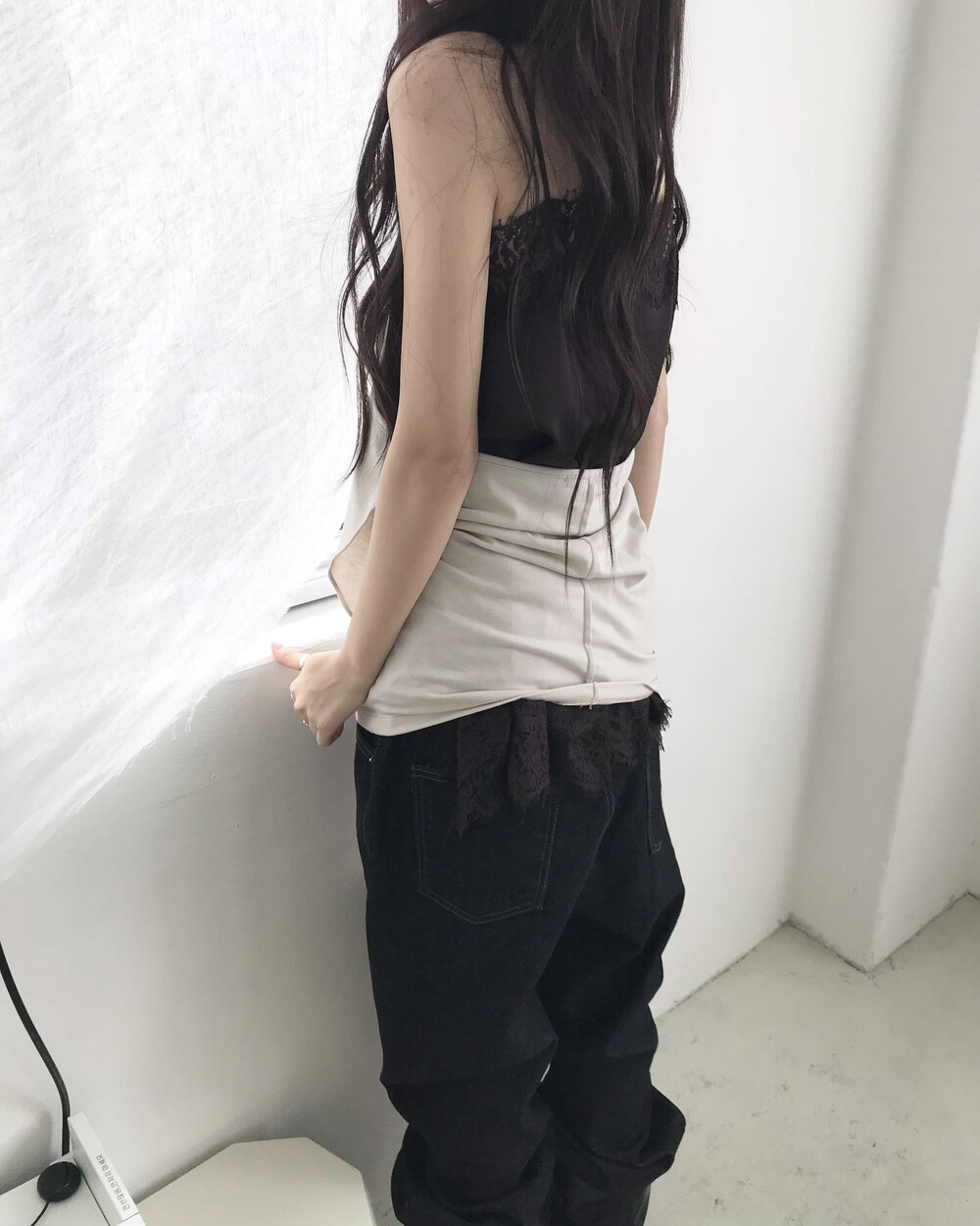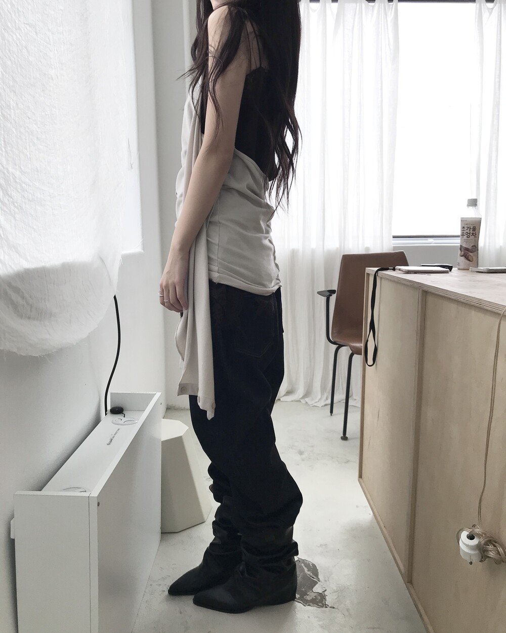 -밑단을 접어 연출하기 좋으며 생지 데님 특성상 이염 주의가 필요한 제품