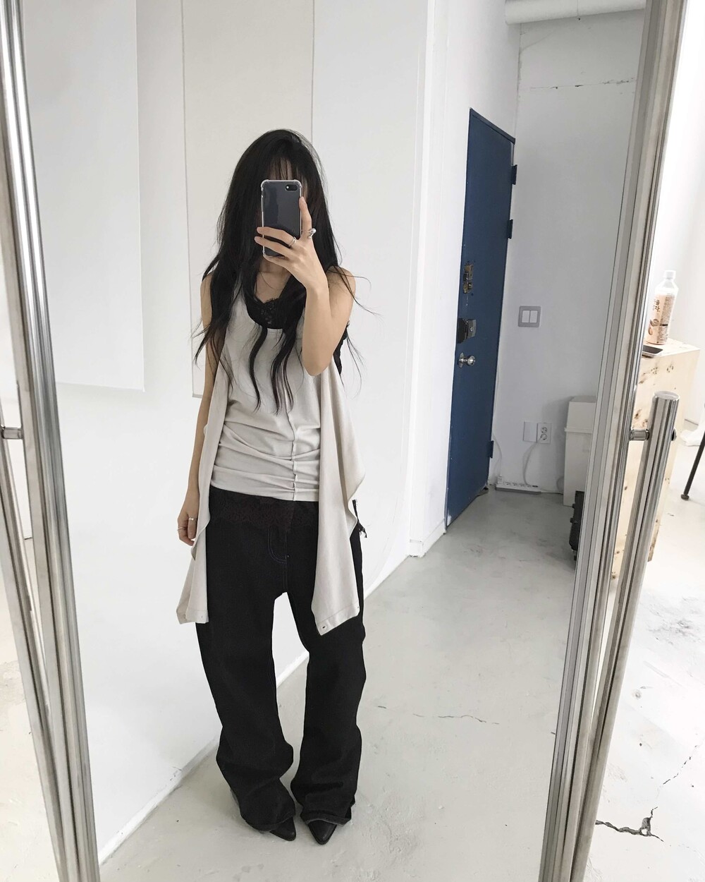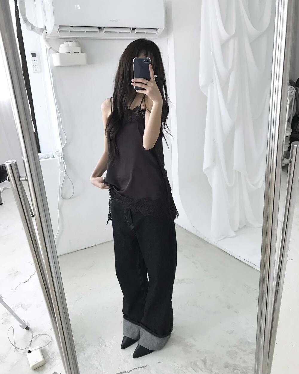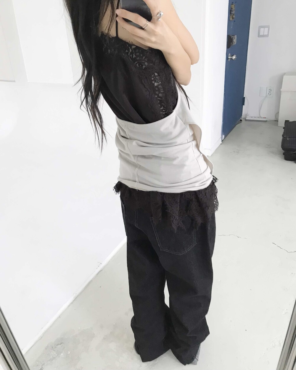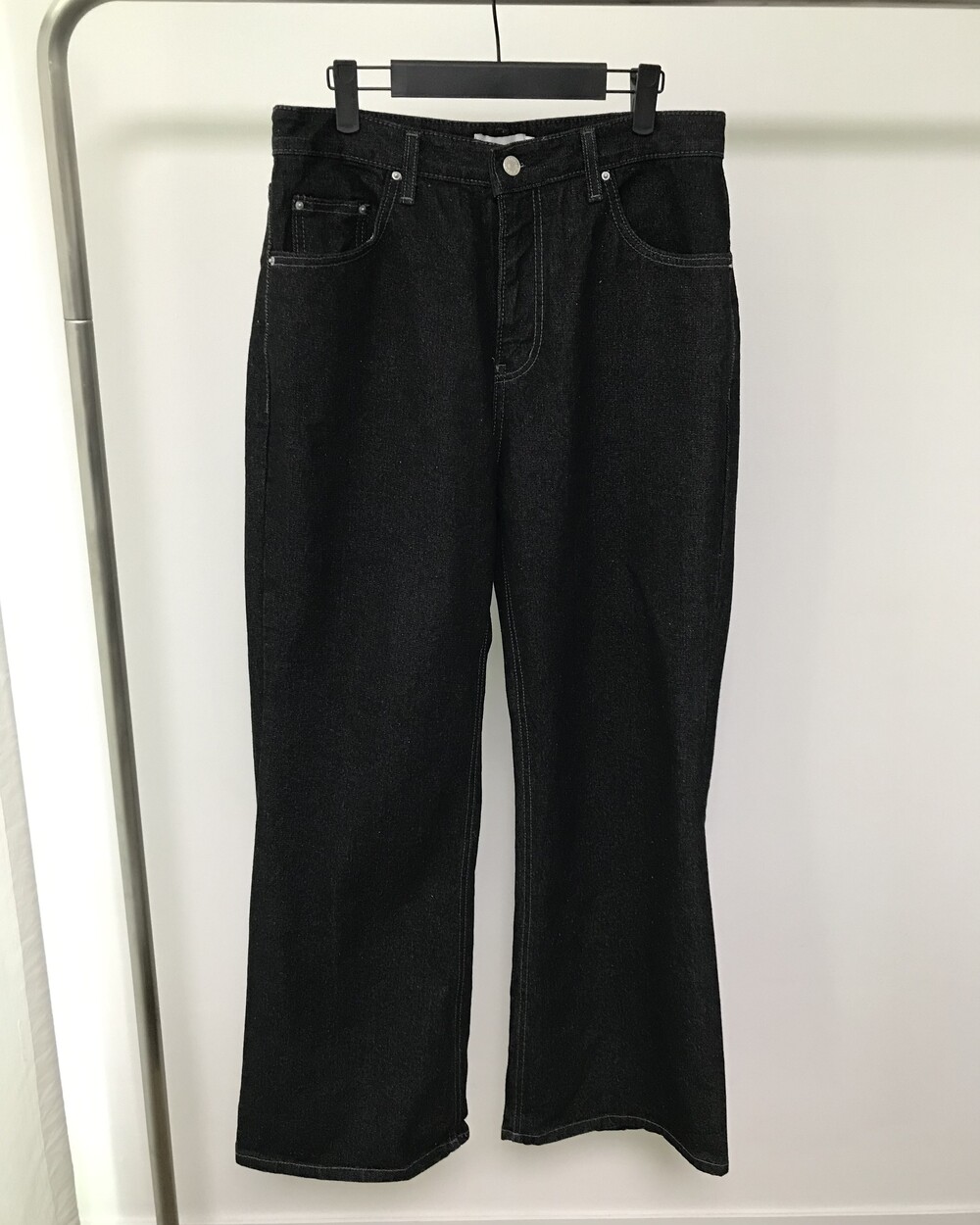 -롱한 기장감의 플레어 와이드 데님