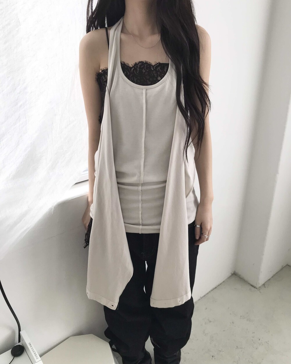 *모델 기준 S사이즈 착용 시 골반 살짝 아래에 걸쳐 착용되며,