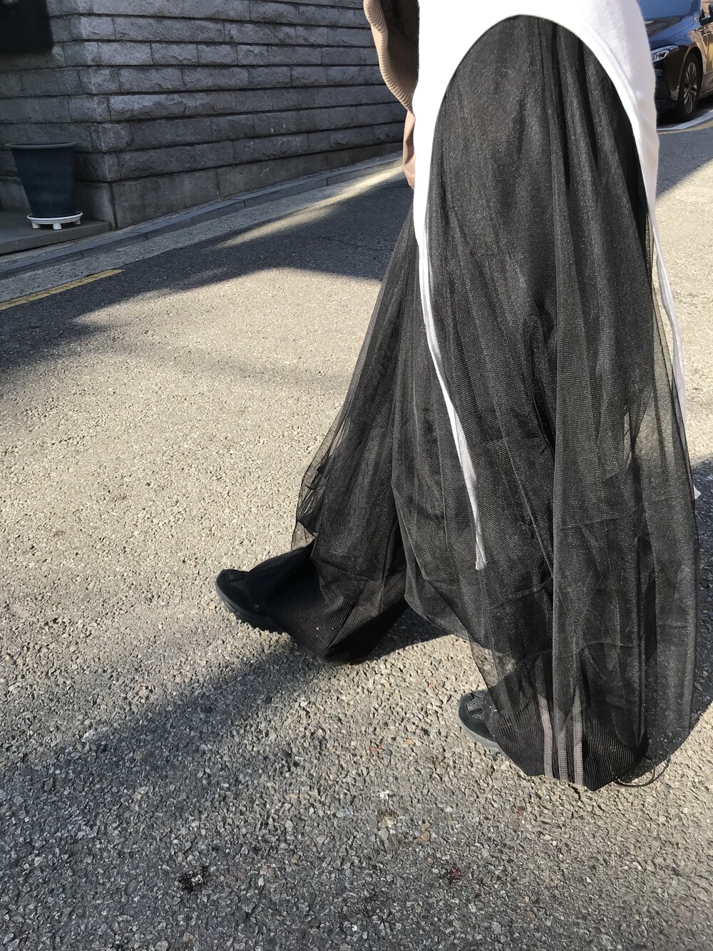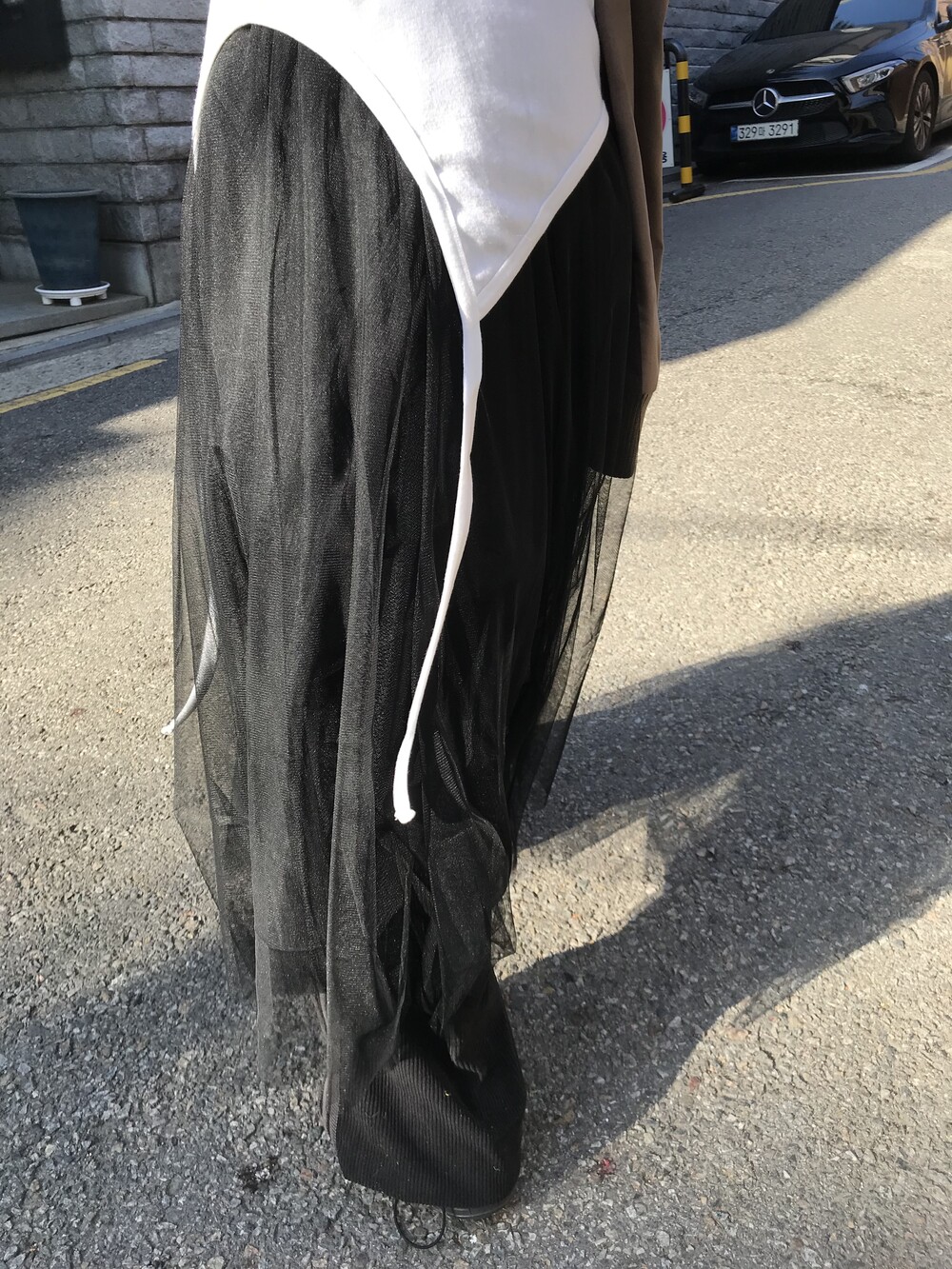 -망사 롱 스커트 (이중 샤 레이어드 + 안감 구성)