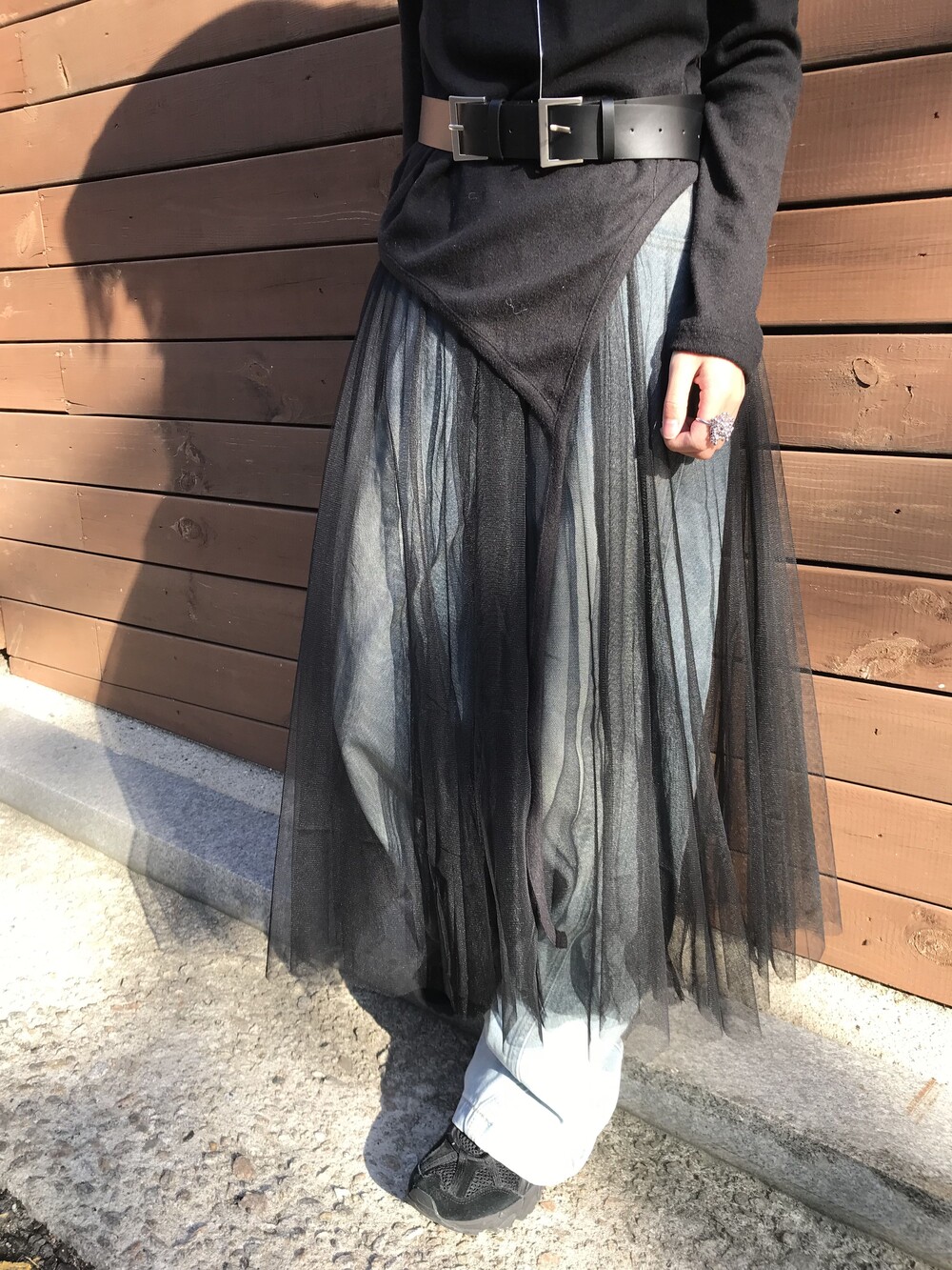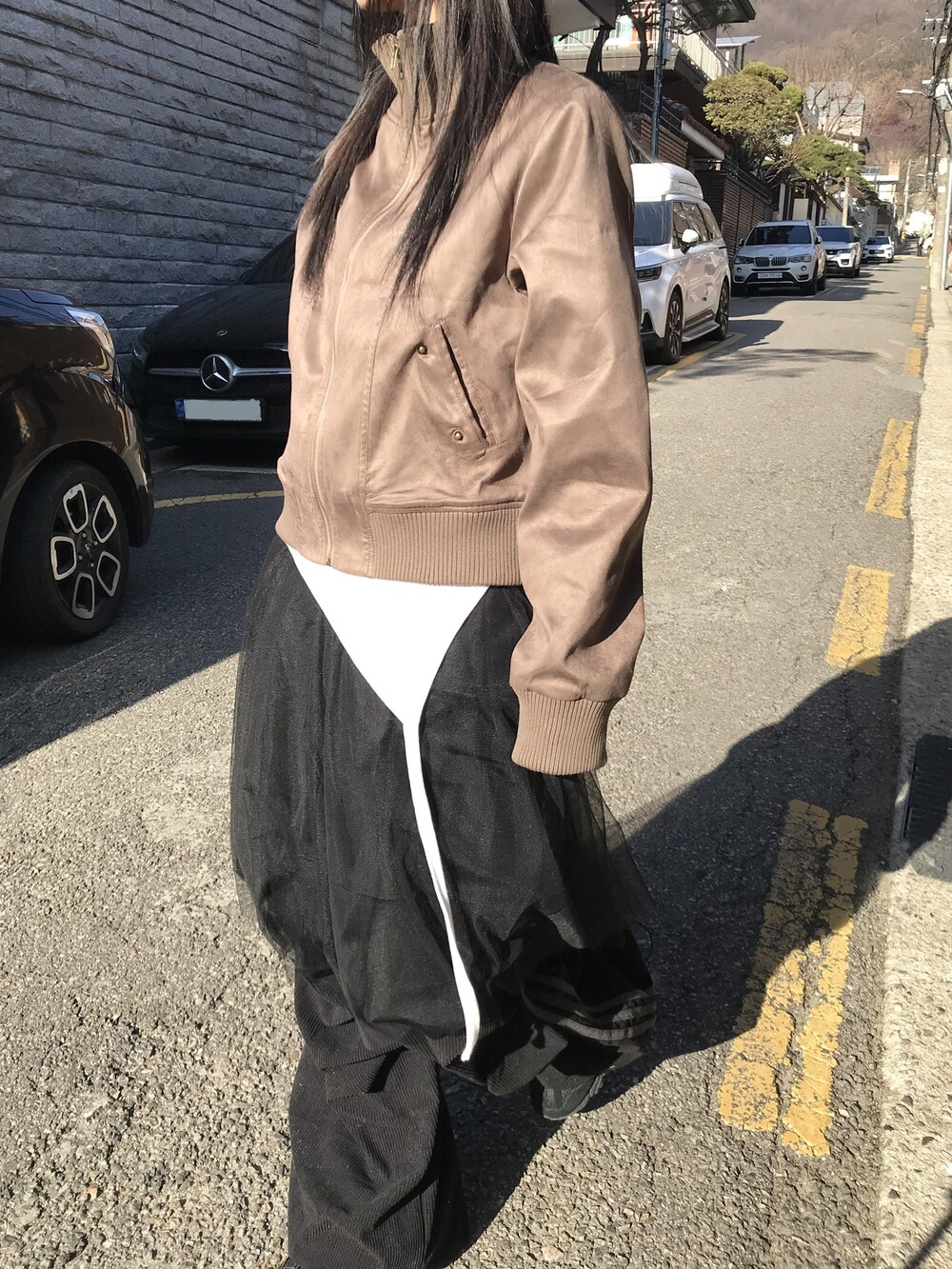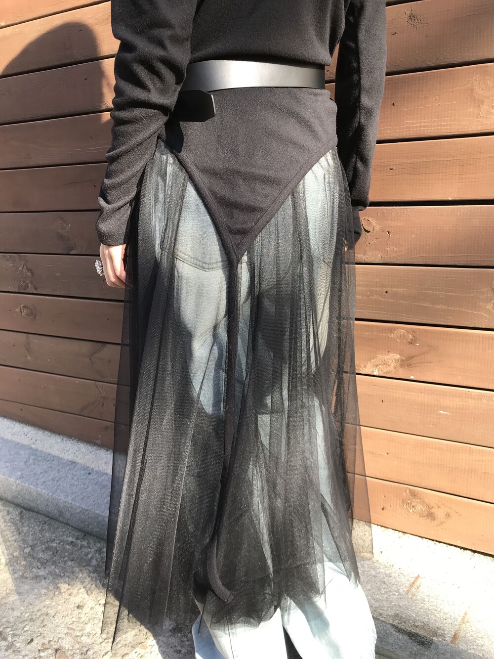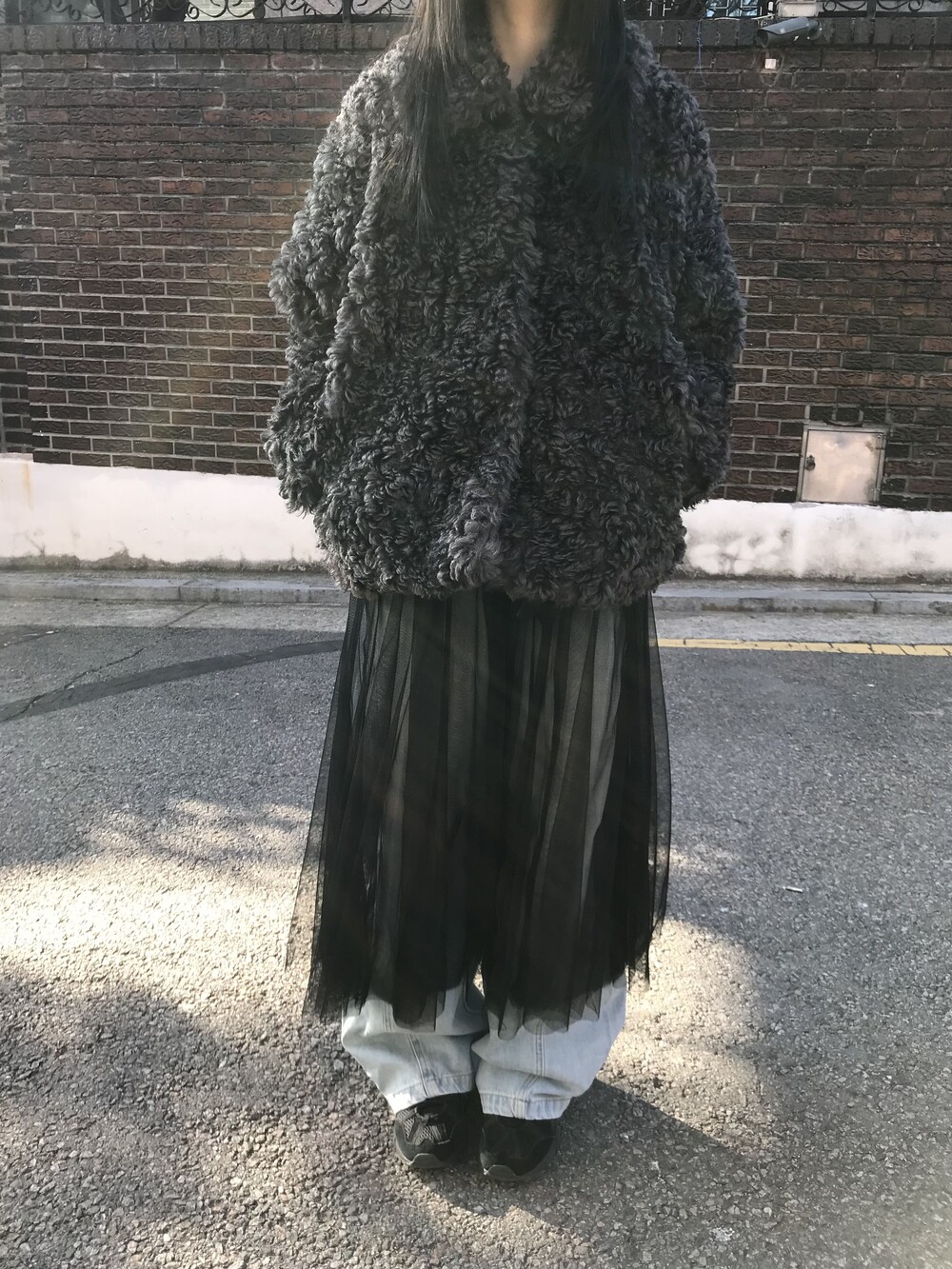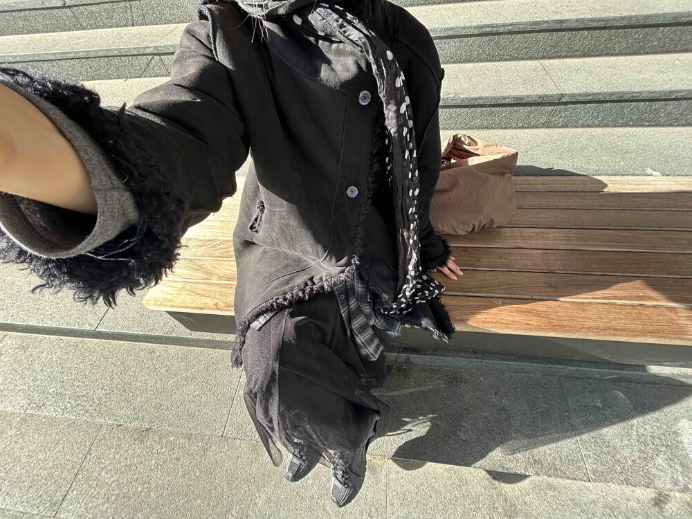데님 팬츠와 레이어드한 착장입니다