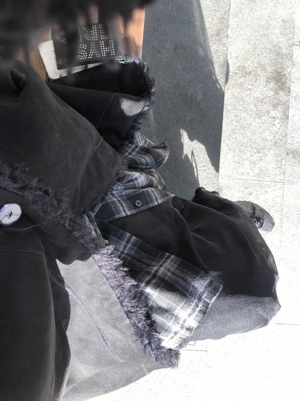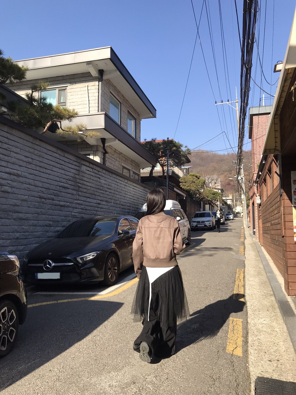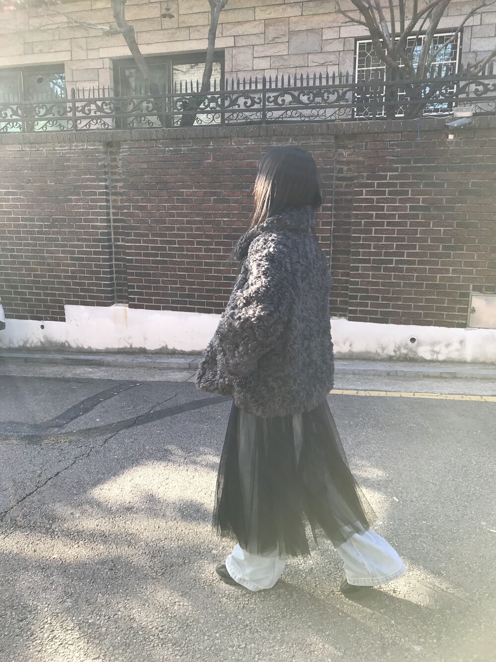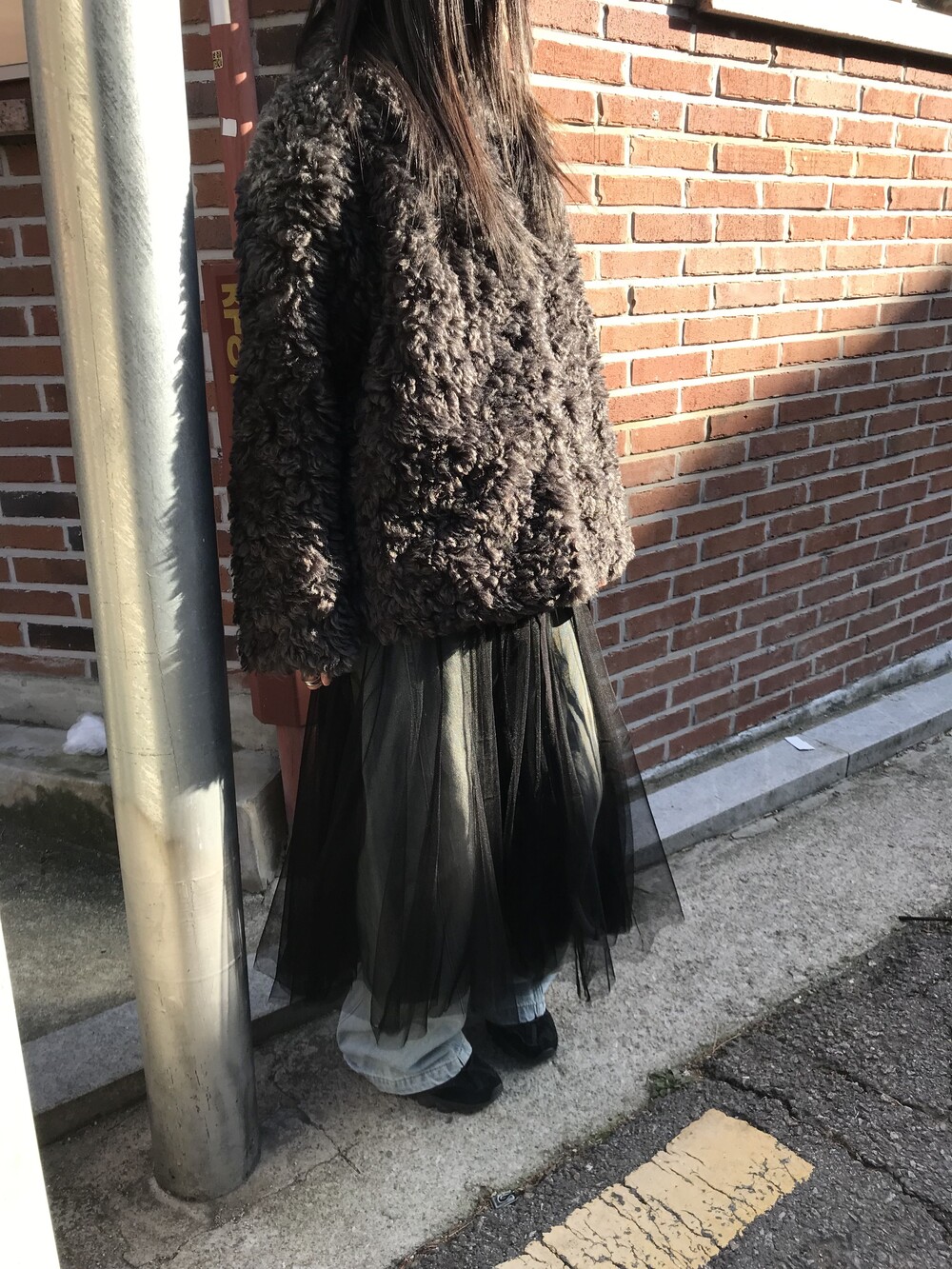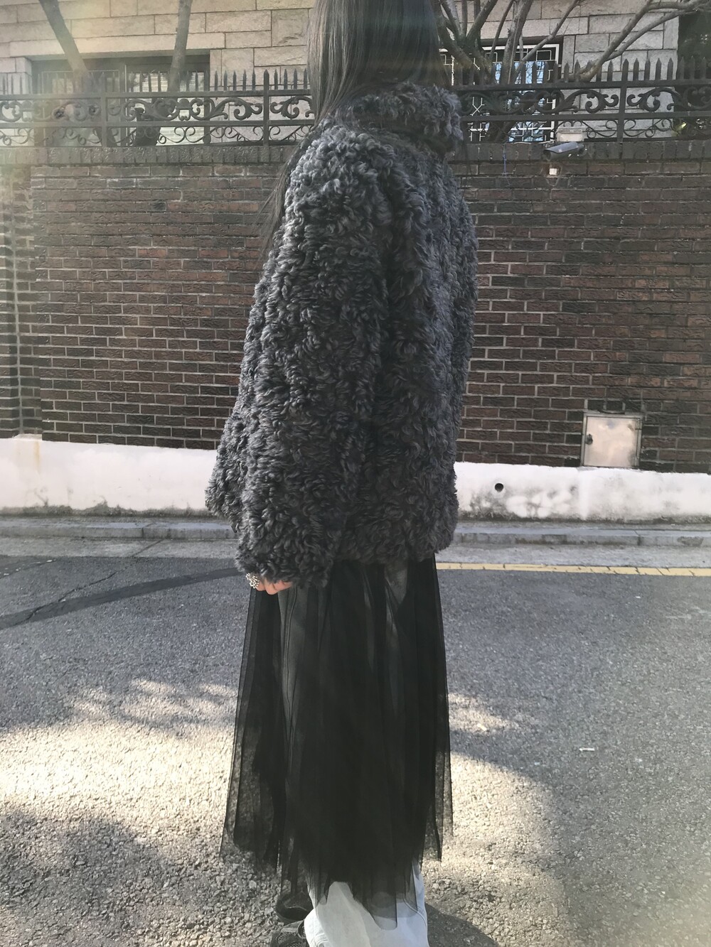 데님 팬츠와 레이어드한 착장입니다