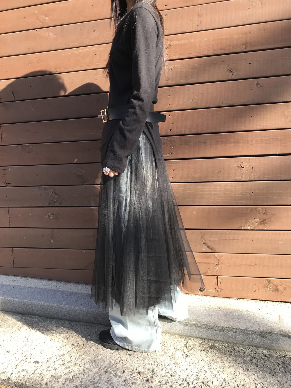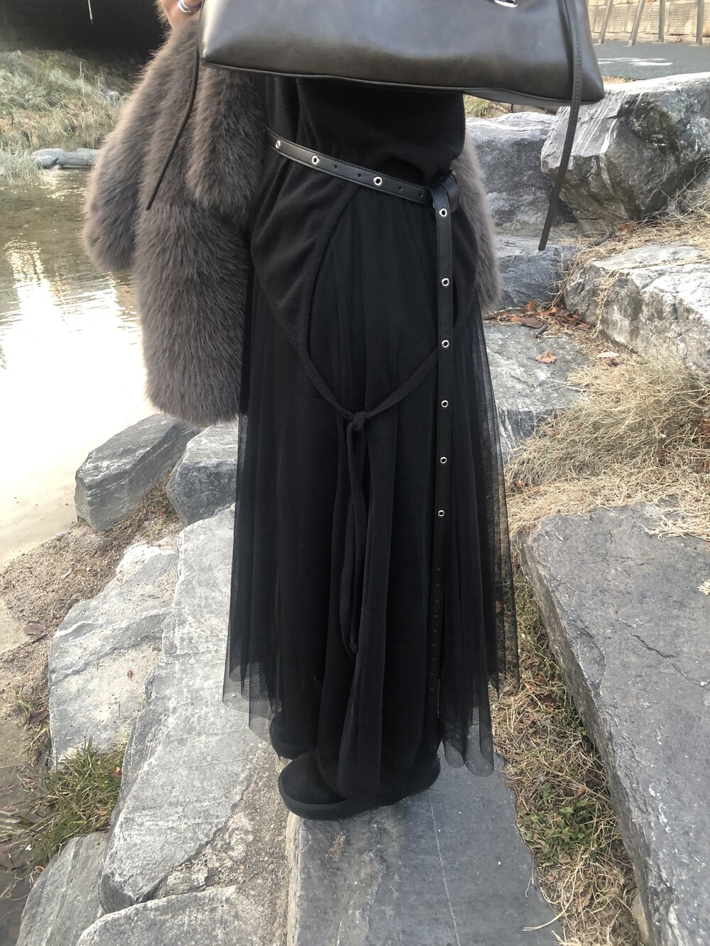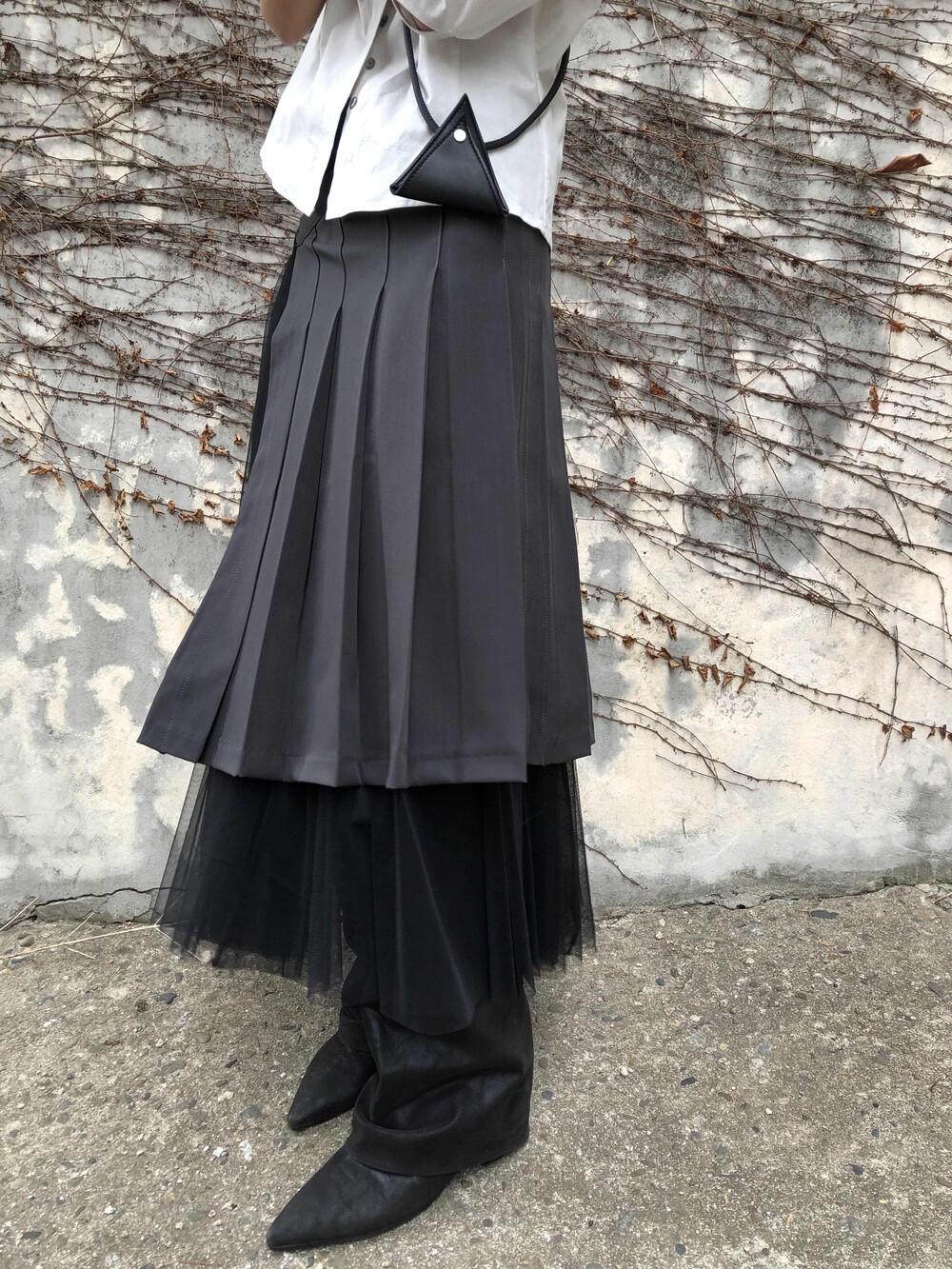 willow sha skirt 탑원피스로 착용 후 미디 스커트 처럼 레이어드한 착장입니다