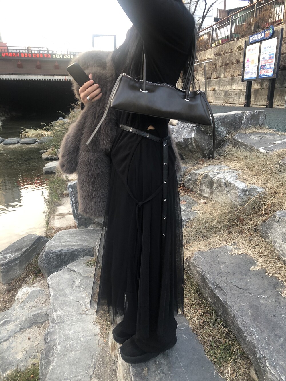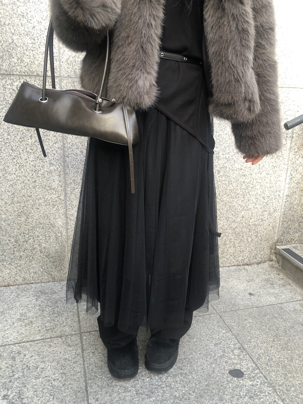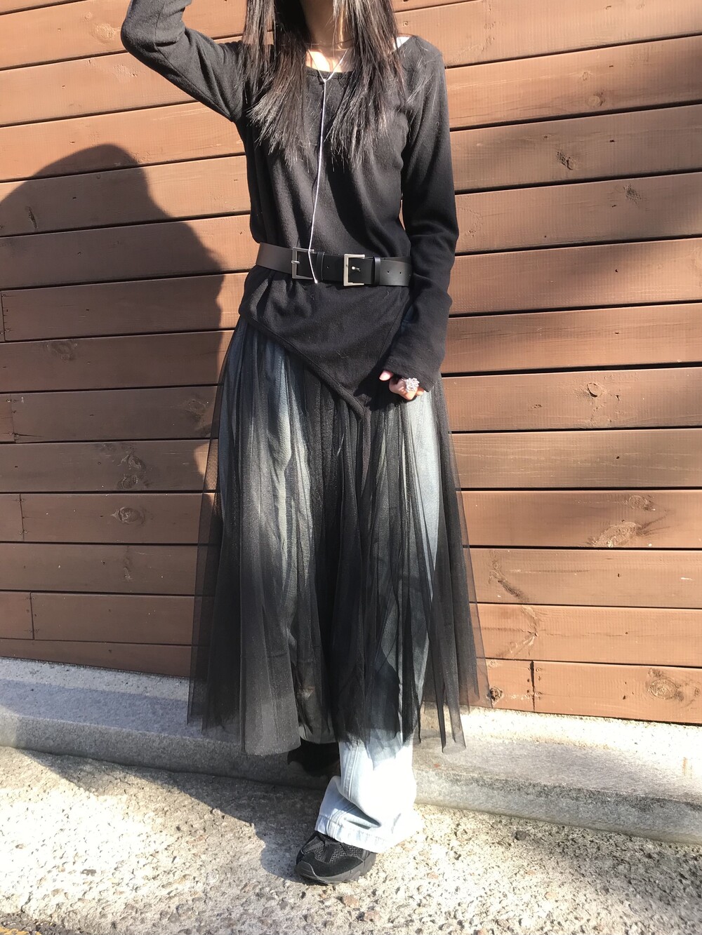 willow sha skirt 탑원피스로 착용 후 미디 스커트 처럼 레이어드한 착장입니다