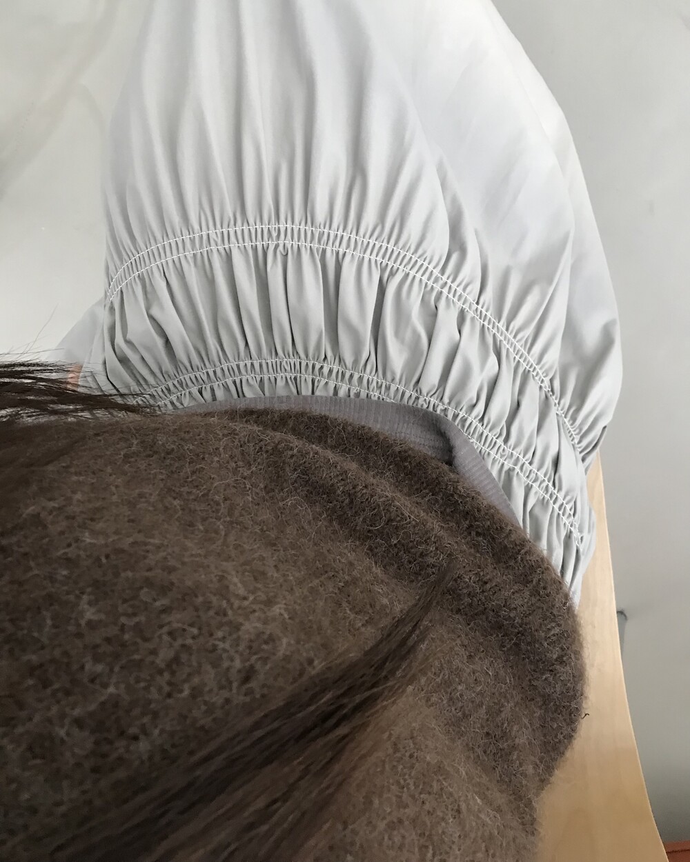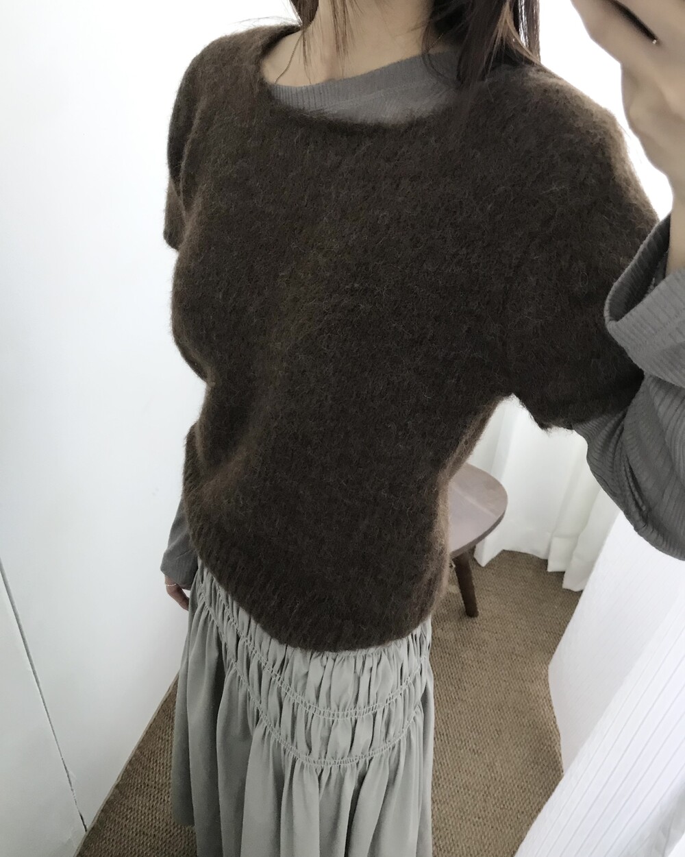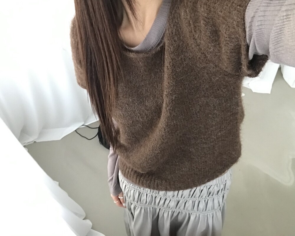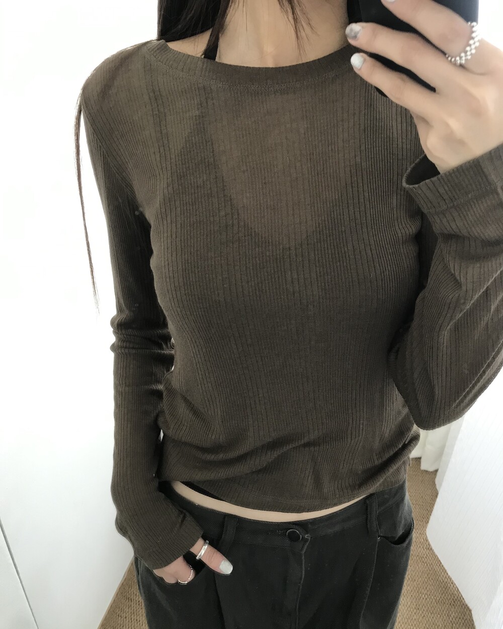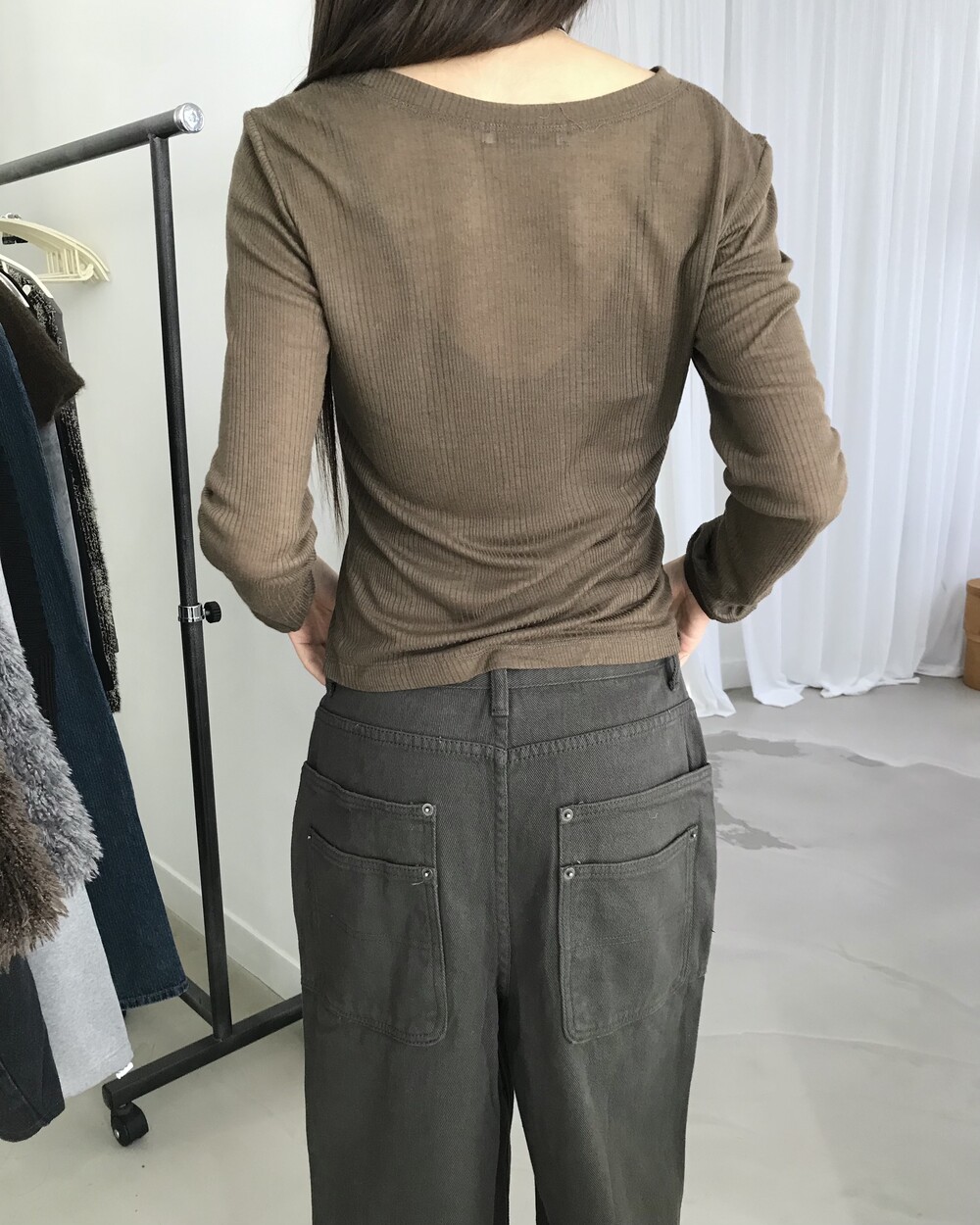 -얇고 비침이 있는 시스루 소재의 울 혼방 티셔츠