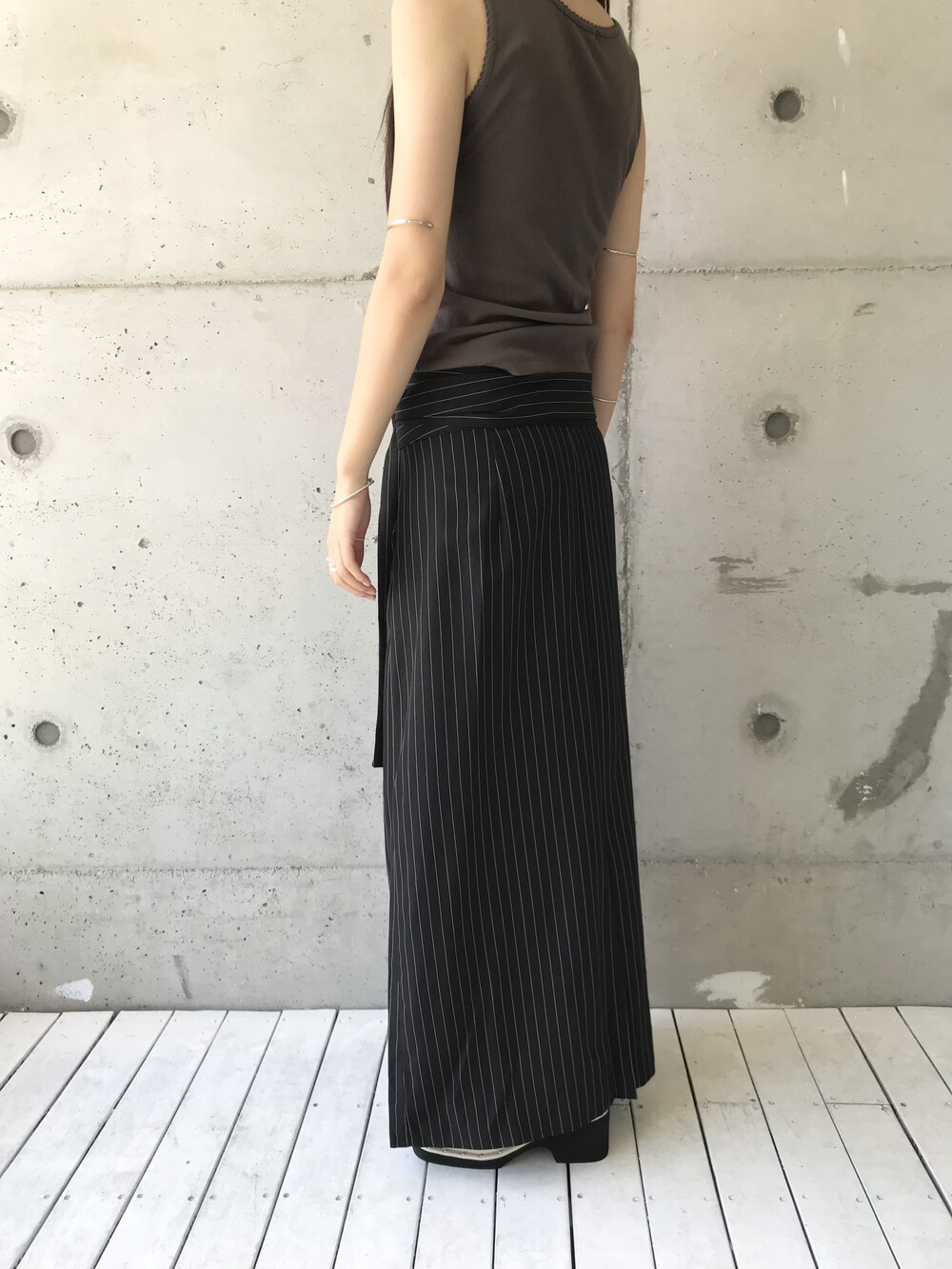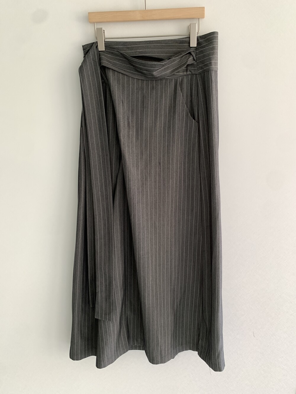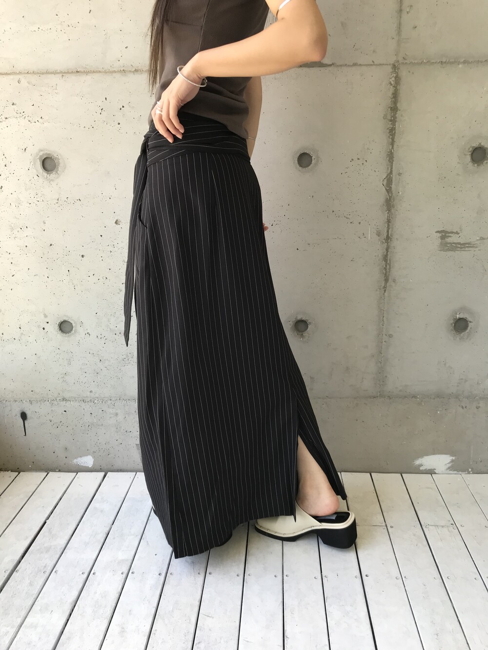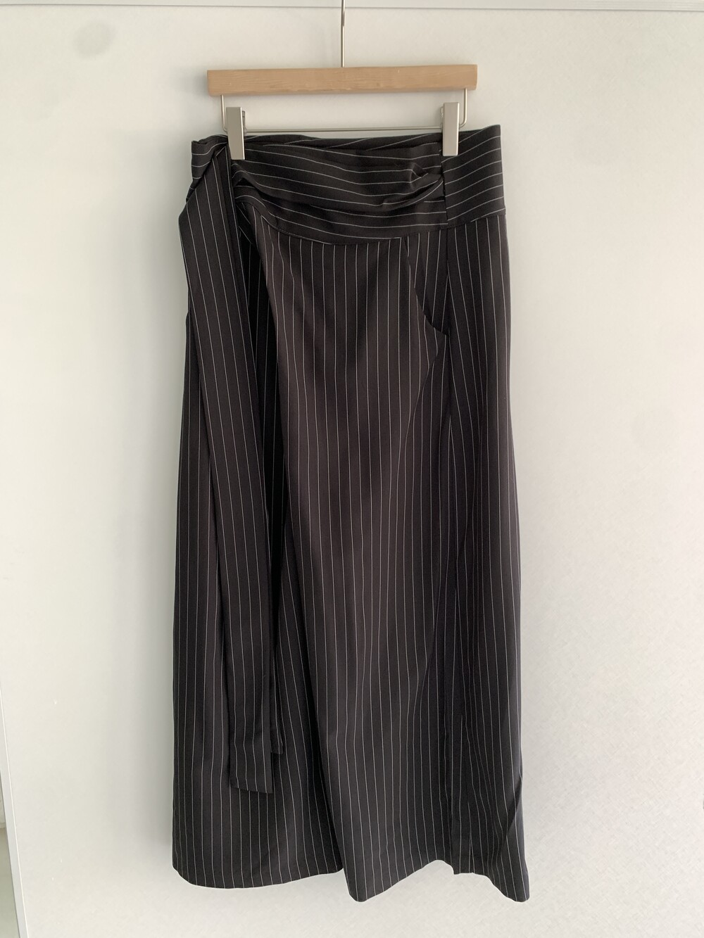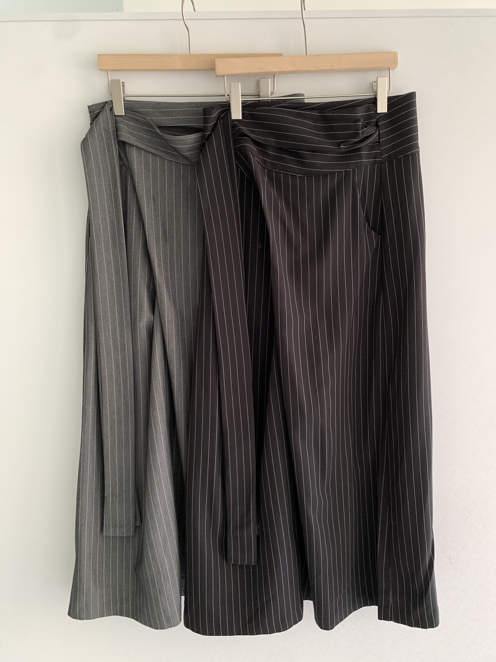 -세로 스트라이프가 돋보이는 랩 스커트