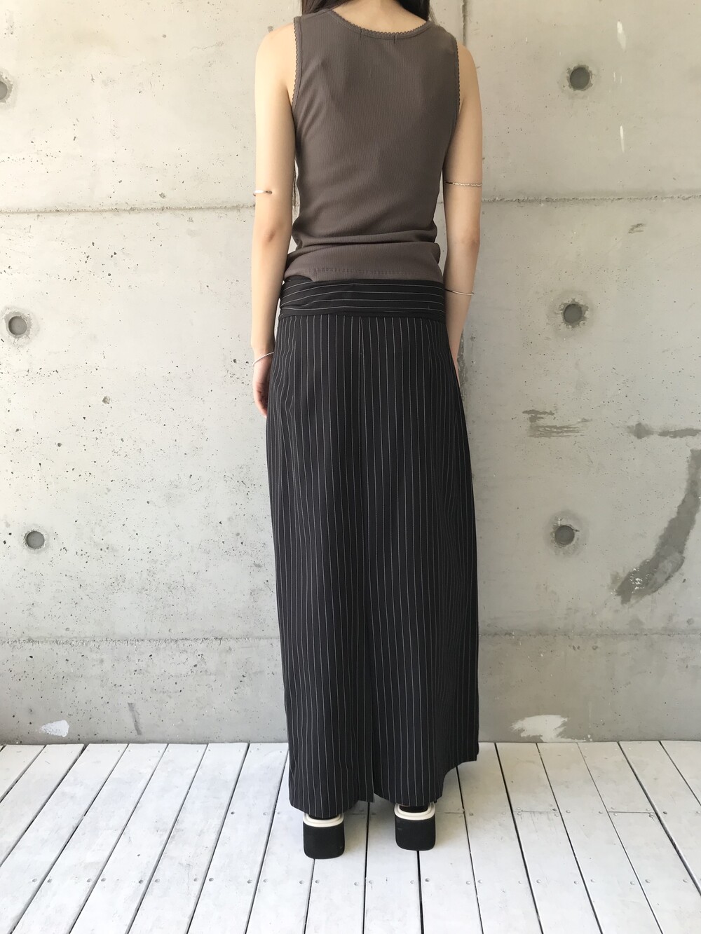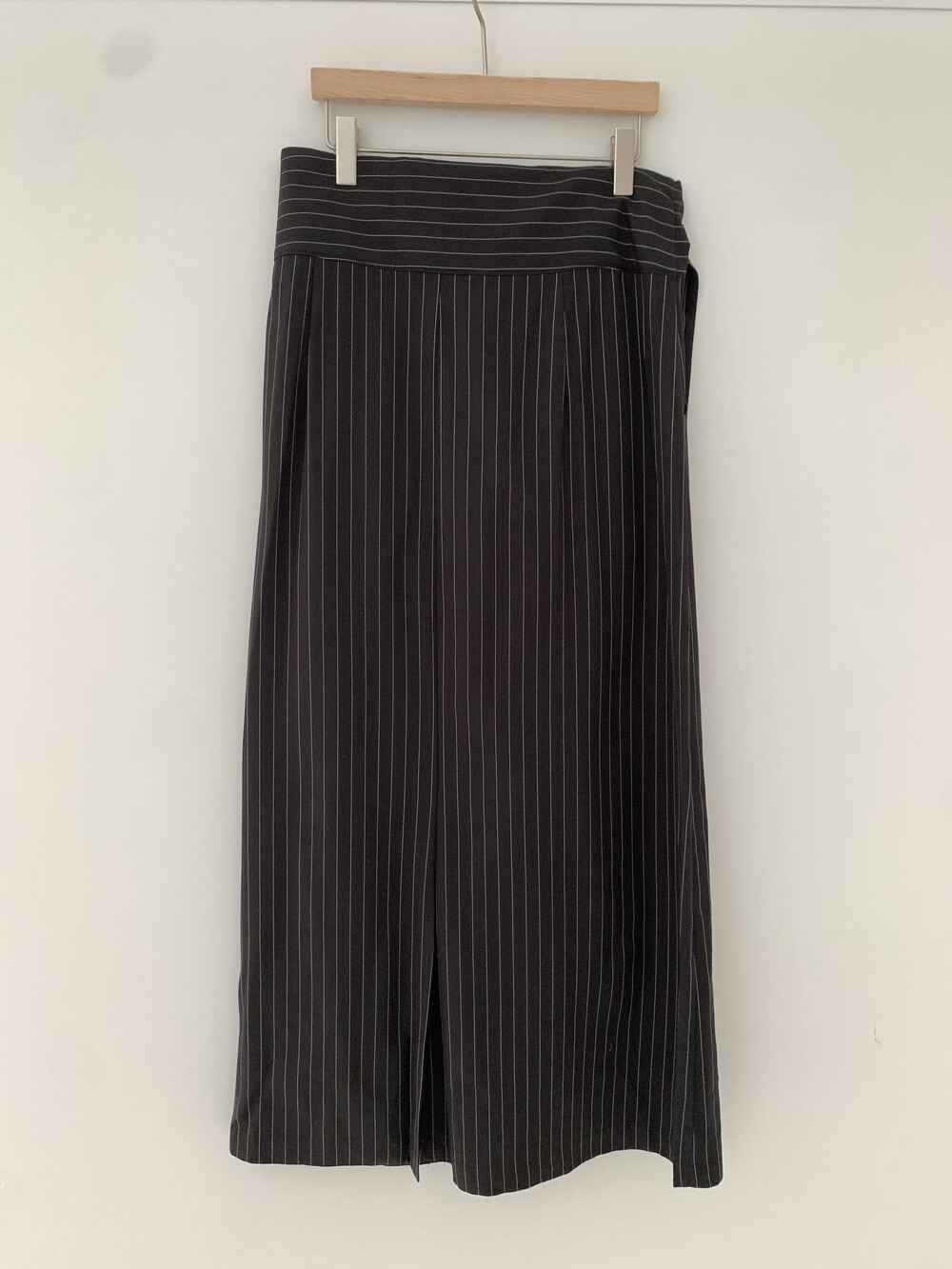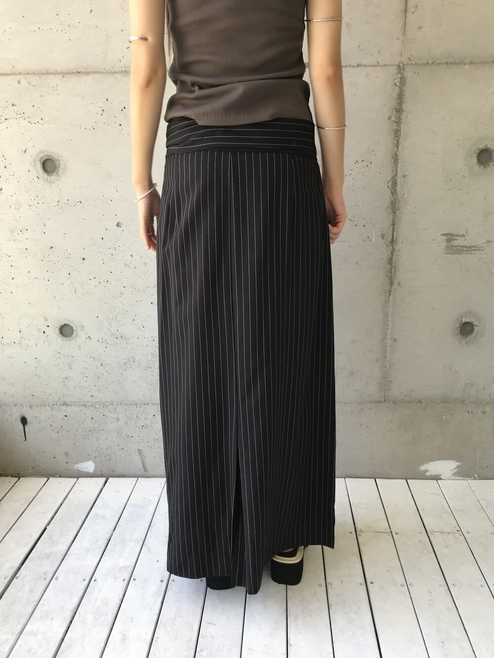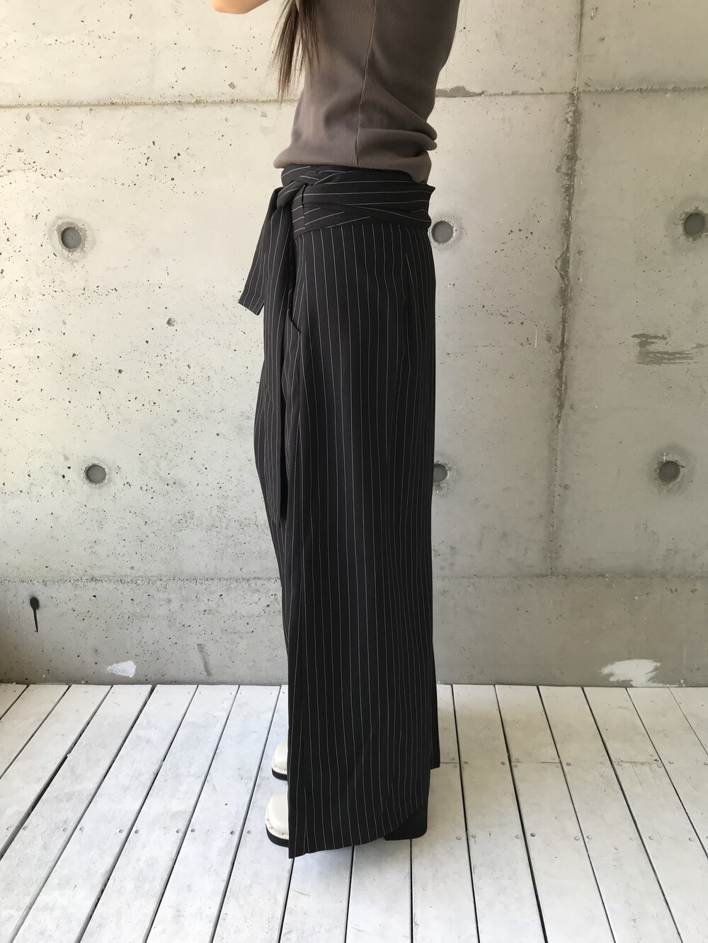 -세로 스트라이프가 돋보이는 랩 스커트