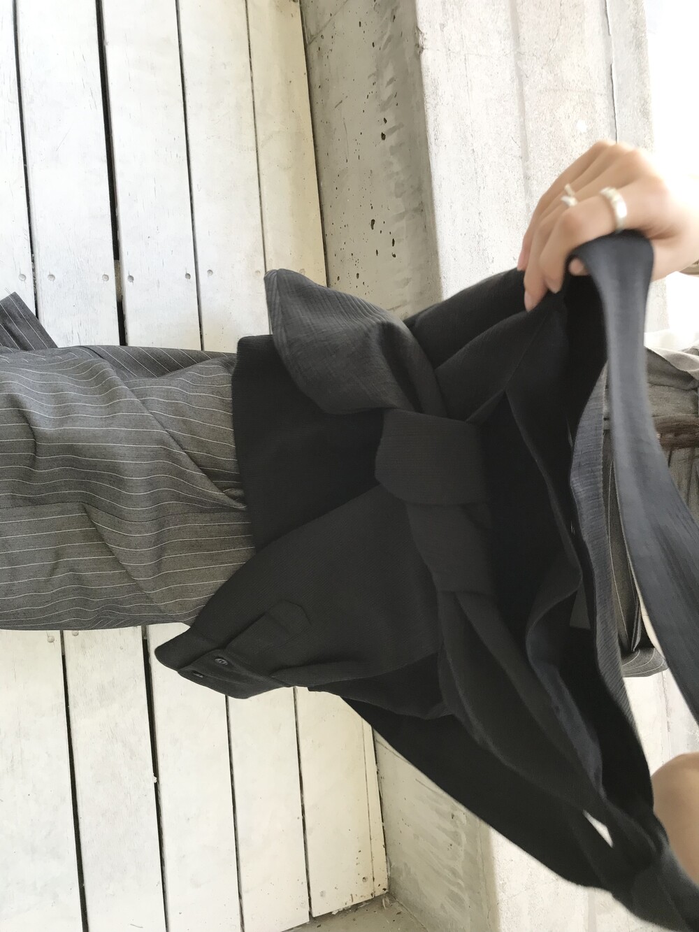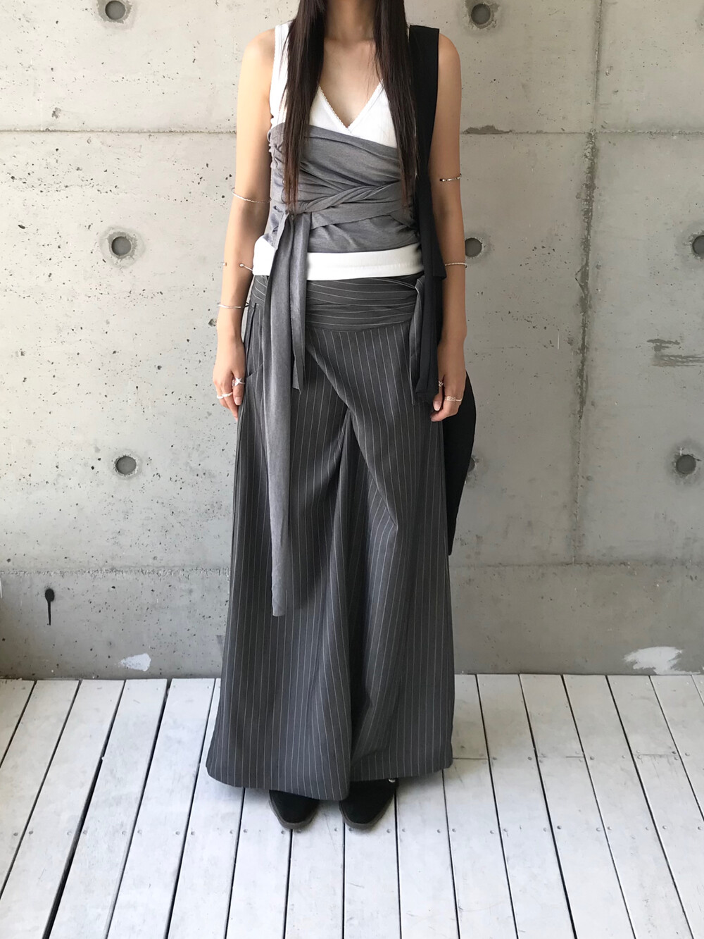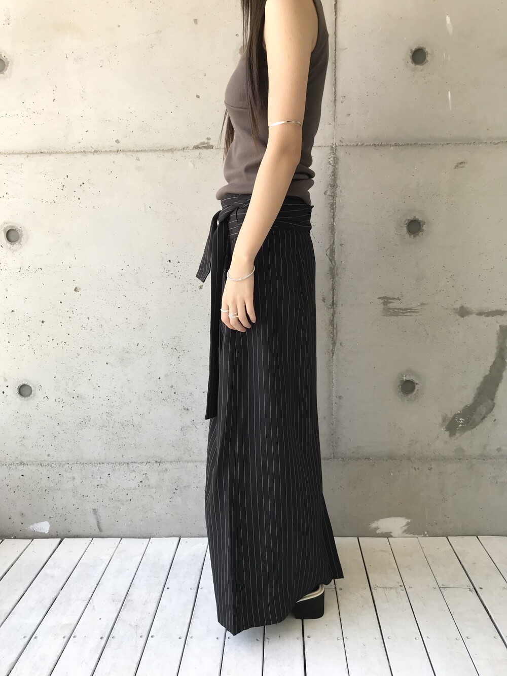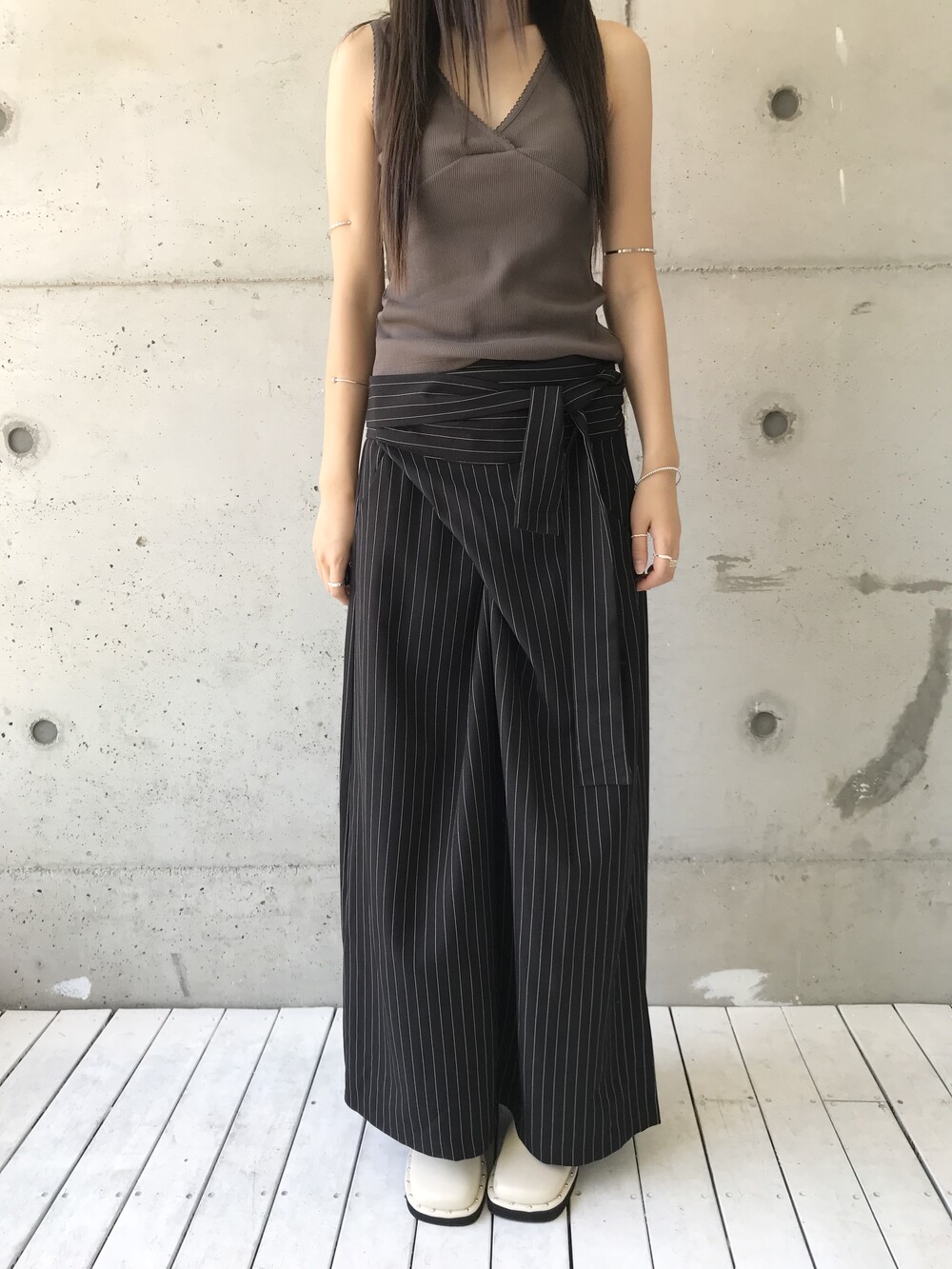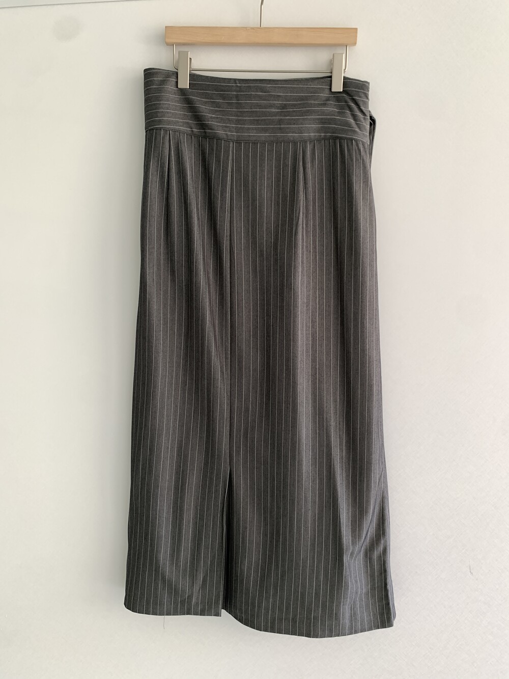 -세로 스트라이프가 돋보이는 랩 스커트