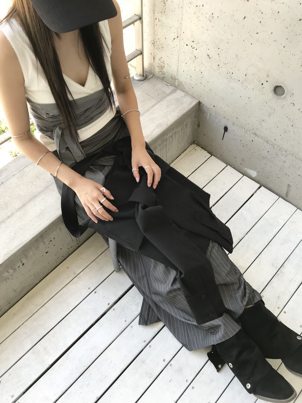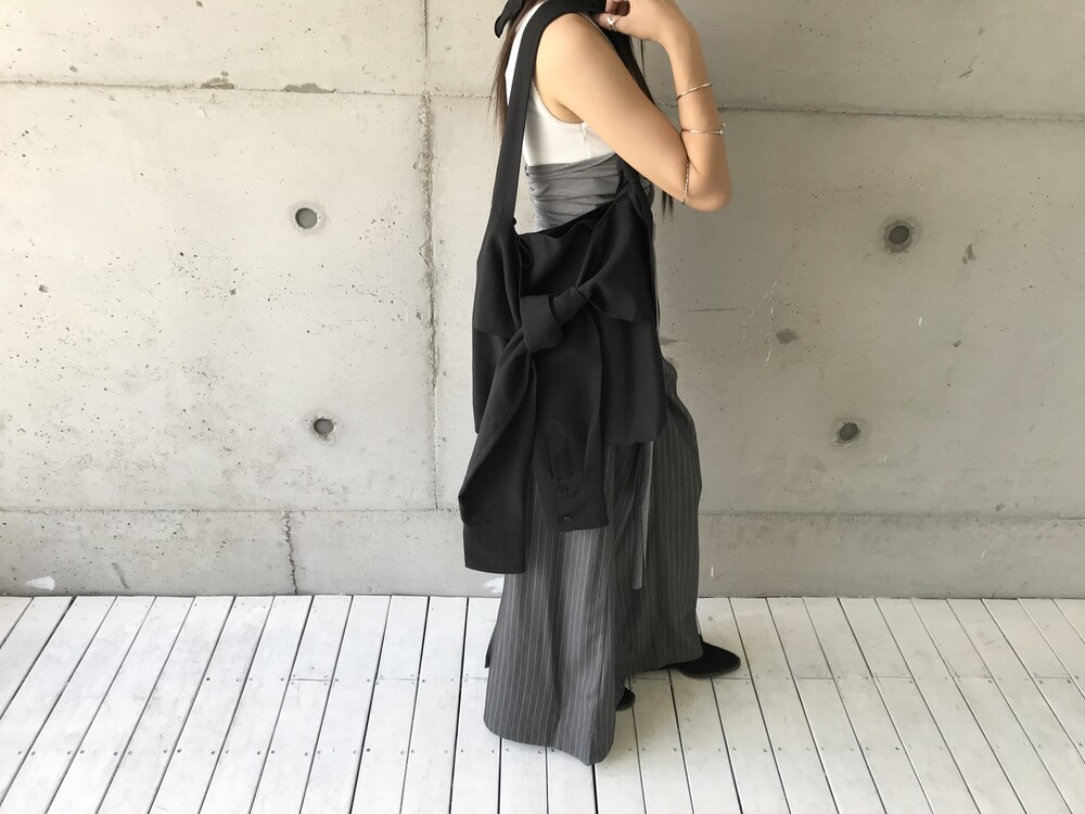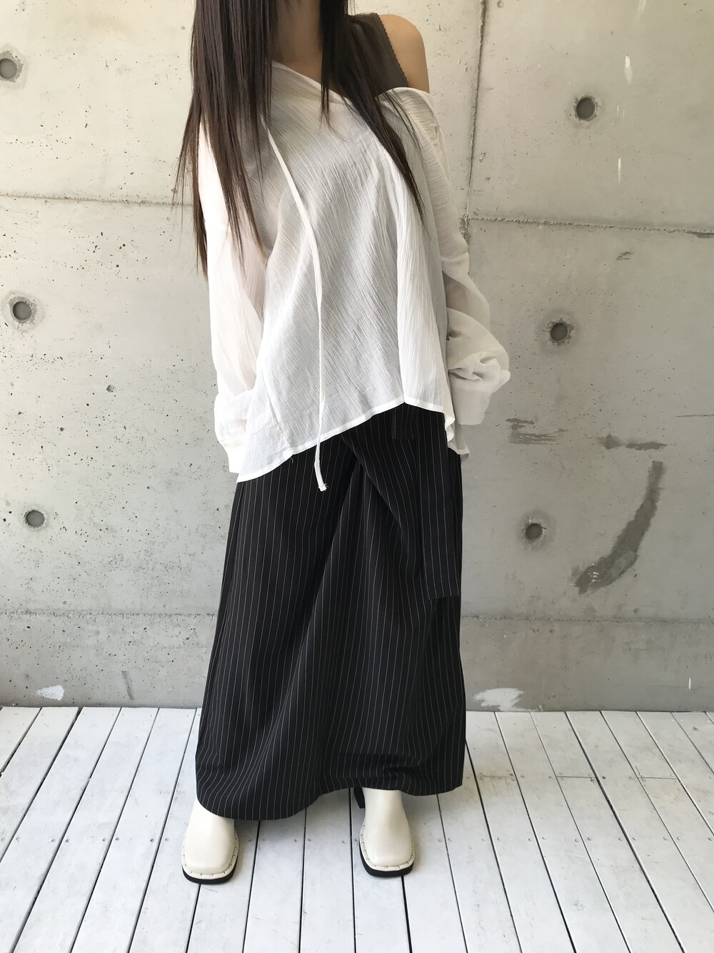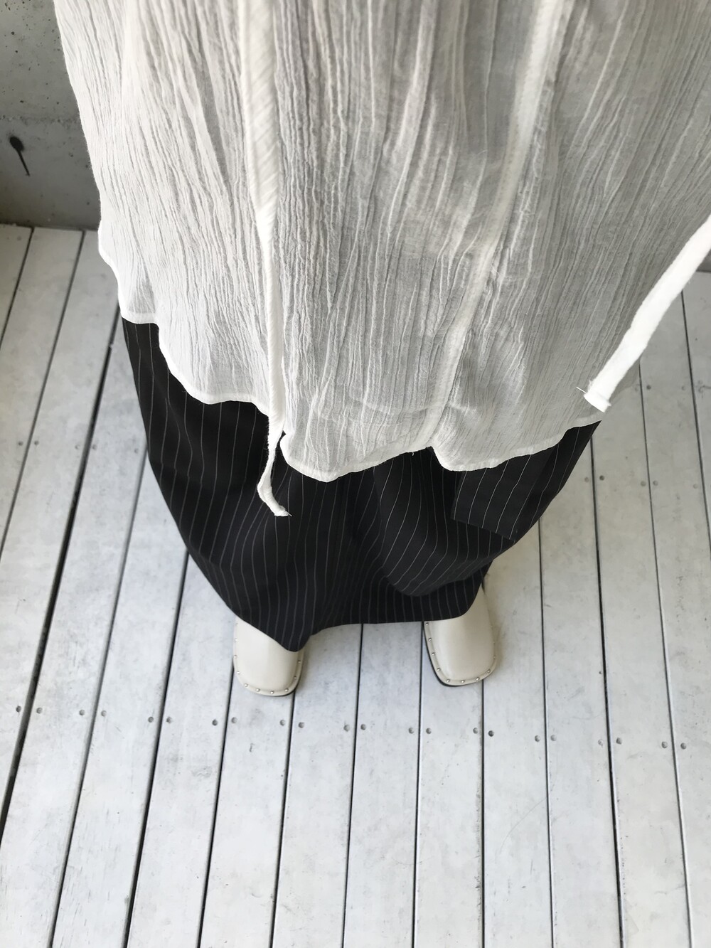 -세로 스트라이프가 돋보이는 랩 스커트