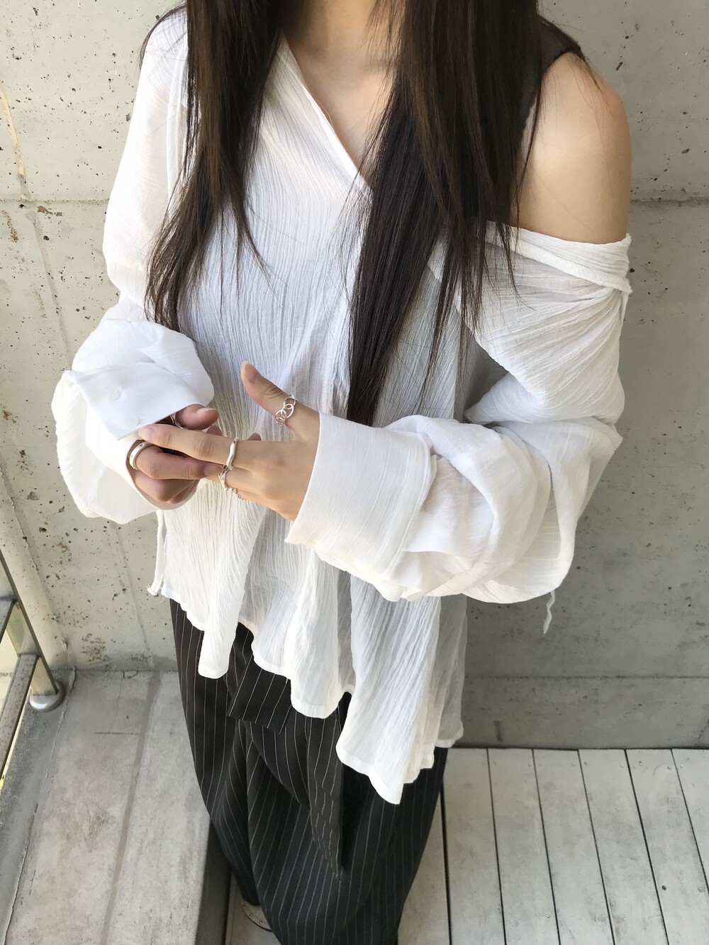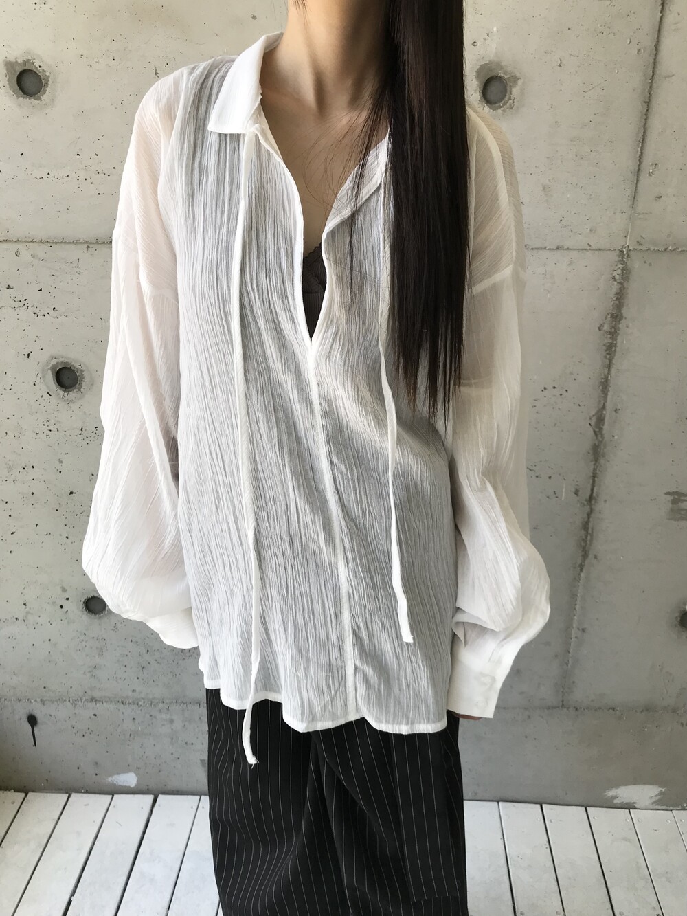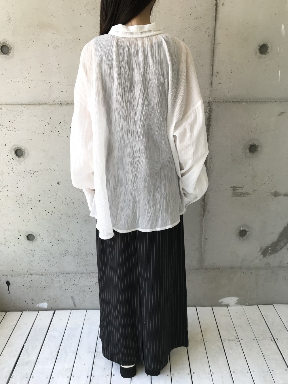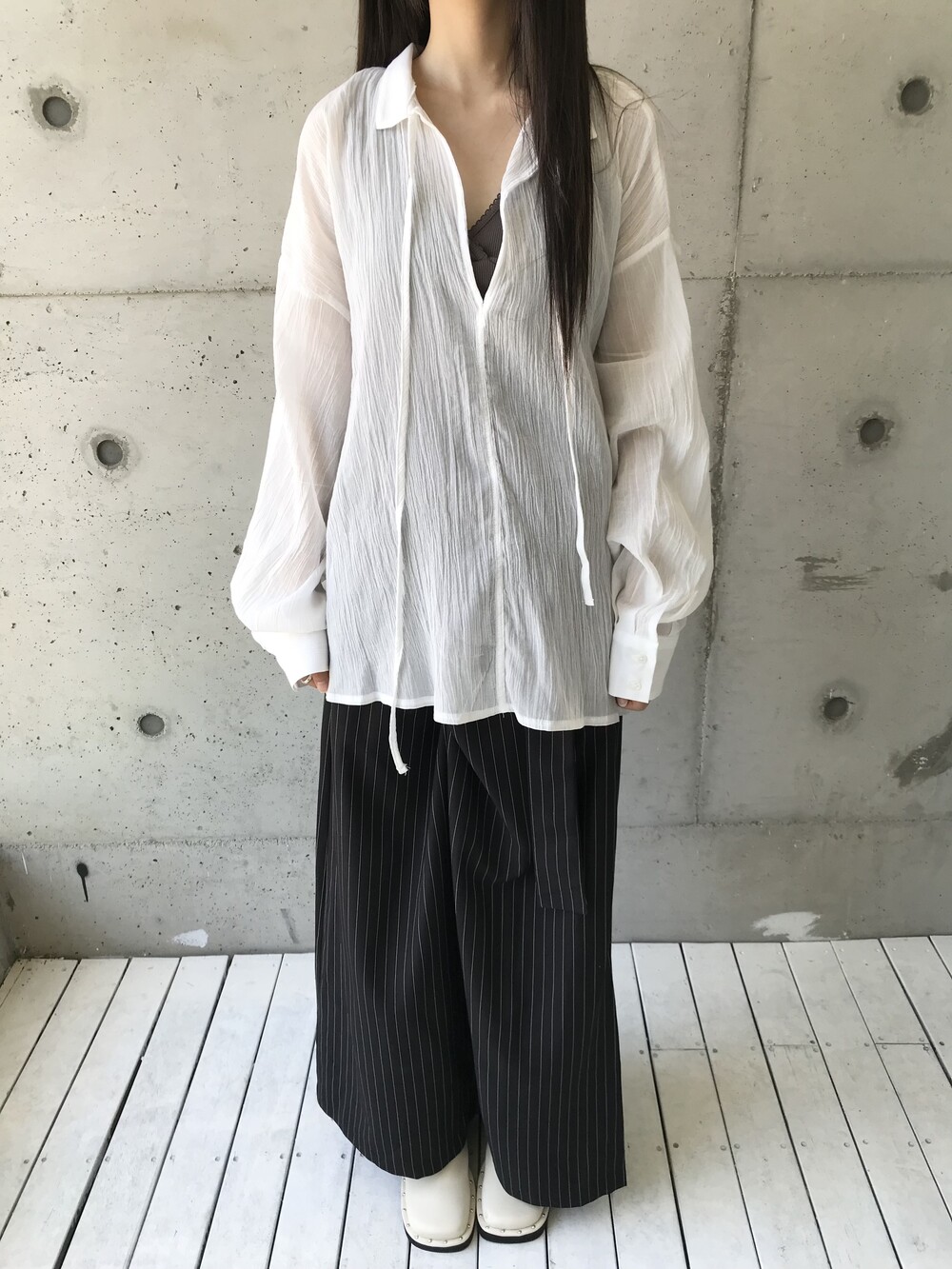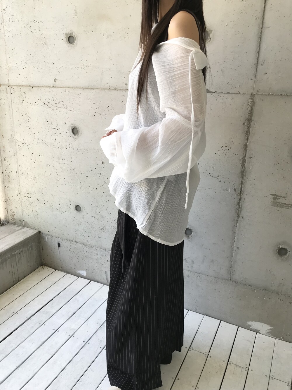 -세로 스트라이프가 돋보이는 랩 스커트